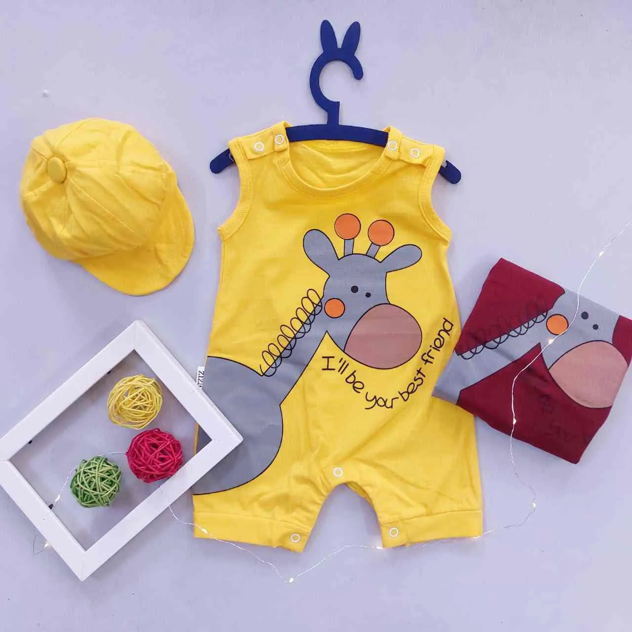رامپر و کلاه نوزادی طرح زرافه جنس پنبه صد در صد سایز بندی 3 تا 12 ماه