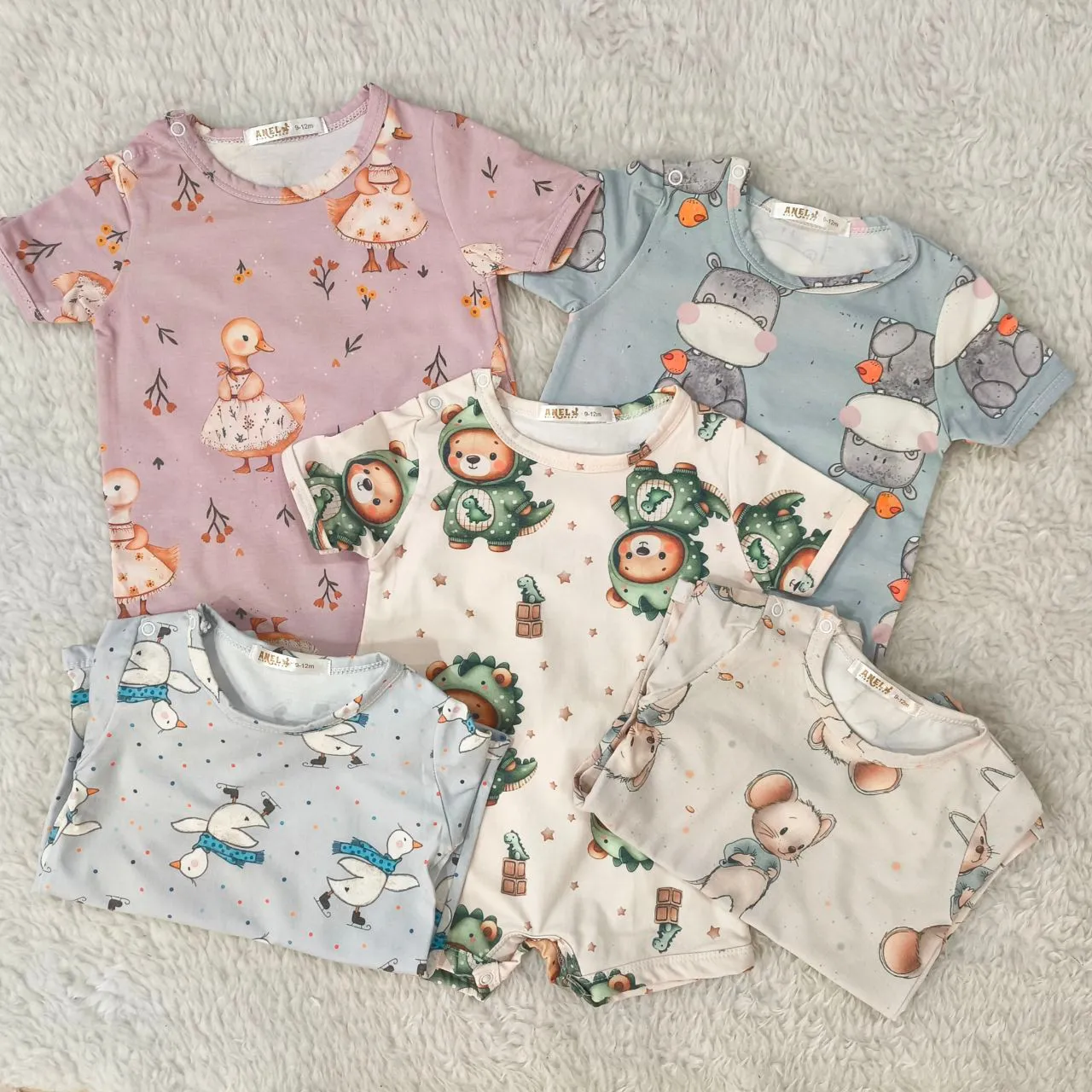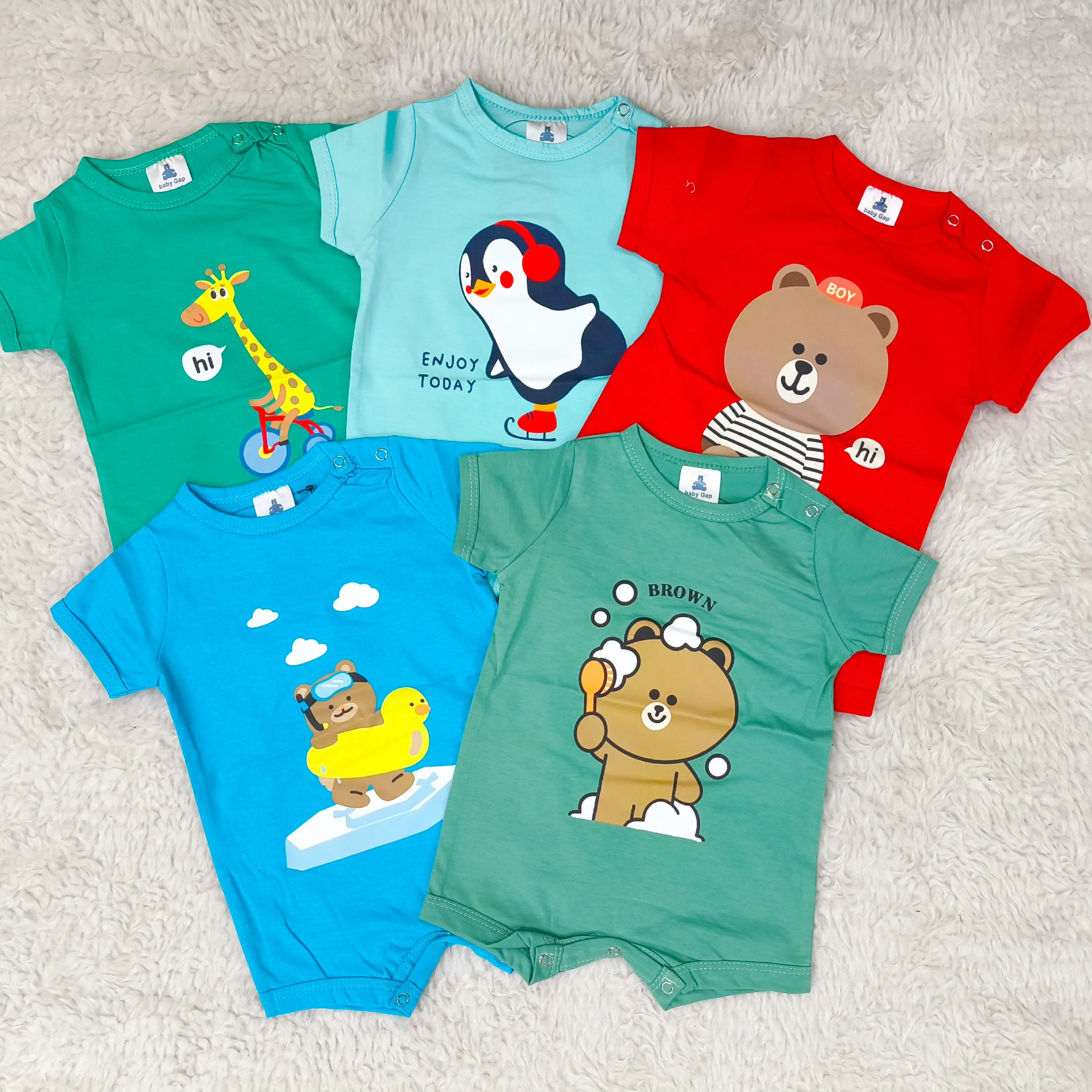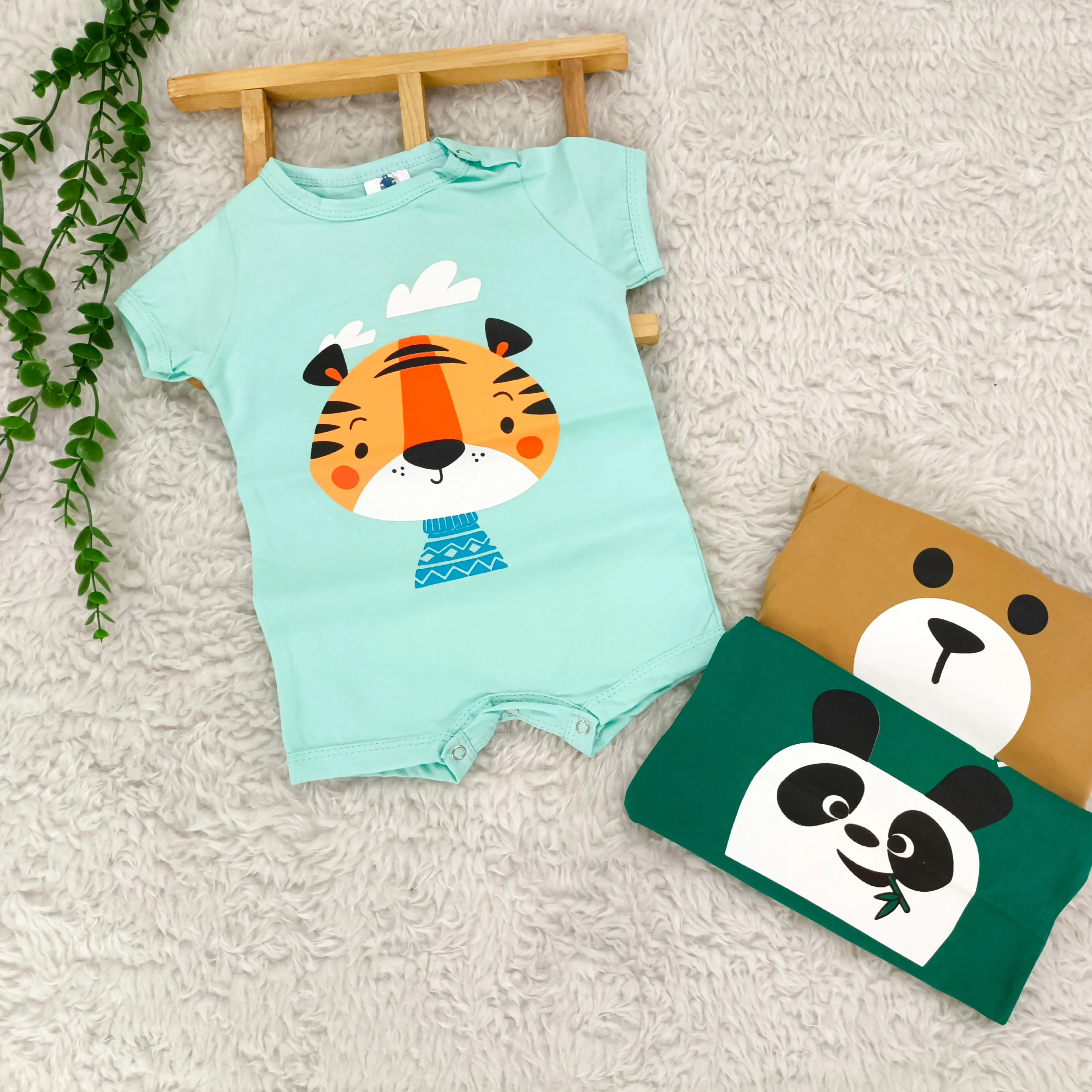 رامپر آستین کوتاه طرح حیوانات نوزاد | پنبه اعلا | سایز 6 تا 36 ماه
