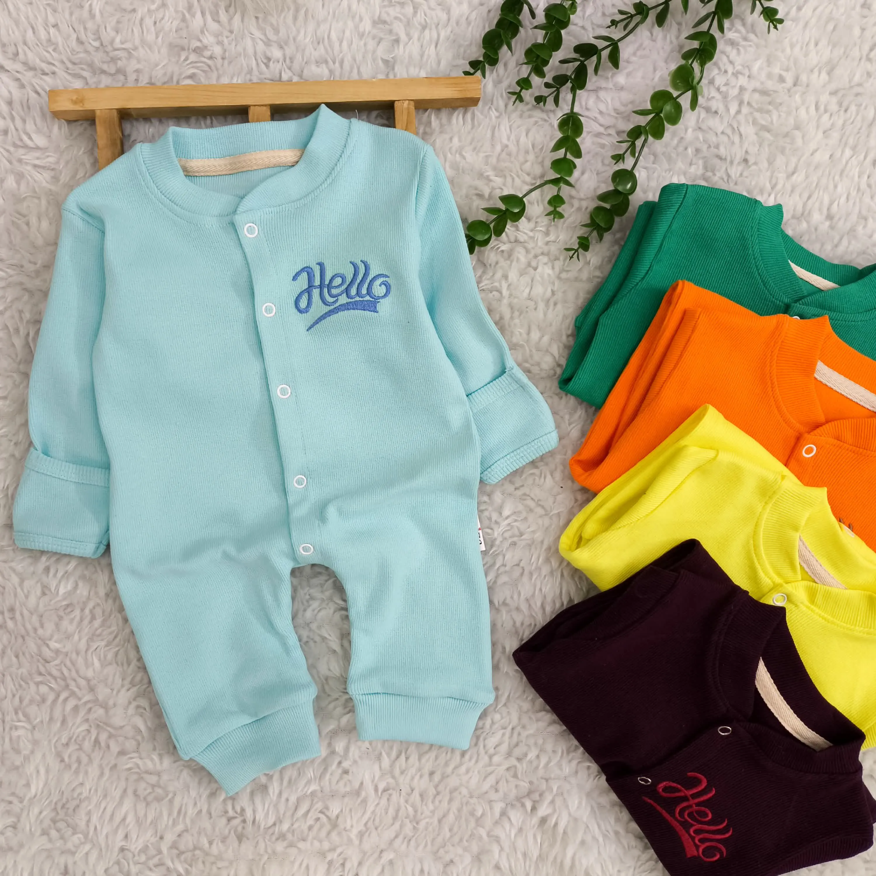 سرهمی کبریتی نوزادی Hello | پنبه کشسانی بالا | دستکش دار | سایز 3 تا 9 ماه