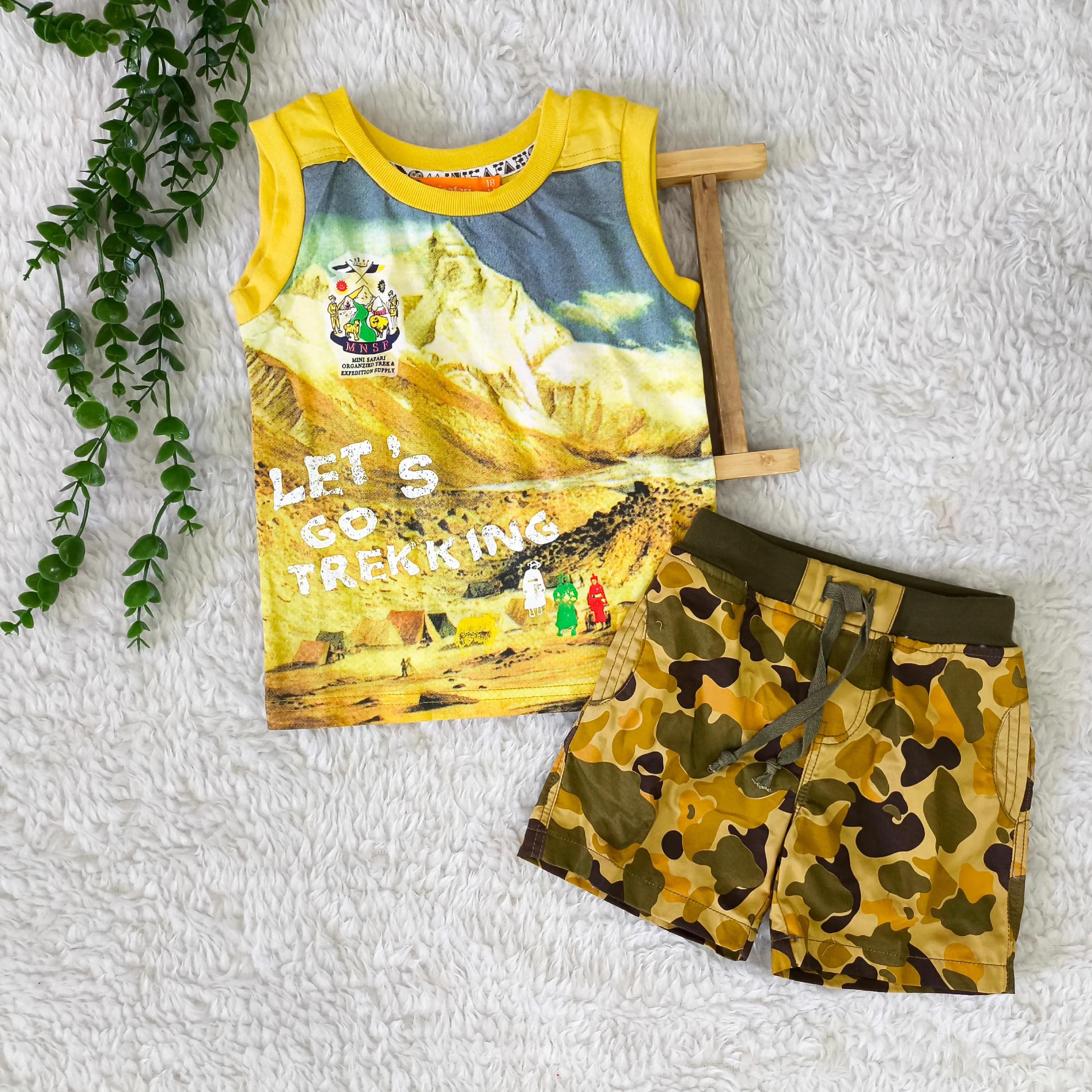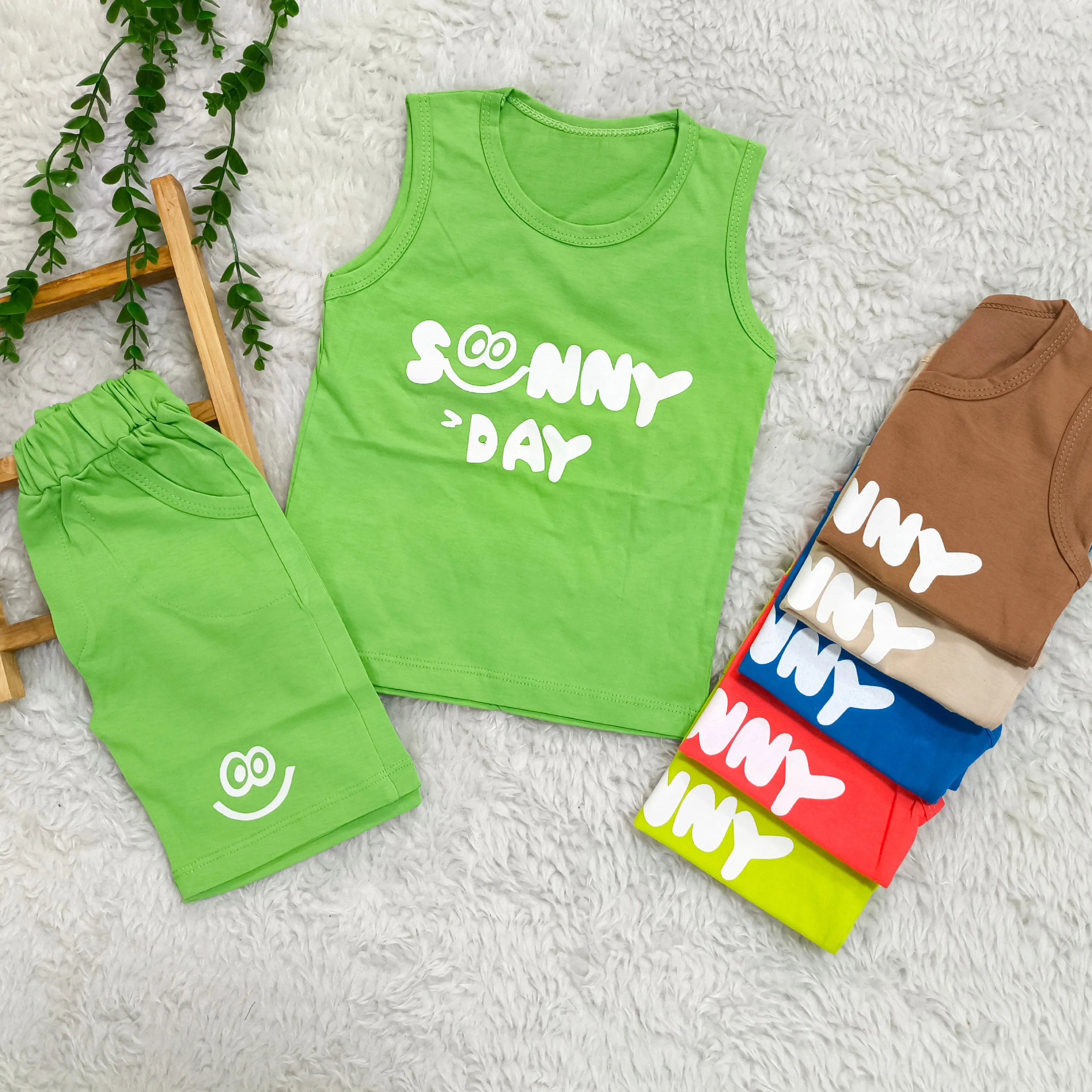 تیشرت و شلوارک پسرانه پنبهای سوپر طرح Sunny Day مناسب 2 تا 4 سال | 6 رنگ