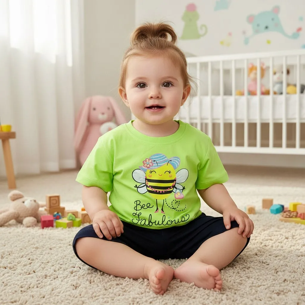 تیشرت و شورتک بچگانه طرح بابونه خندان | جنس پنبه سوپر | سایز بندی 35 و 40