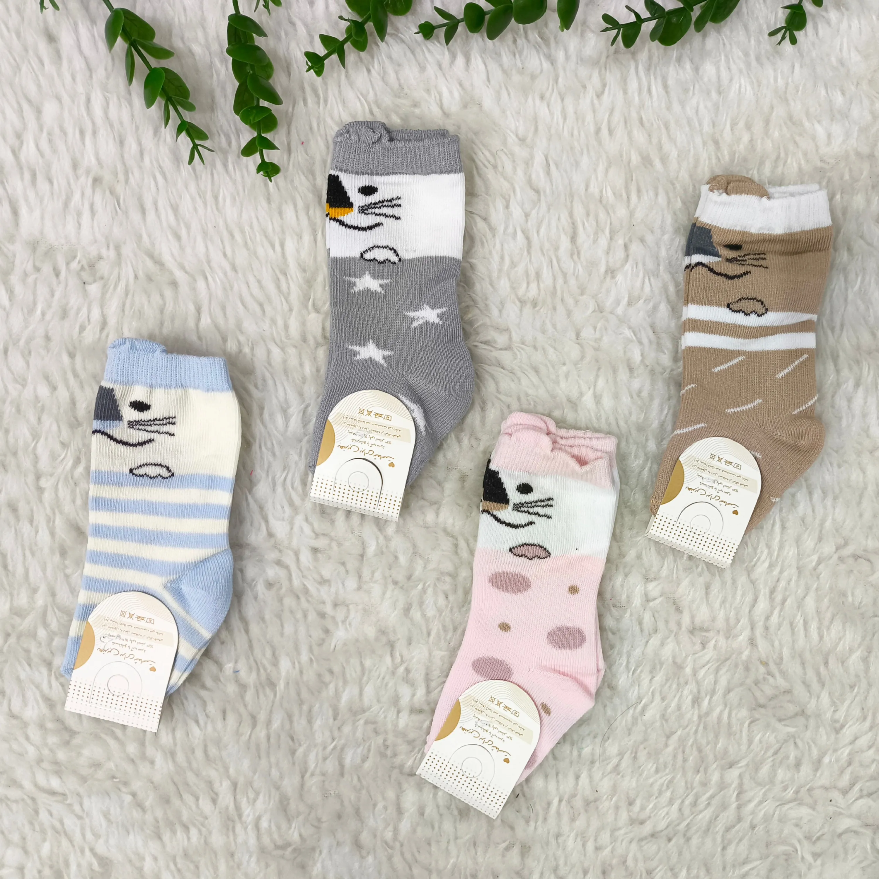 جوراب ساق بلند نوزاد طرح گربه | پنبه صد درصد | سایز 0 تا 6 ماه