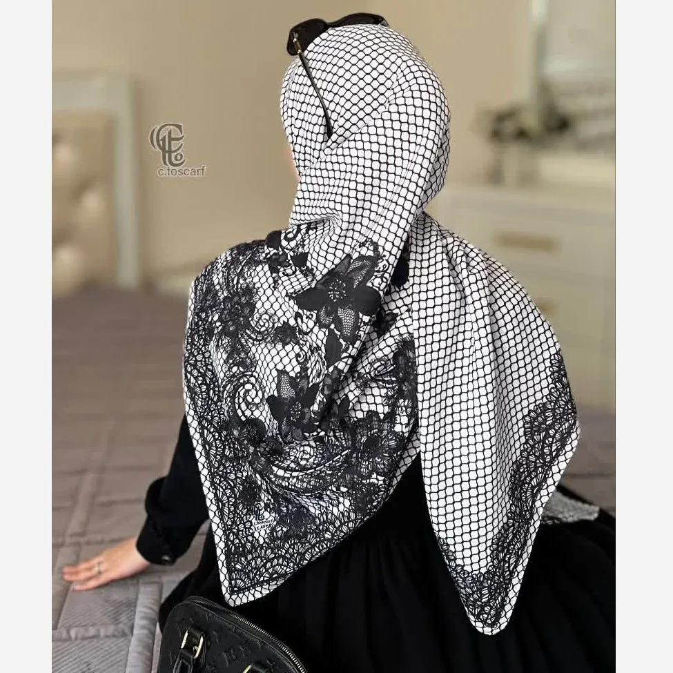 روسری طرح دیپلمات ریز سایز 140 جنس نخ کاستوم سیتو چرخ دوز