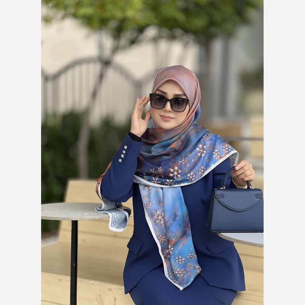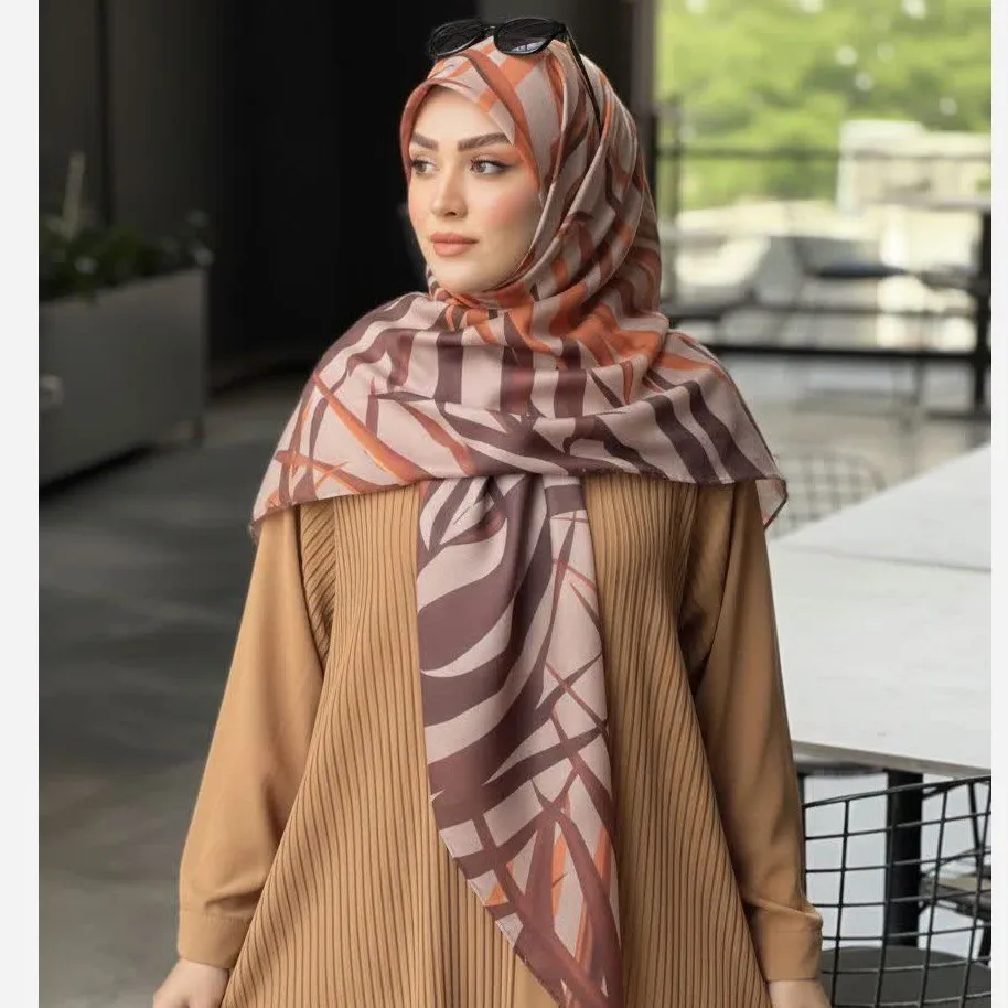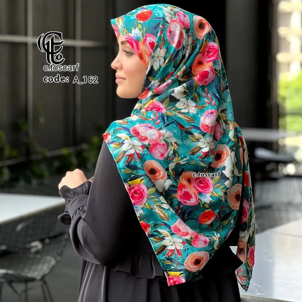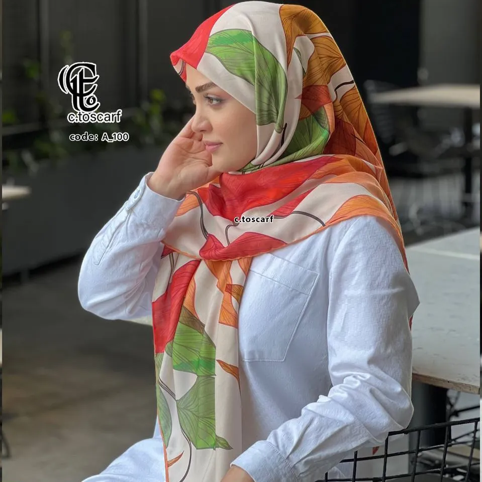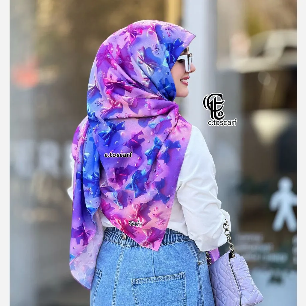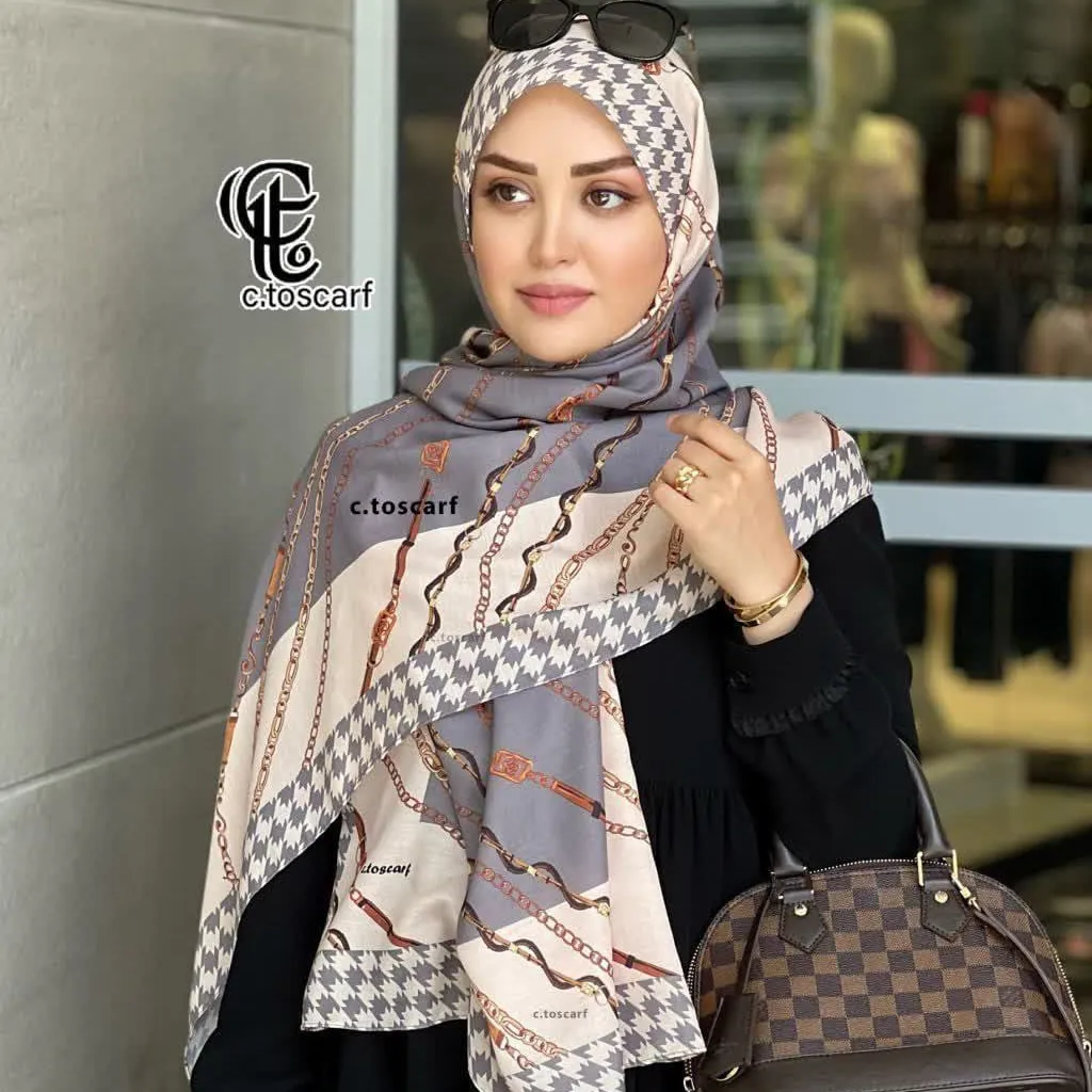 روسری طرح دیانا طوسی سیتو قواره بزرگ 140 سانتیمتر جنس نخ کاستوم لیز نیست