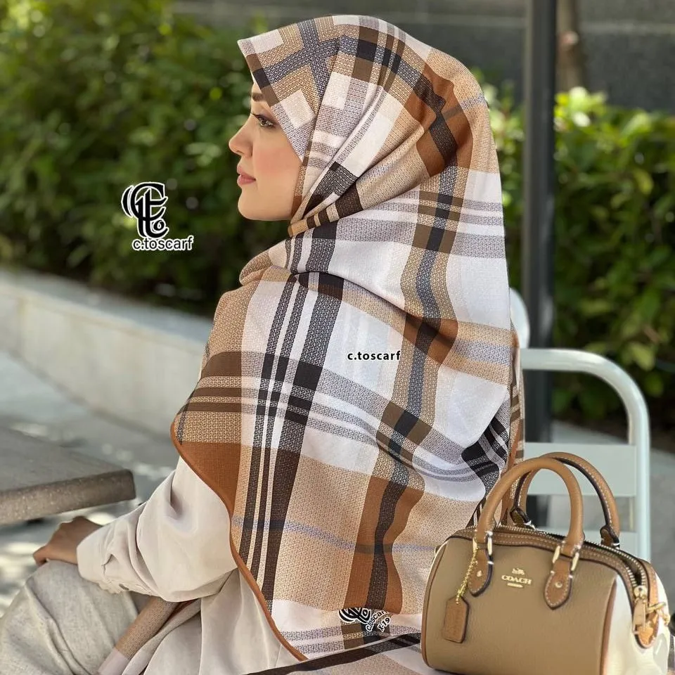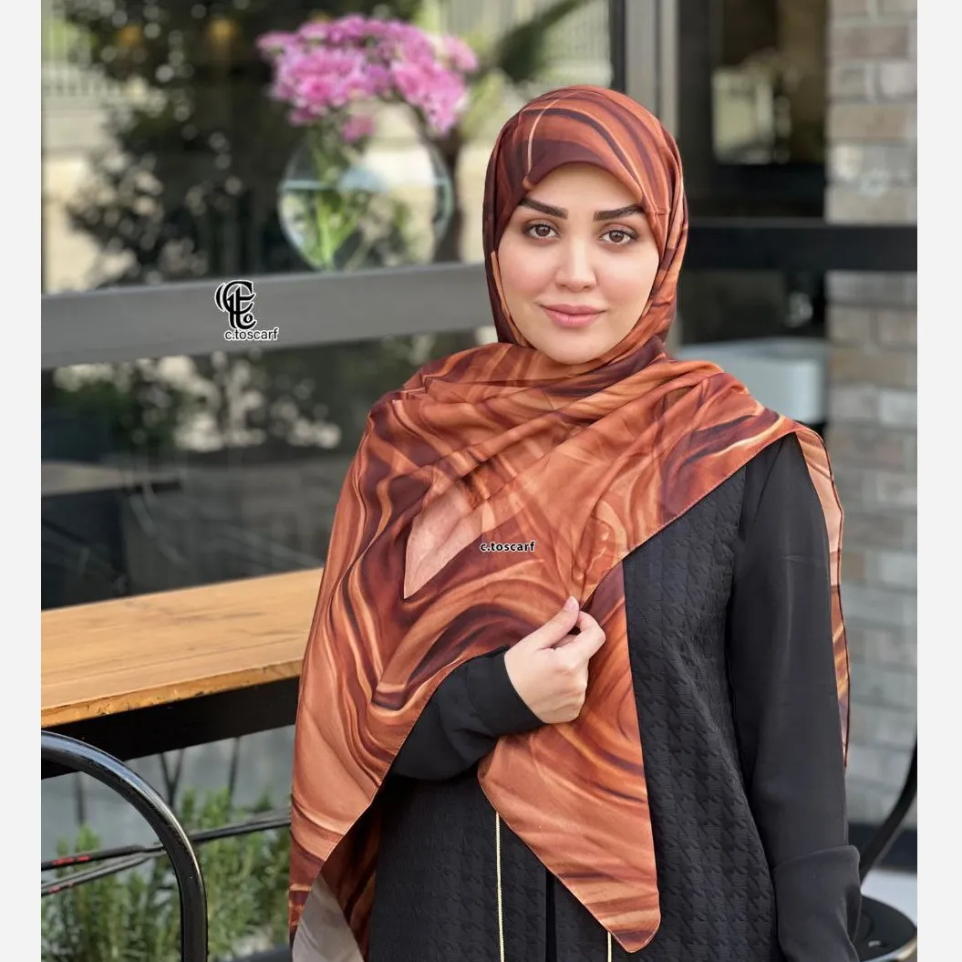 روسری زنانه طرح پانیذ حاشیه ظریف نسکافه ای جنس نخ کاستوم سیتو متوسط