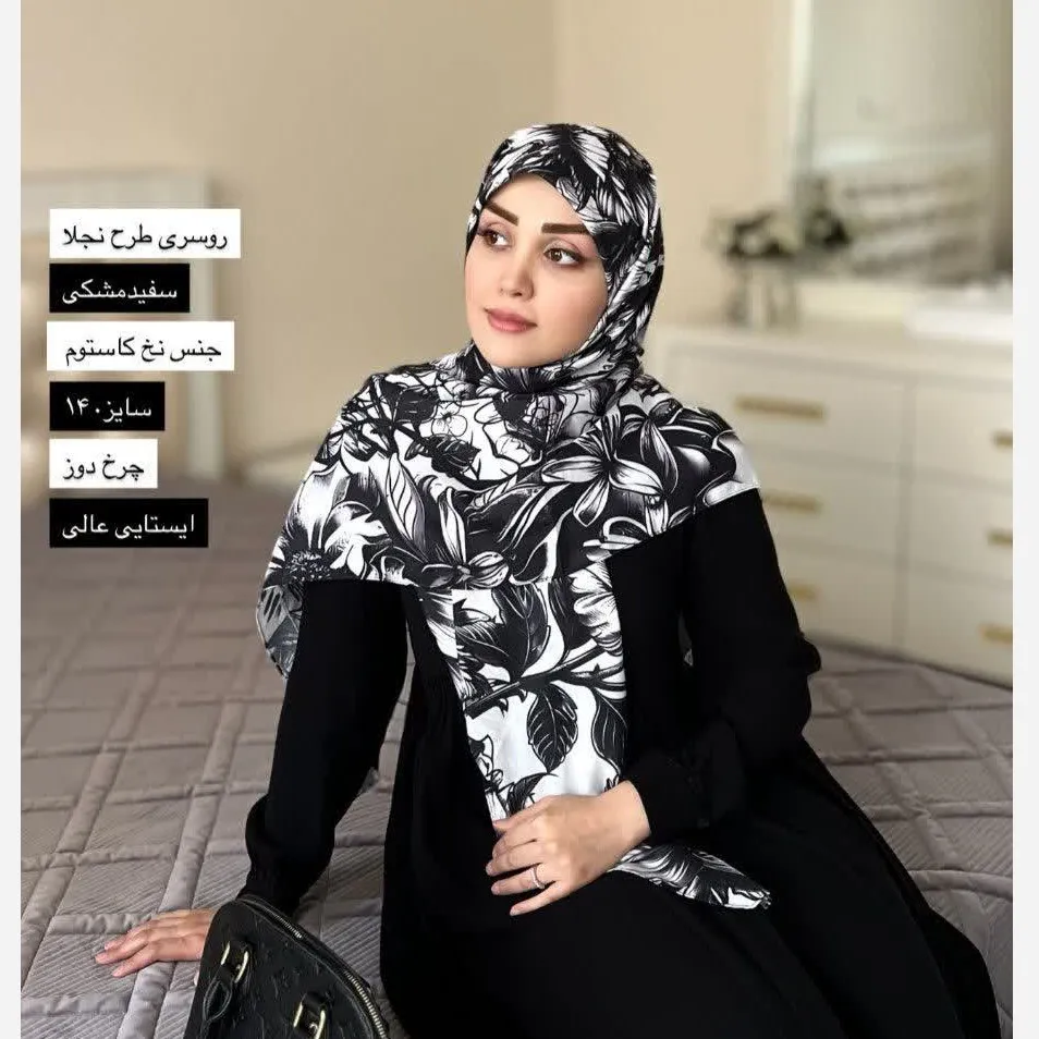 روسری طرح هما سایز 140 جنس نخ کاستوم سیتو چرخ دوز