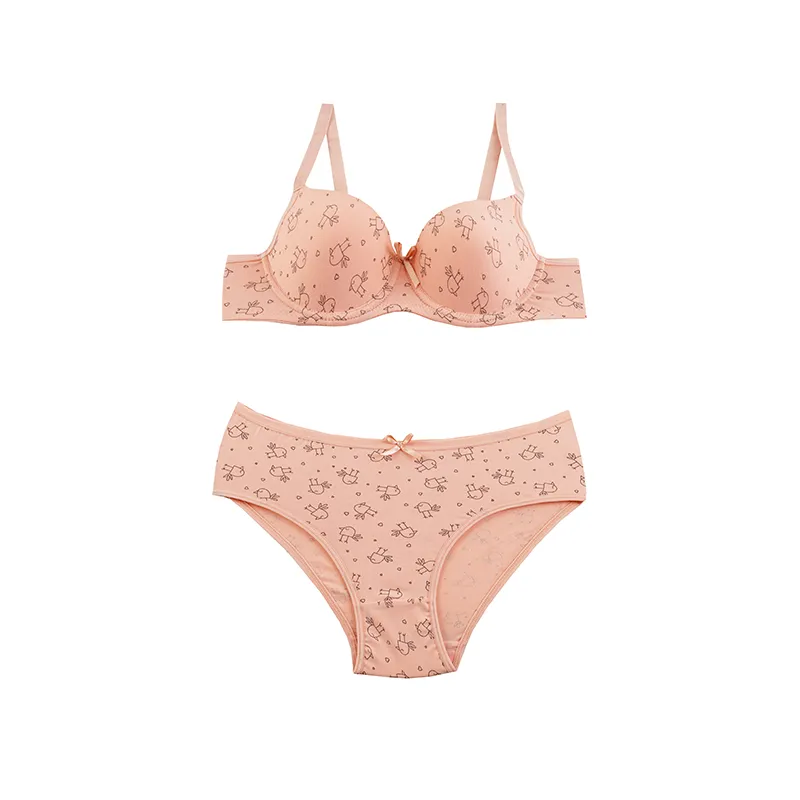 ست لباس زیر زنانه نخی اسفنجی فنردار طرحدار سایزبندی کامل