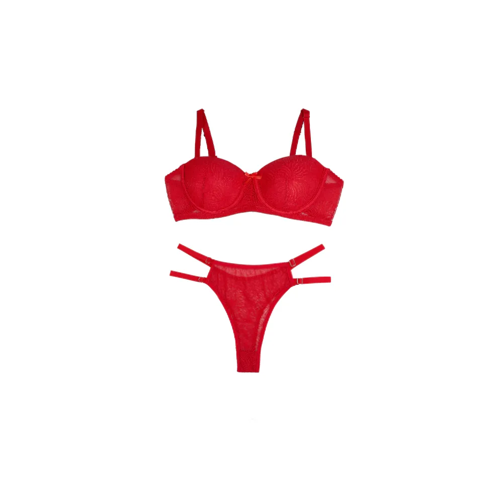 ست لباس زیر زنانه دانتل نیم جک اسفنجی بند قابل تنظیم سایز 75 تا 90