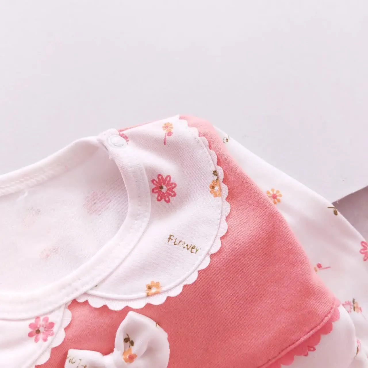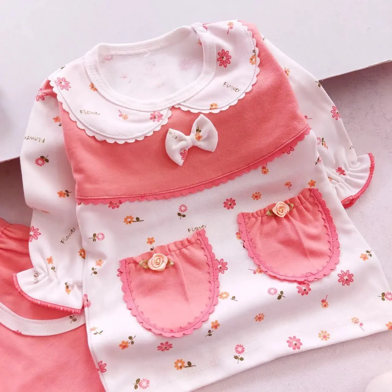 بلوز شلوار نوزادی دخترانه گلبهی پنبه لطیف سایز بندی 5 سایز