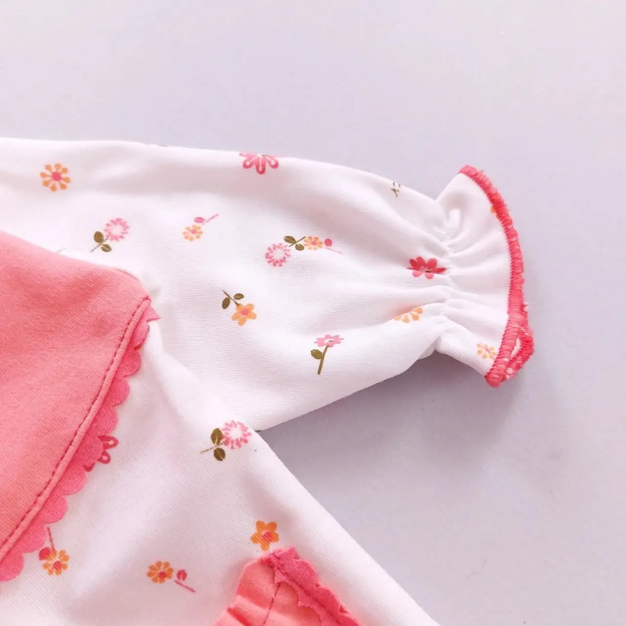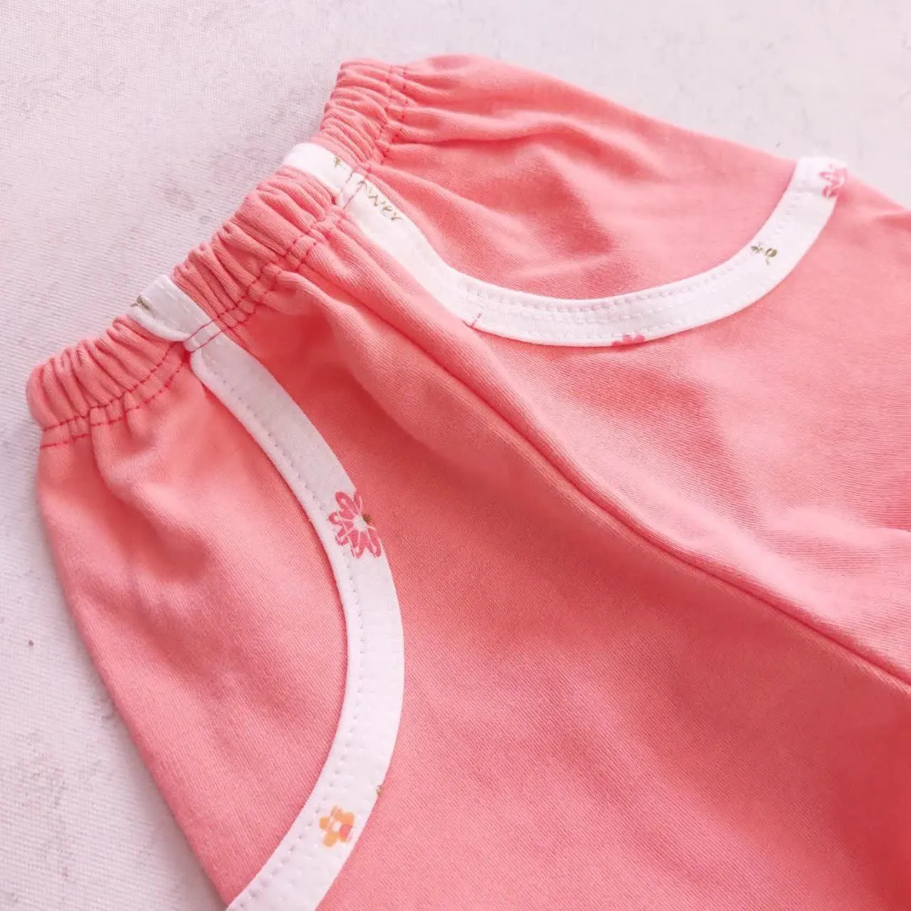 **بلوز شلوار دخترانه نخی گلبهی طرحدار | مناسب 3 ماه تا 3 سال**