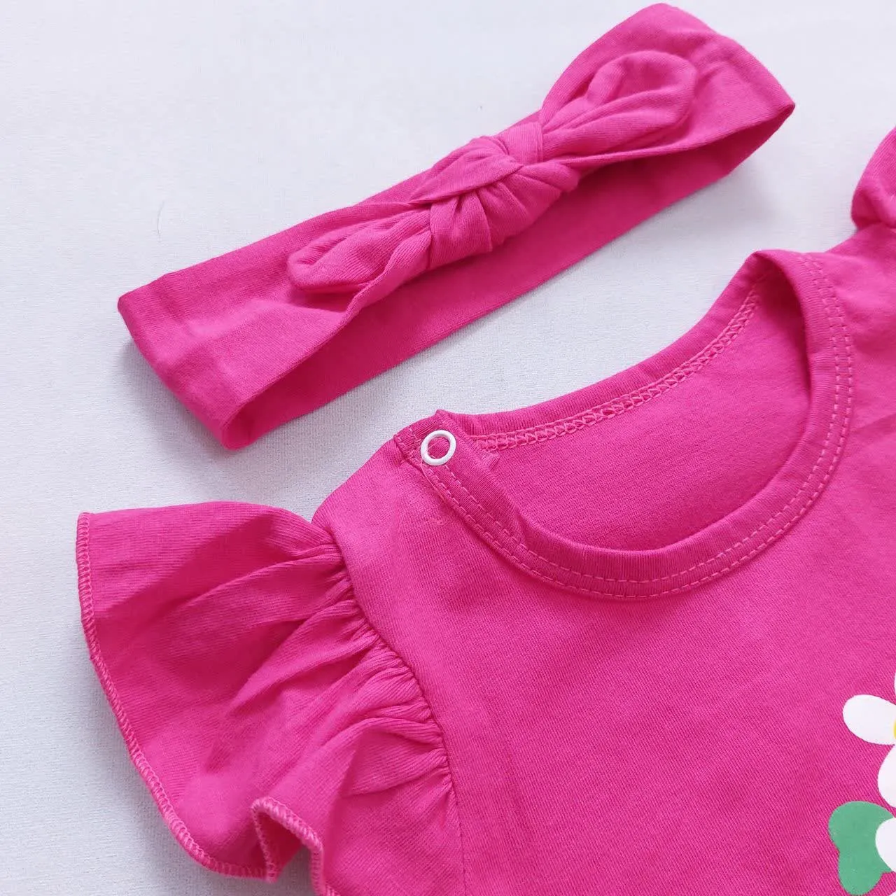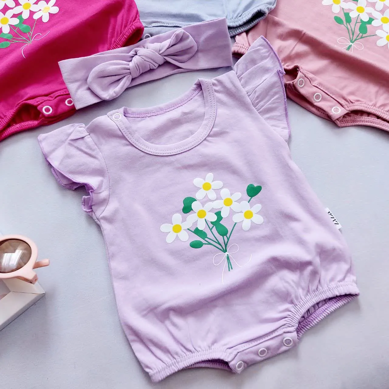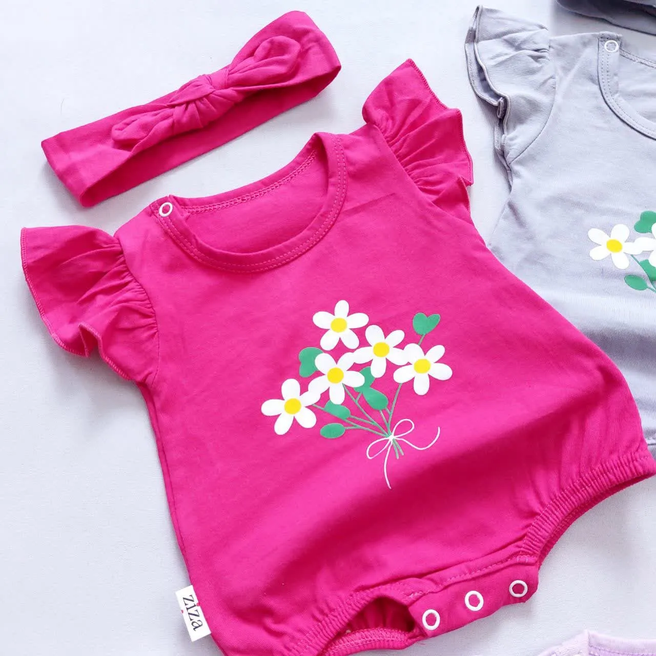 **رامپر نوزادی دخترانه طرح گل با هدبند - لباس بهاره پنبهای لطیف (مناسب 0 تا 8 ماه)**