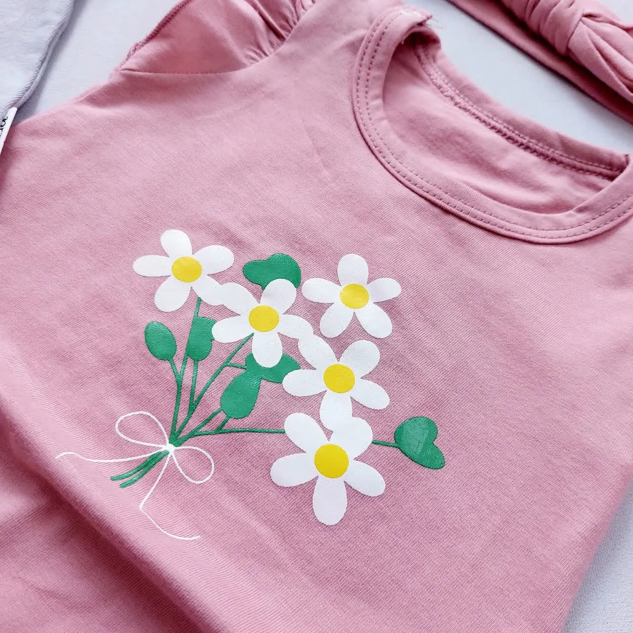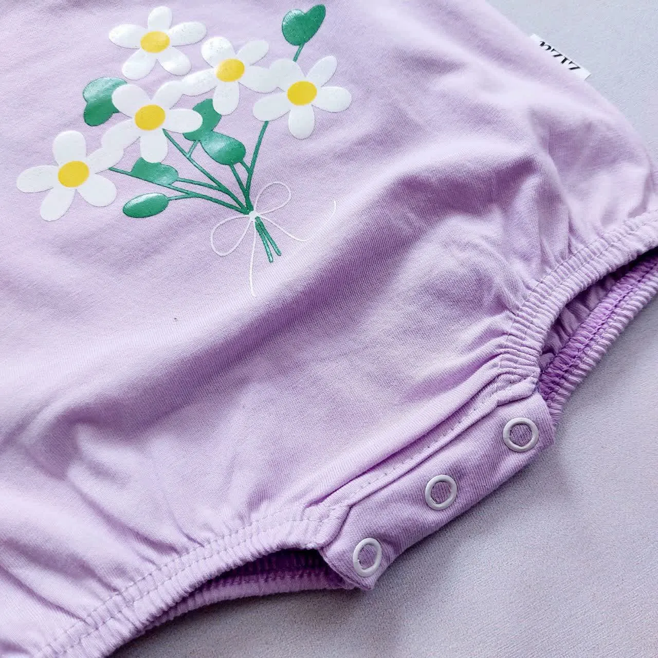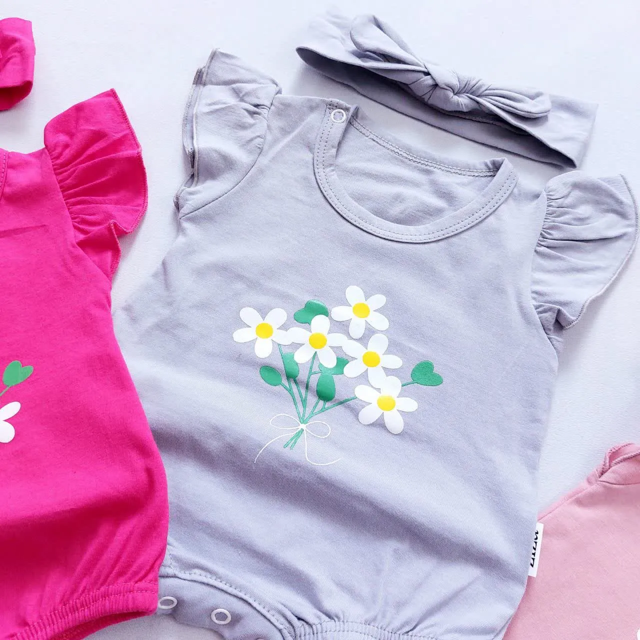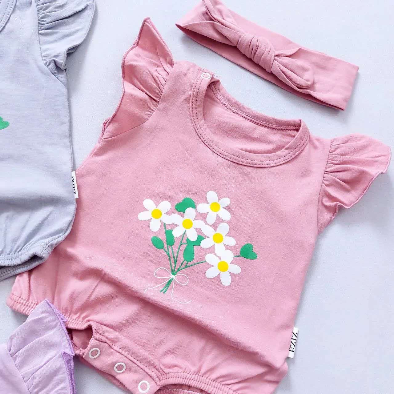 **رامپر نوزادی دخترانه طرح گل با هدبند - لباس بهاره پنبهای لطیف (مناسب 0 تا 8 ماه)**