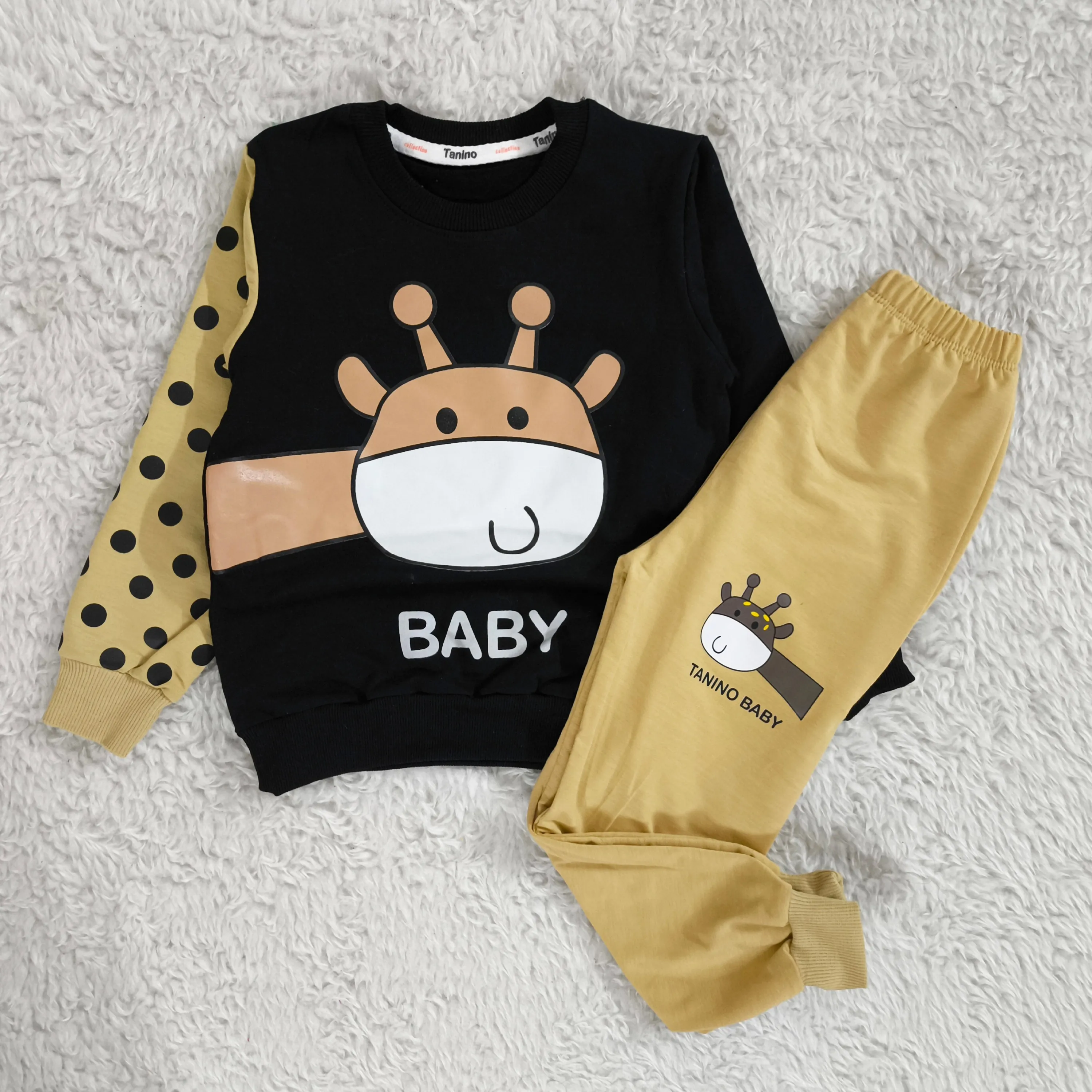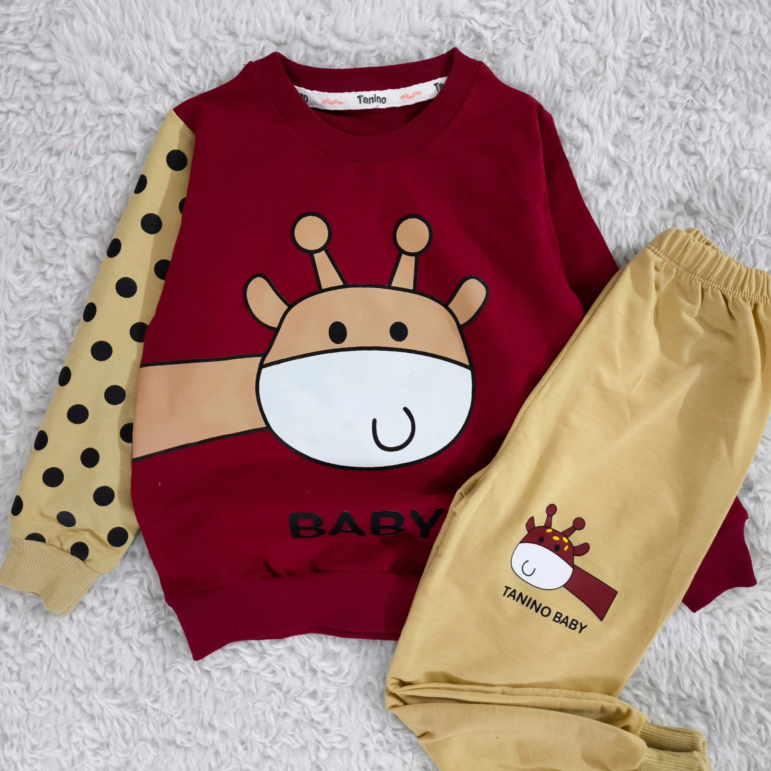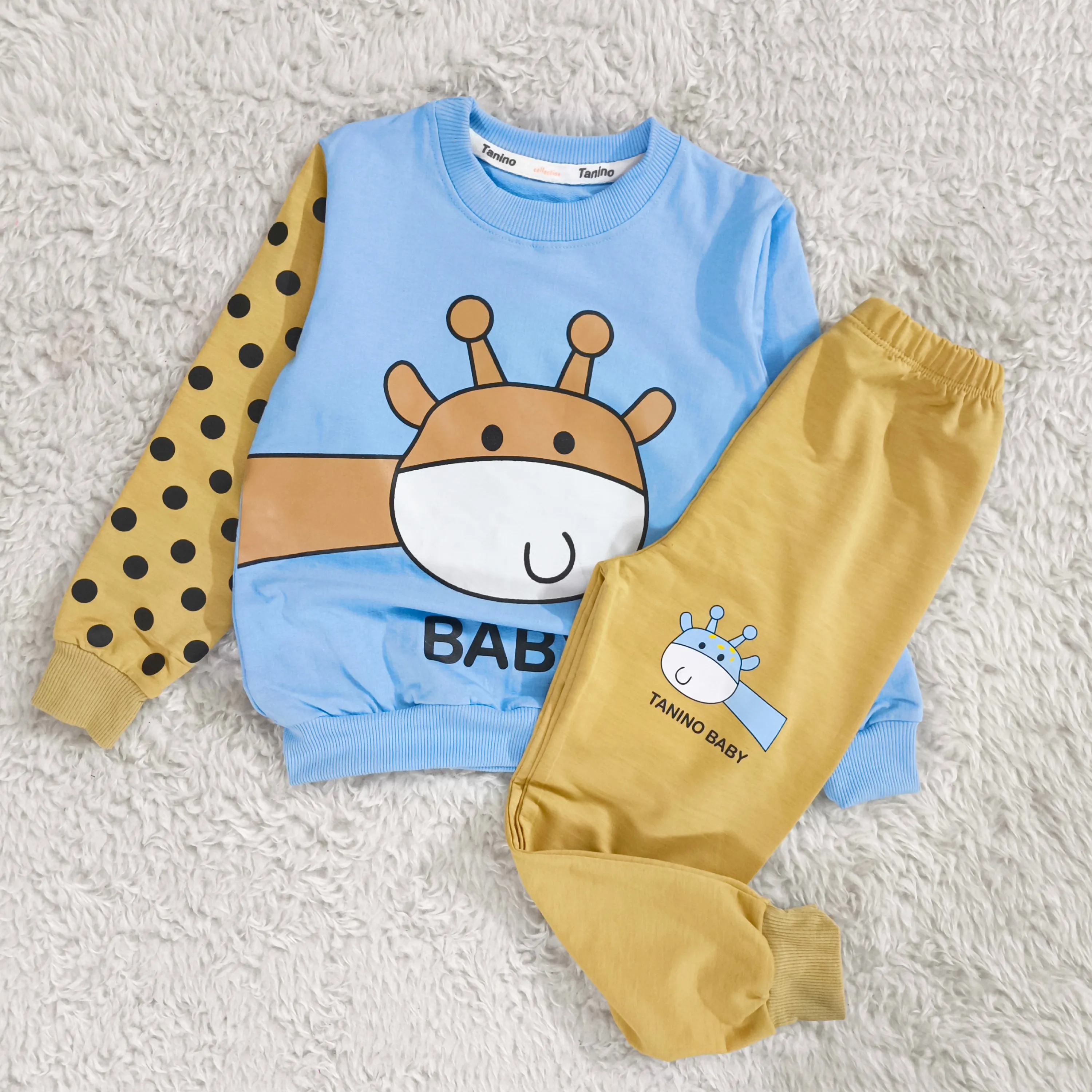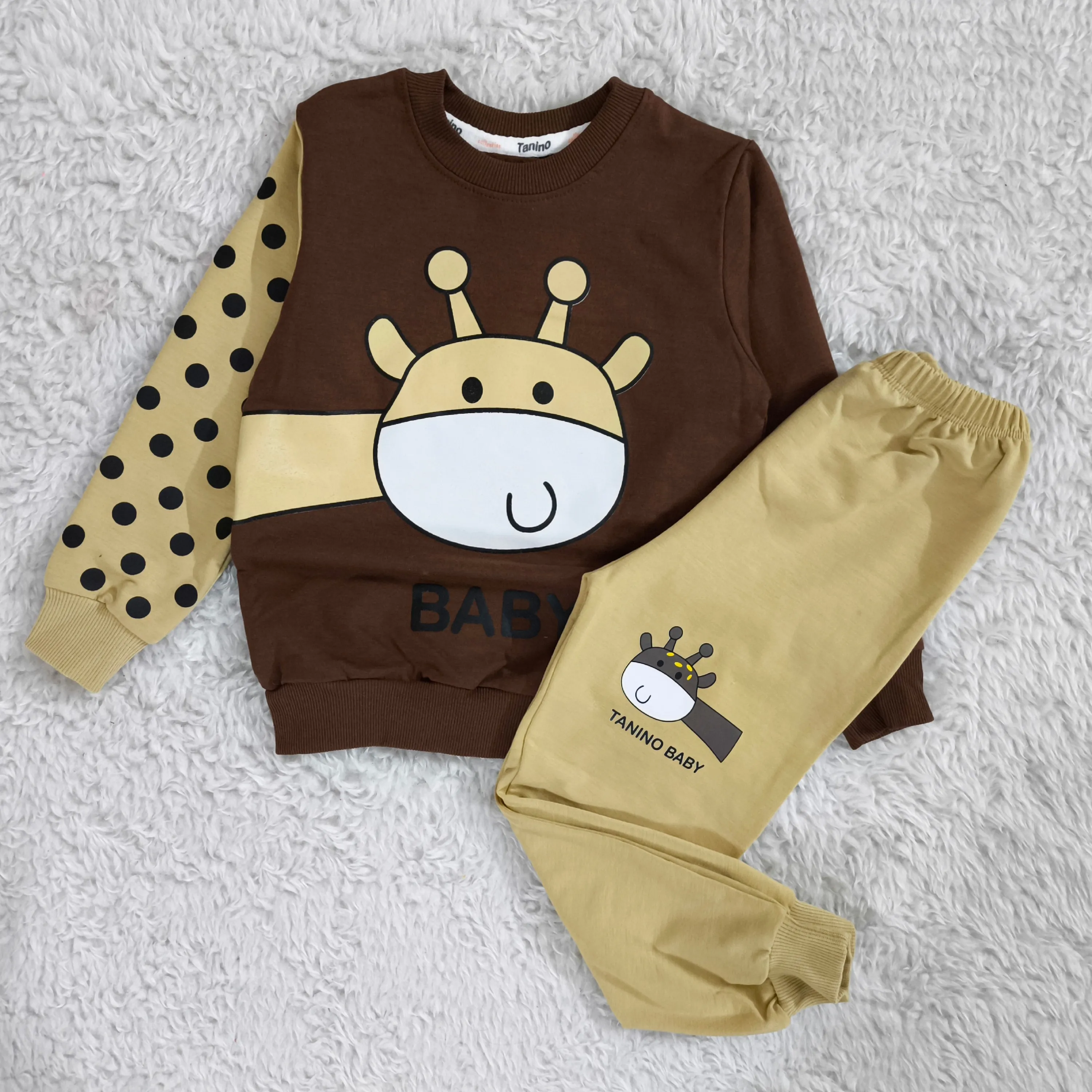 **بلوز شلوار پسرانه زرافه خالدار پنبه دورس نرم و لطیف**
