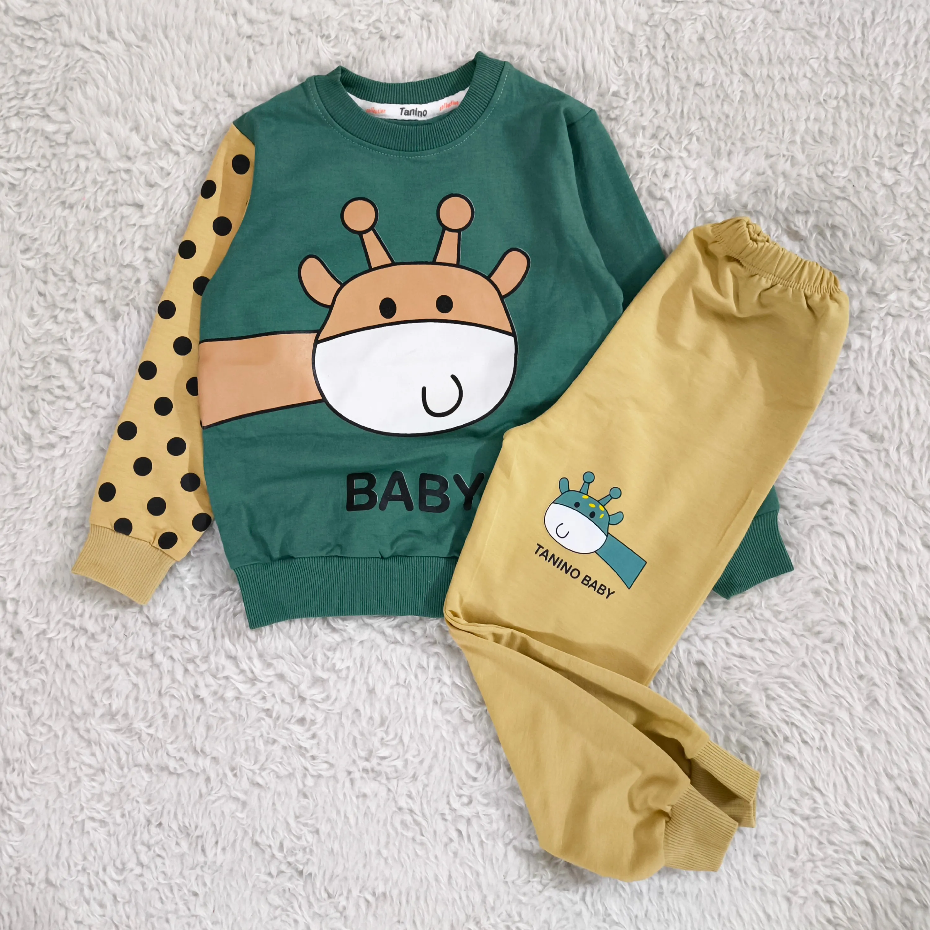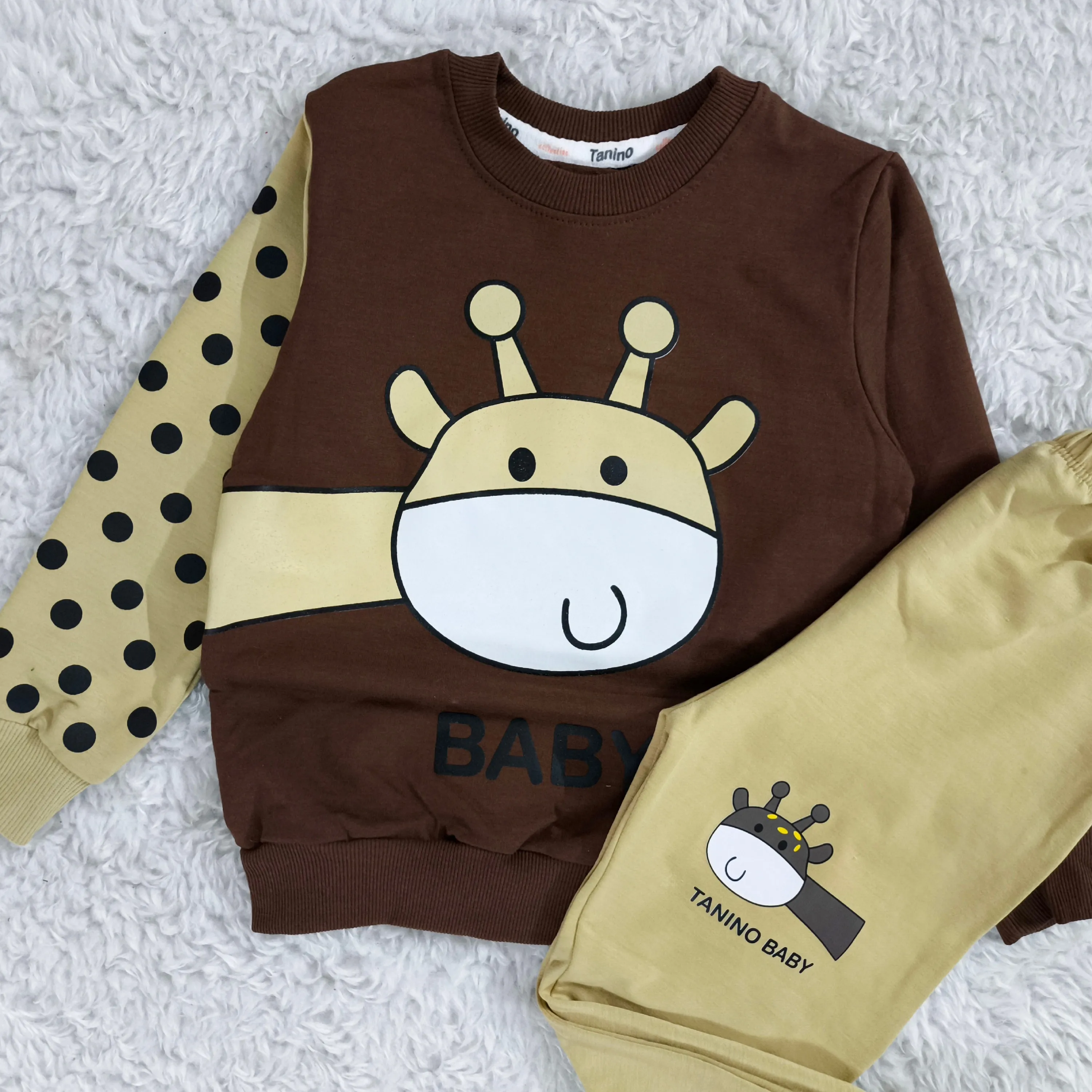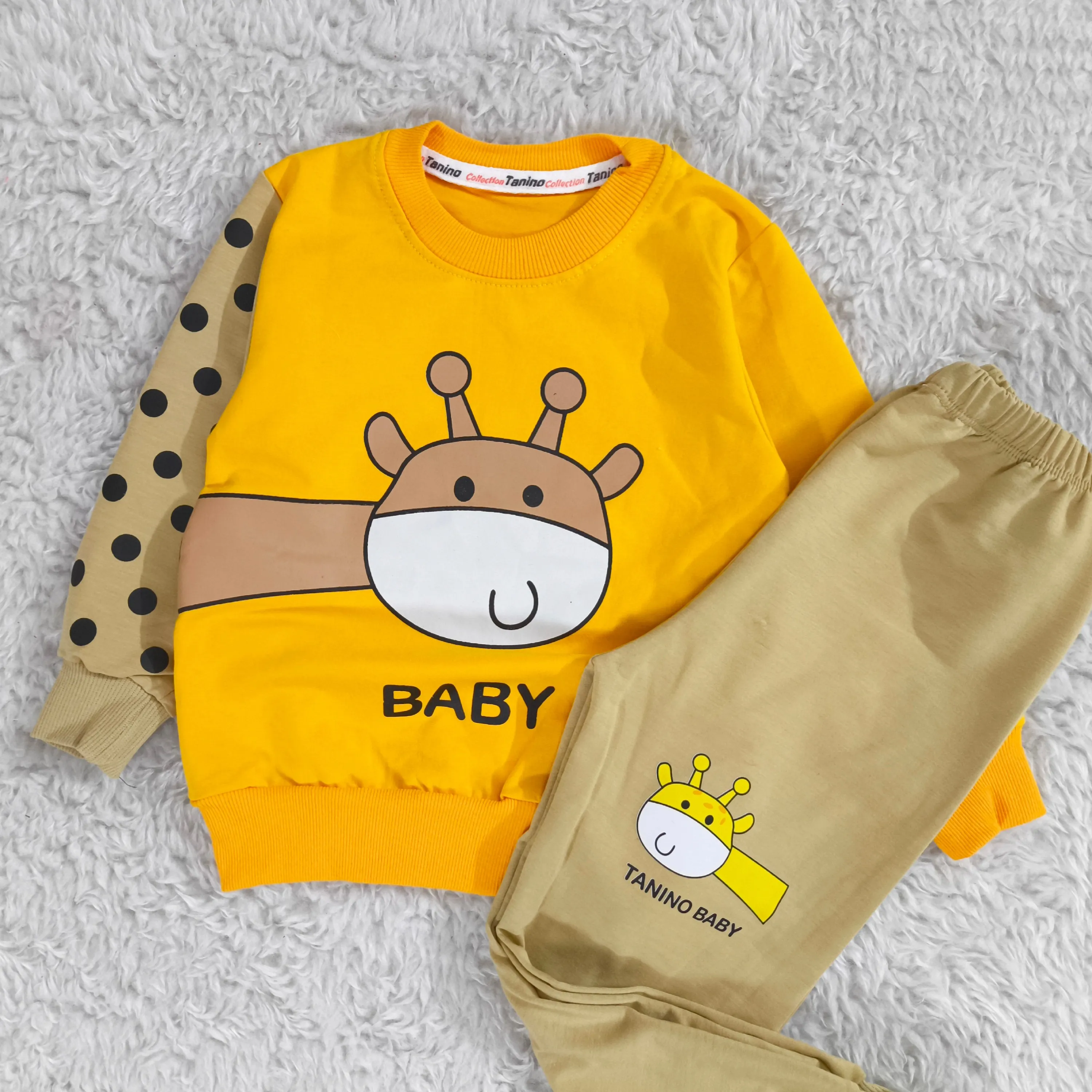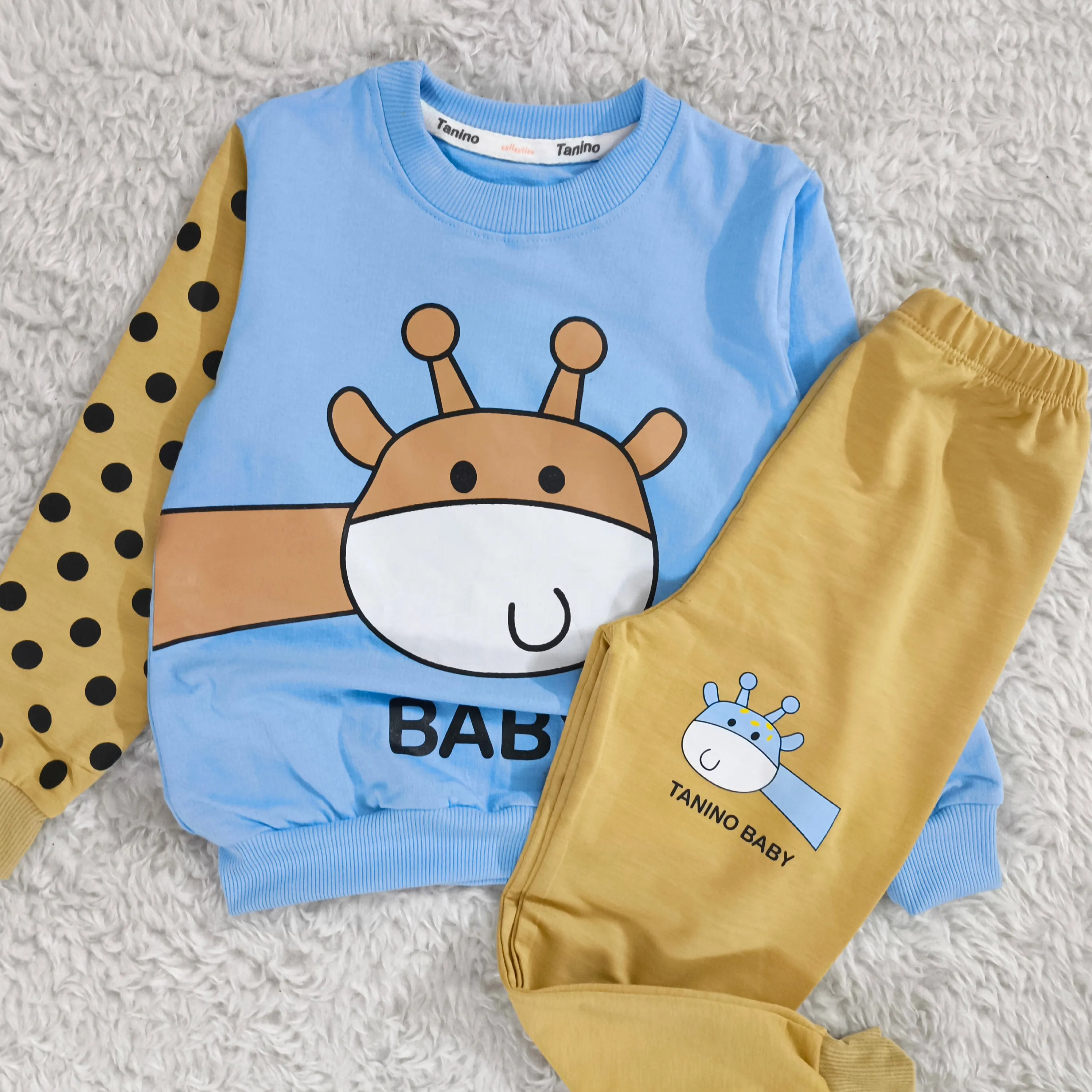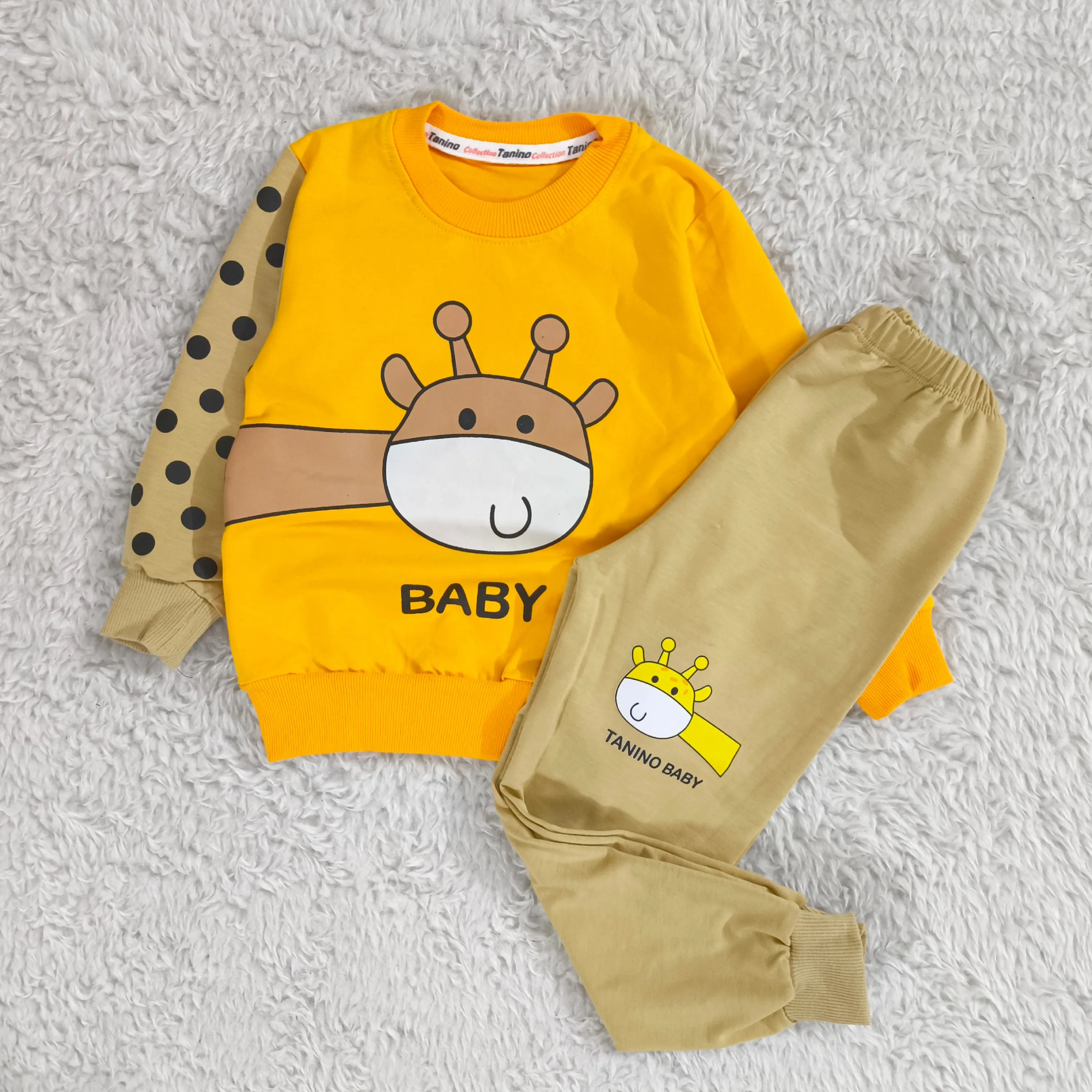 **بلوز شلوار پسرانه زرافه خالدار پنبه دورس نرم و لطیف**