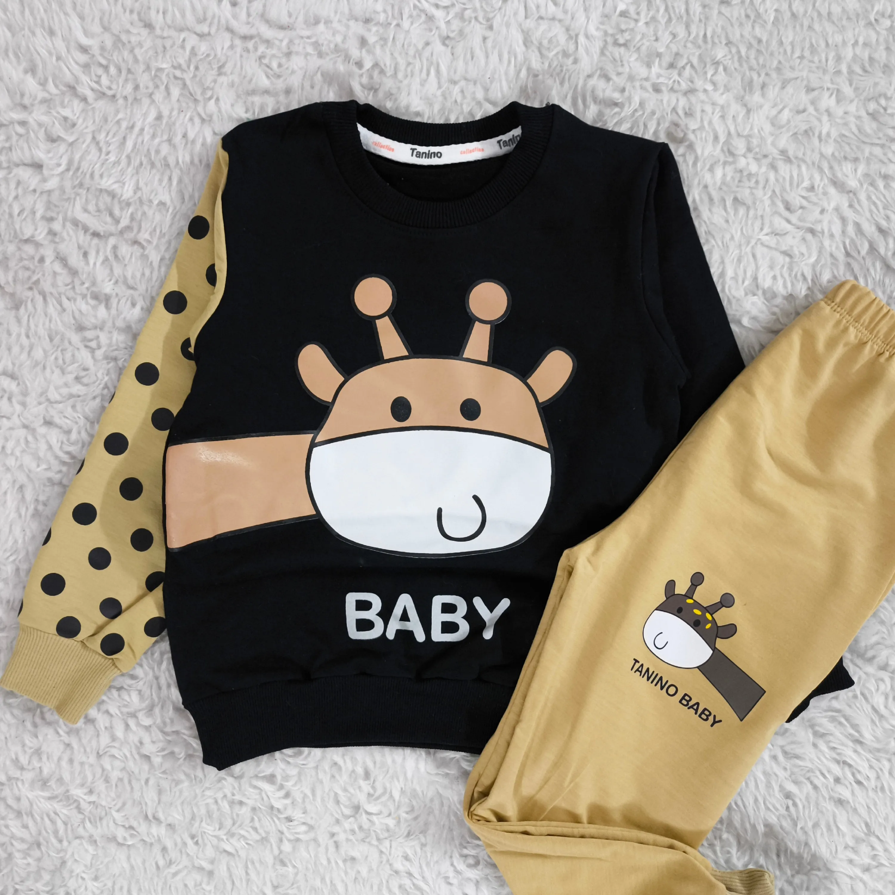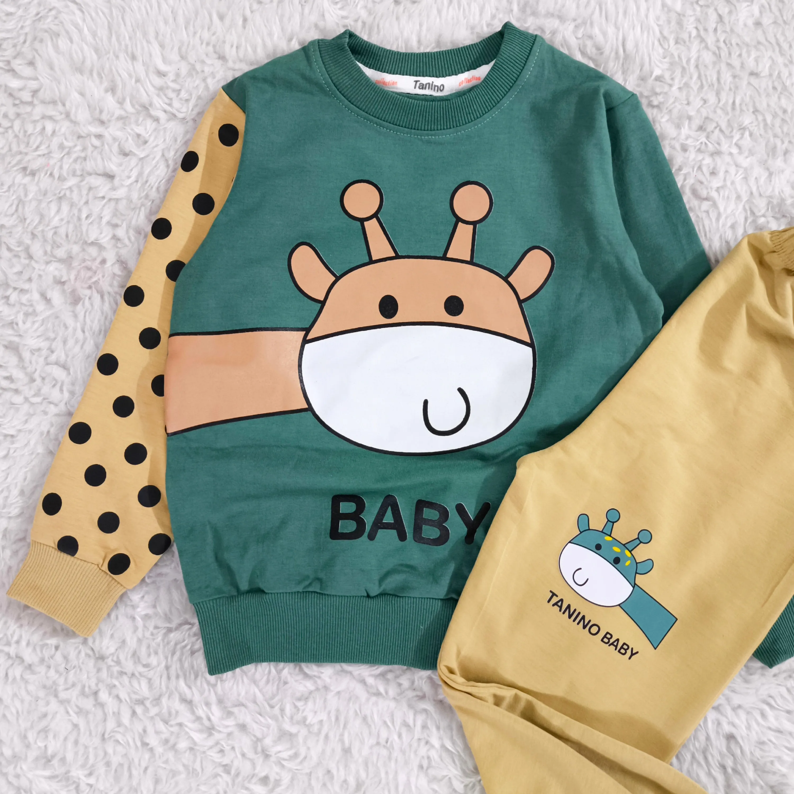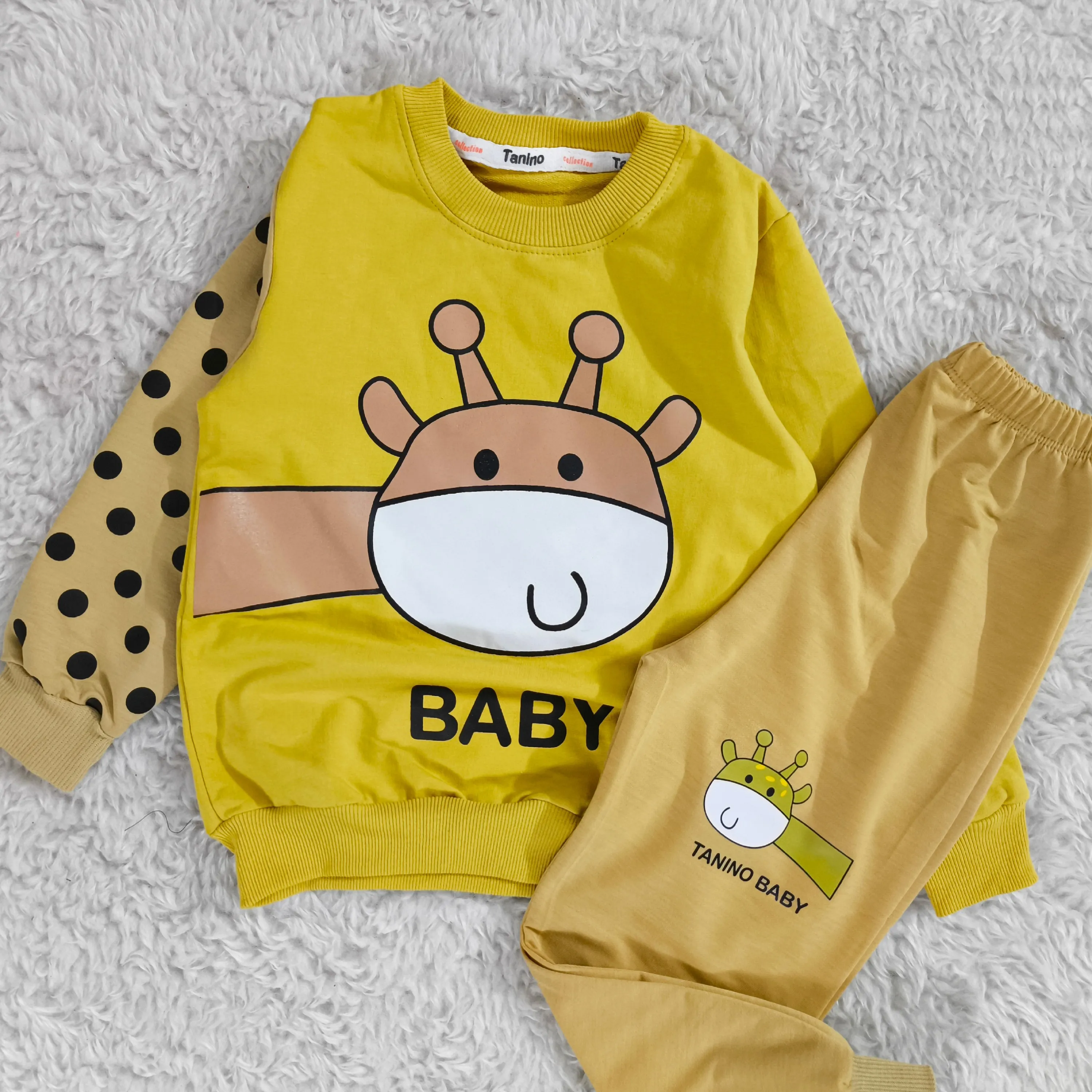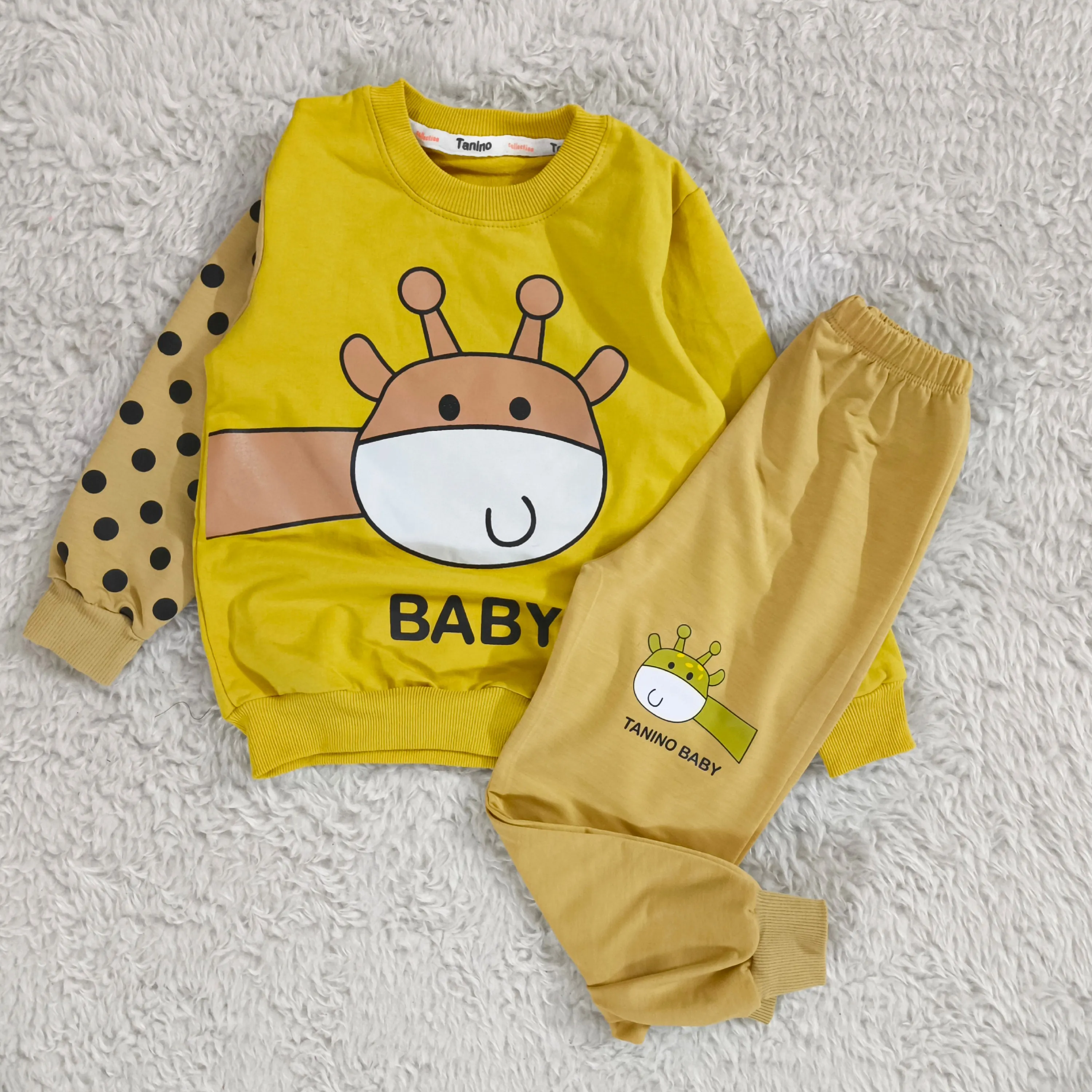 **بلوز شلوار پسرانه زرافه خالدار پنبه دورس نرم و لطیف**