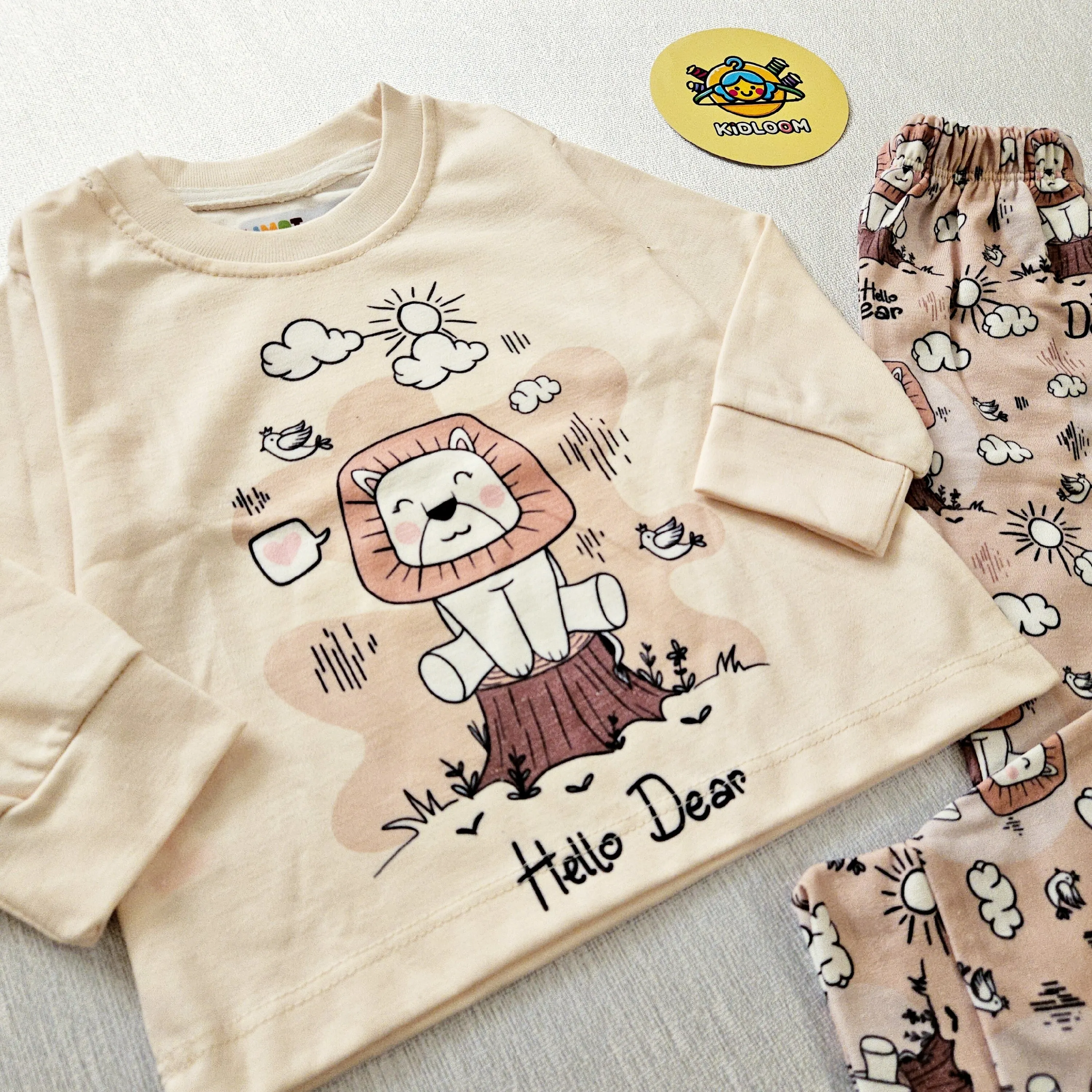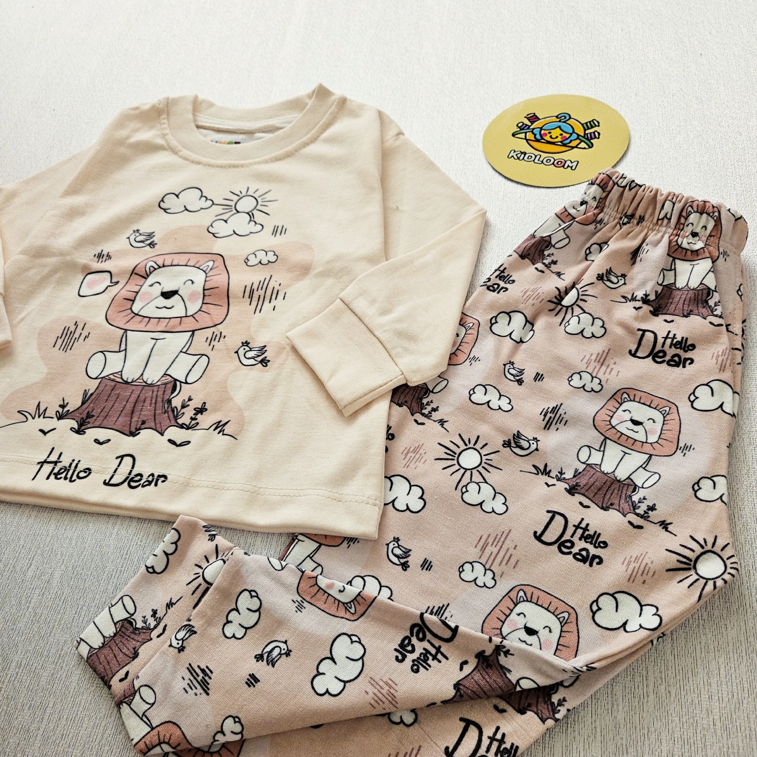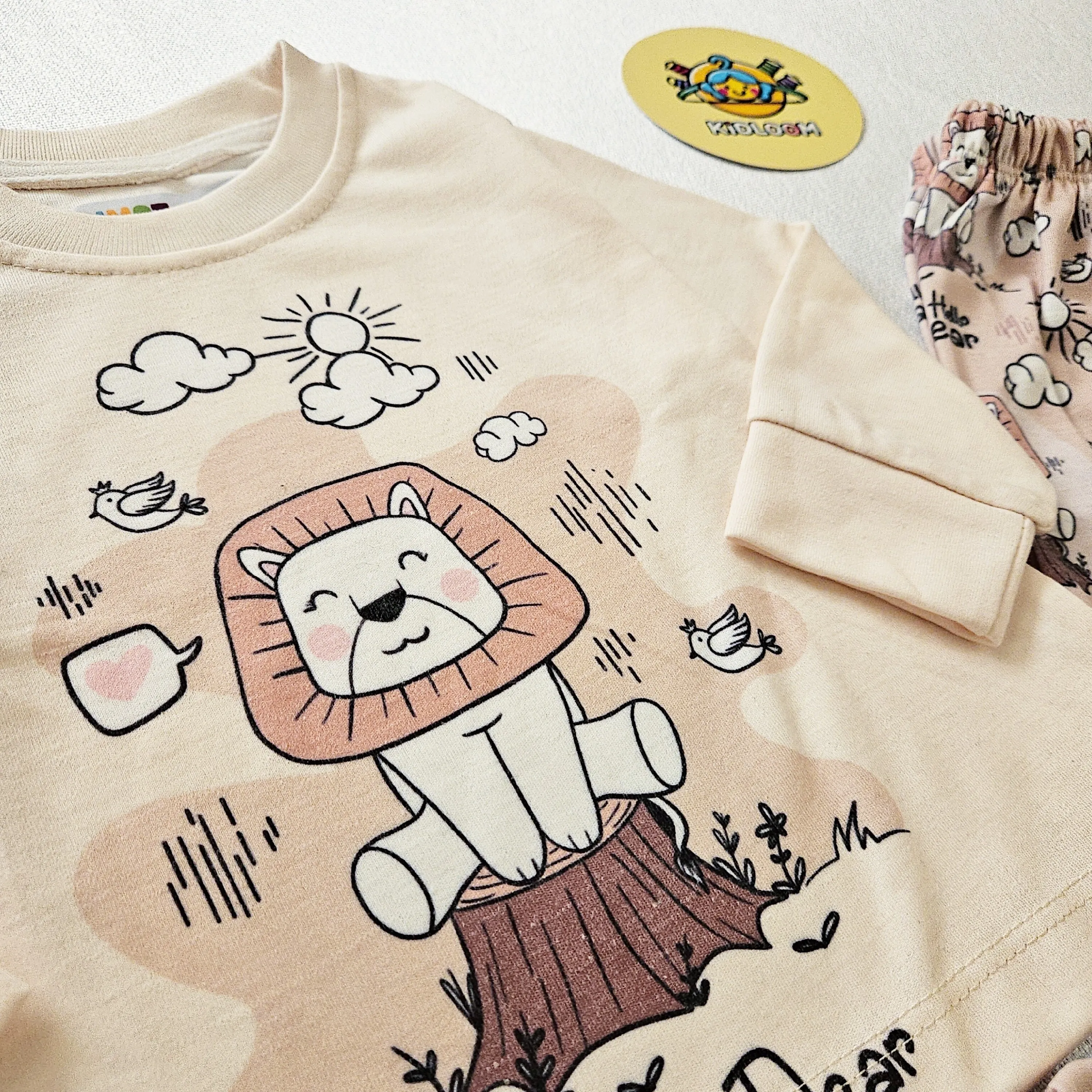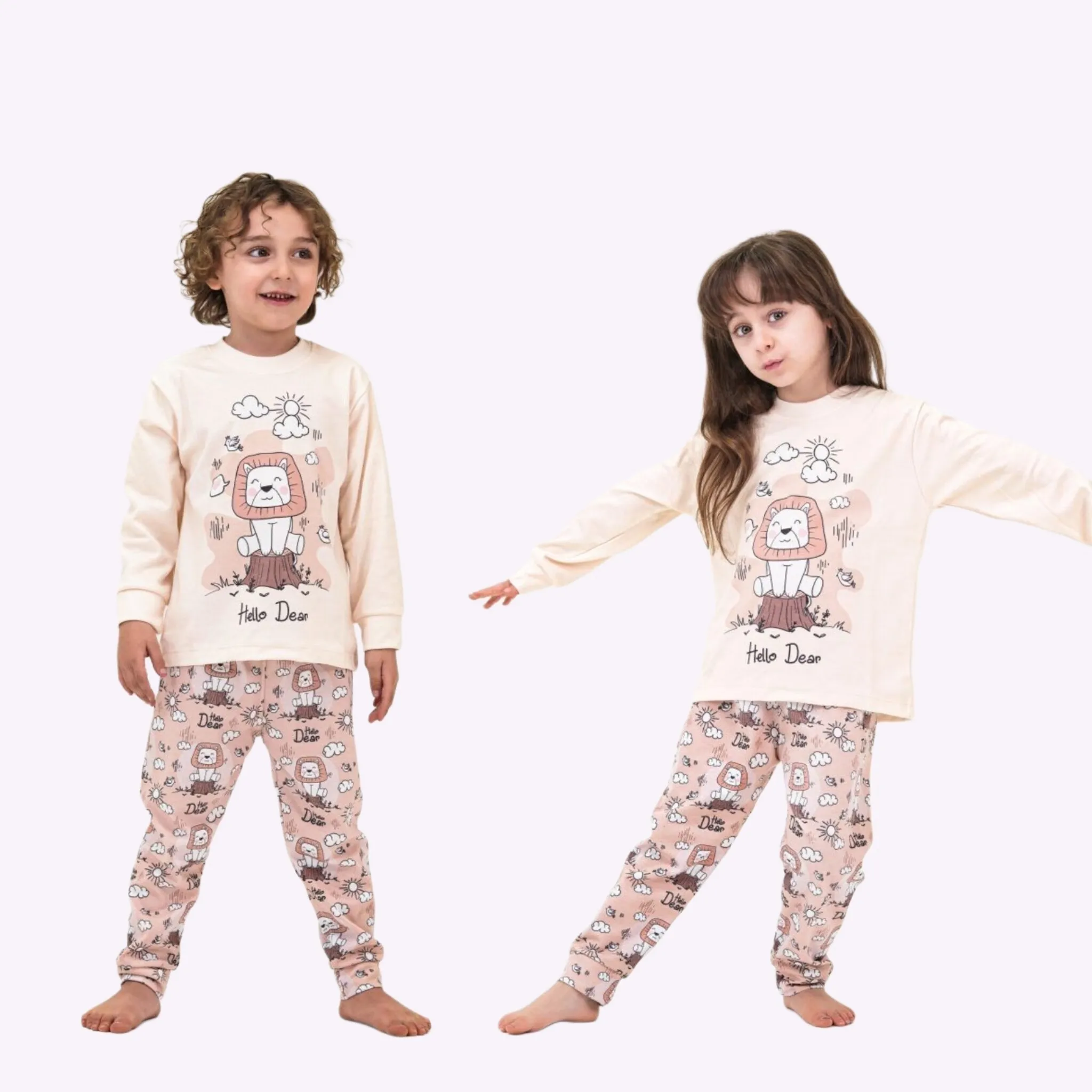 ست راحتی پسرانه و دخترانه طرح شیر و ابر | لباس خواب کودک پنبه ای