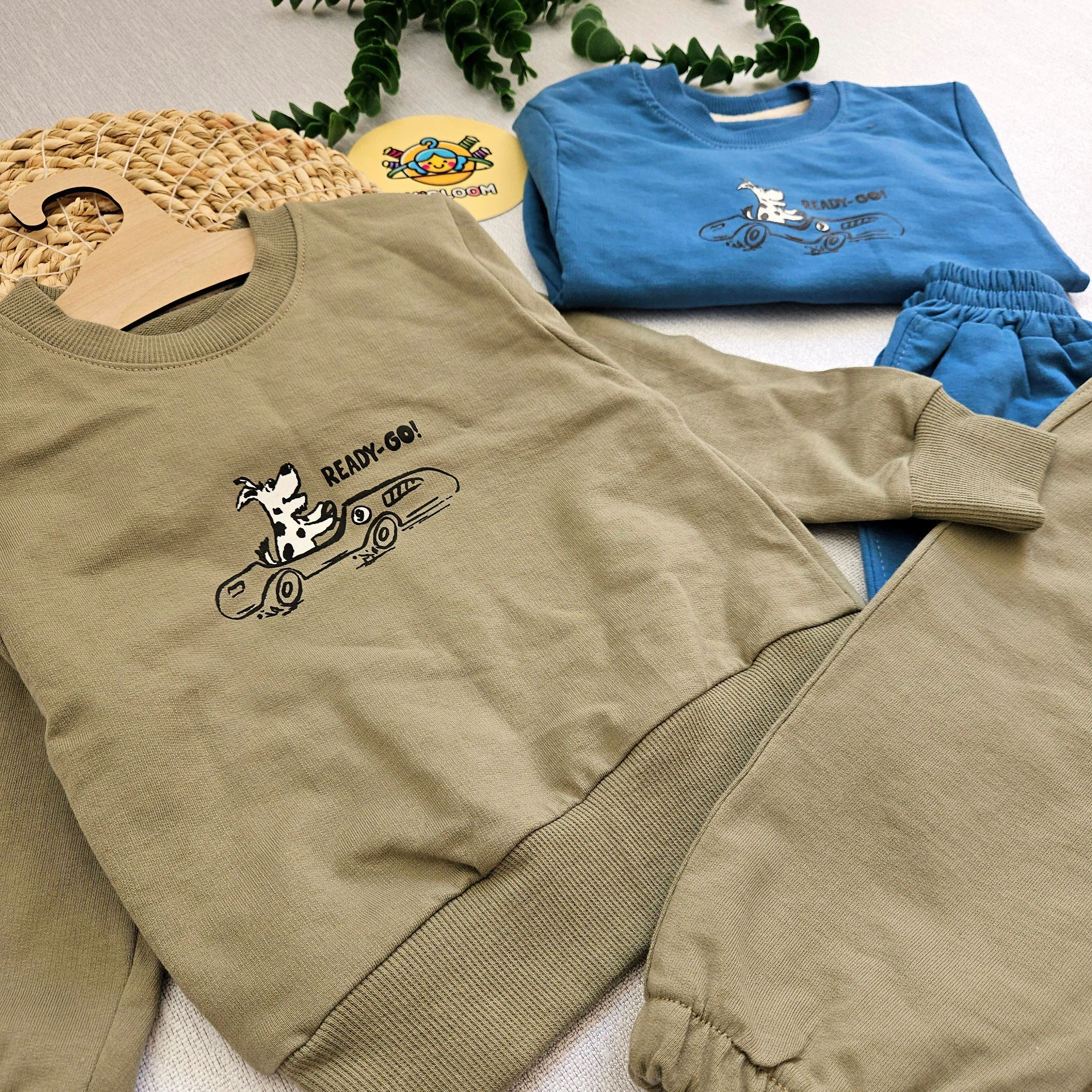 ست بلوز شلوار پسرانه طرح سگ ماشین سوار | لباس راحتی بچگانه | 1 تا 7 سال