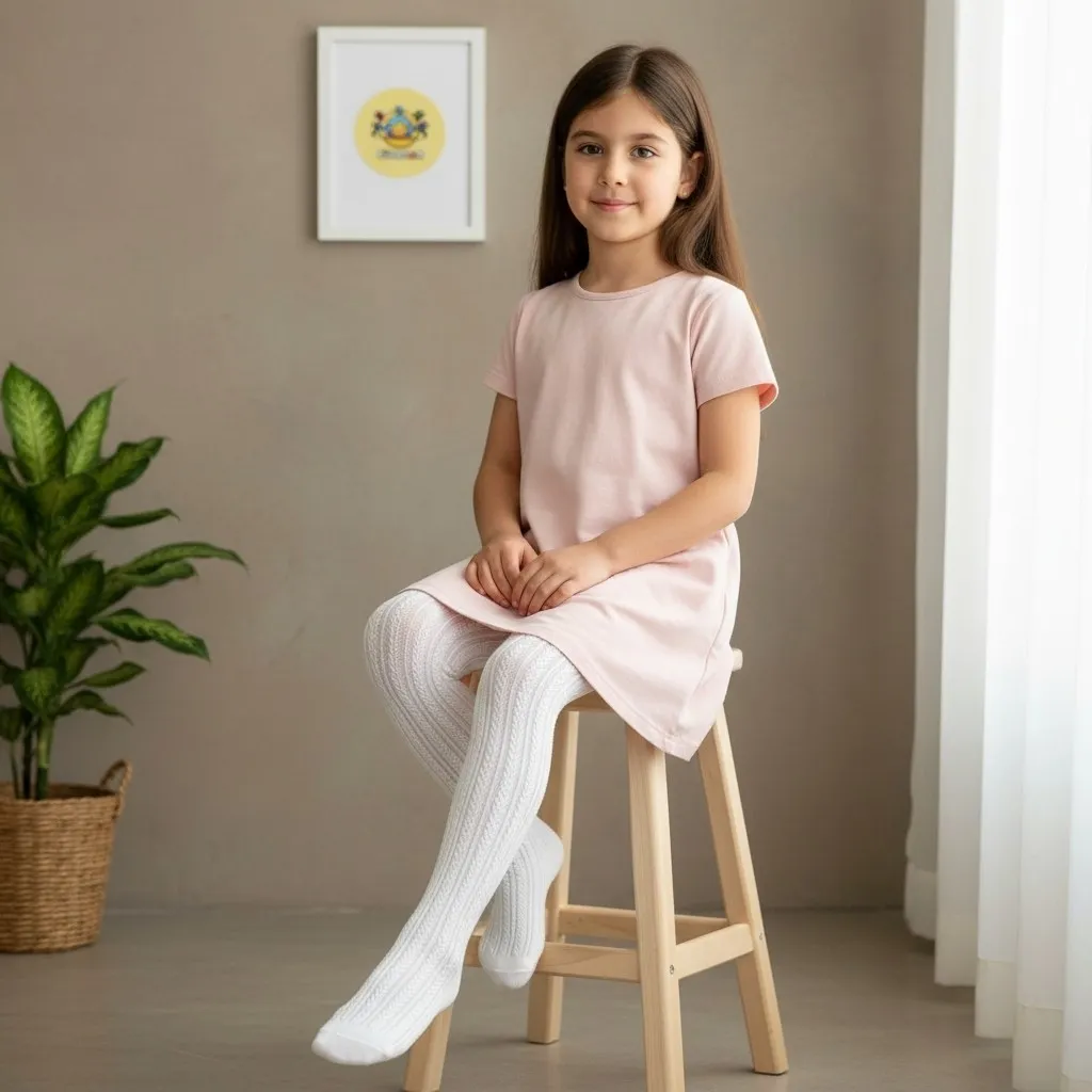 جوراب ساق بلند دخترانه طرح بافتنی نخ پنبه ای لطیف مناسب 2 تا 10 سال