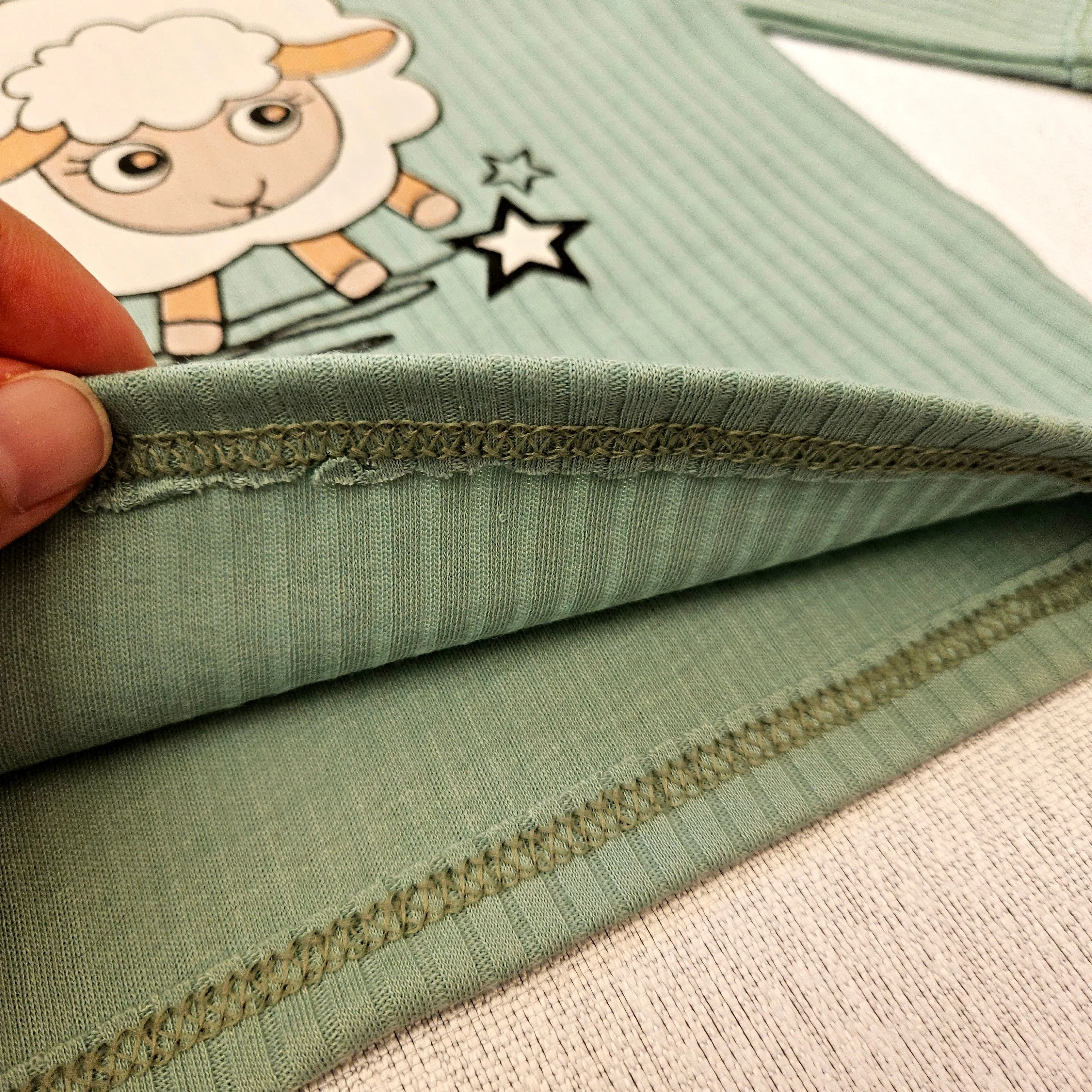 این ست لباس راحتی نوزاد با طرح گوسفند، انتخابی ایدهآل برای راحتی و شیکپوشی کوچولوی شما از بدو تولد تا 24 ماهگی است. این ست از پارچهای نرم، کشی و لطیف از جنس پنبه کبریتی با بافت راهراه ریز تهیه شده که حس خوبی را به پوست لطیف نوزاد منتقل میکند. چاپ زول با کیفیت و دوخت تمیز، دوام و زیبایی این لباس را تضمین میکند و آن را برای استفاده روزمره ایدهآل میسازد.