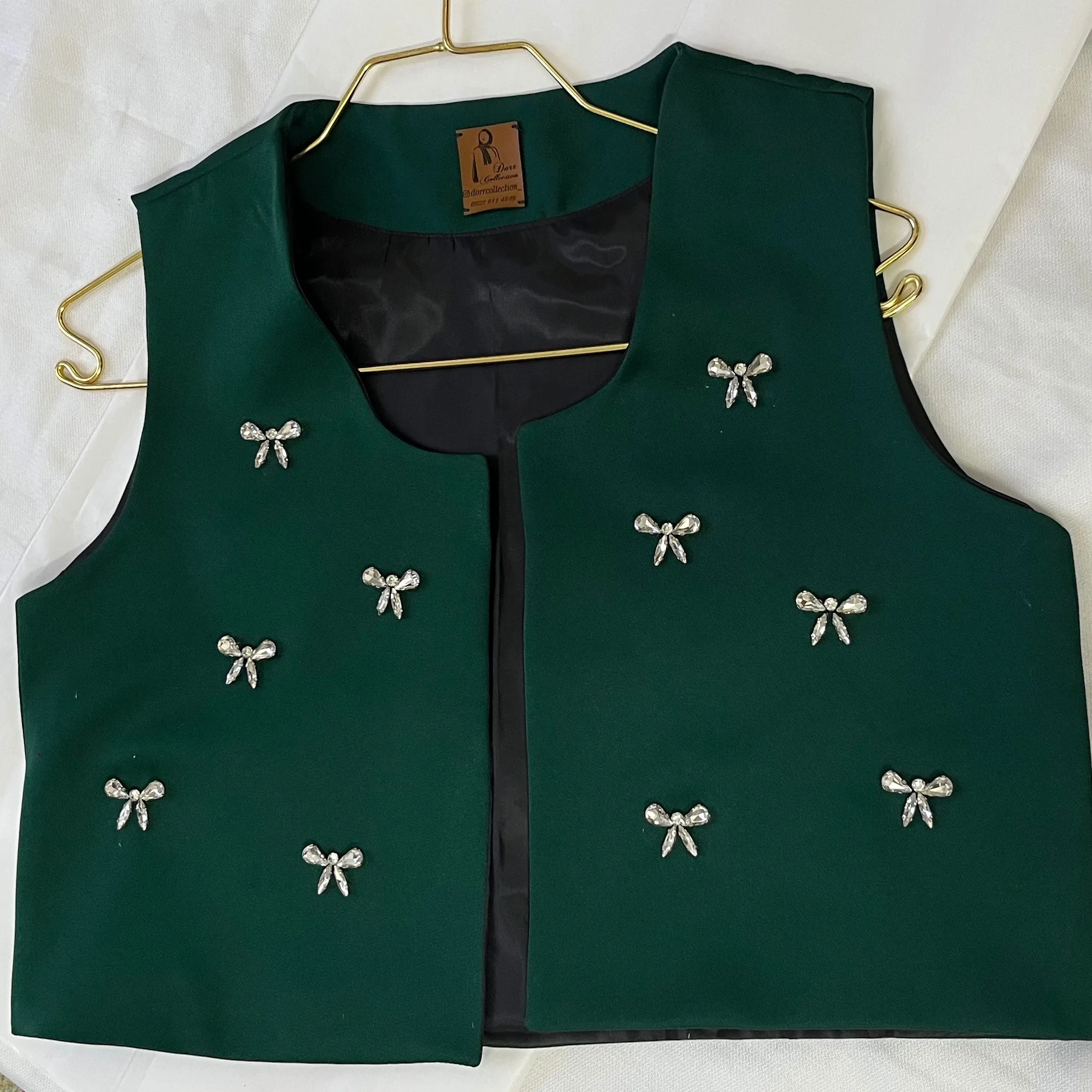 جلیقه جواهر دوزی سبز پاپیونی