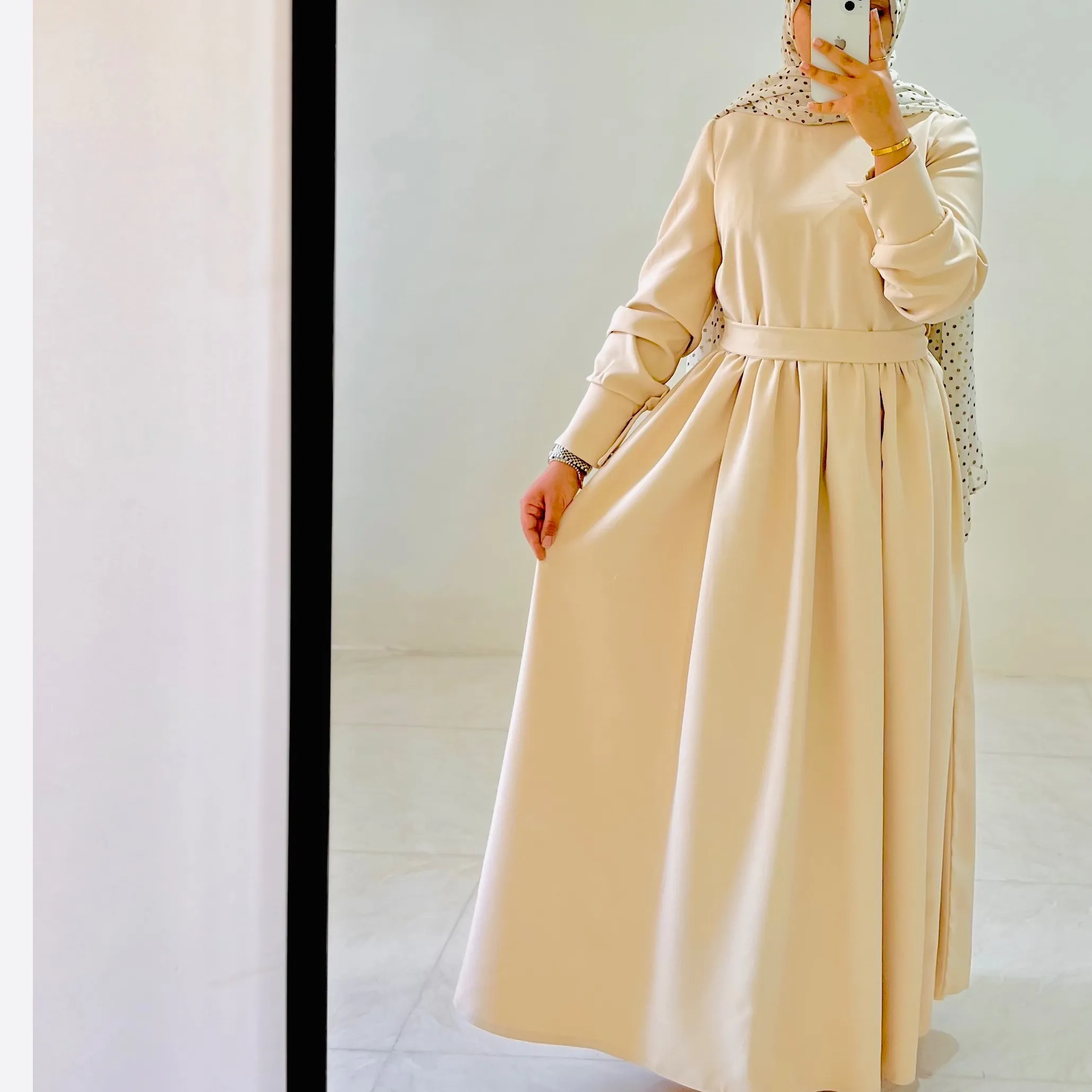 پیراهن کرمی بیسیک با جلیقه سوزن دوزی