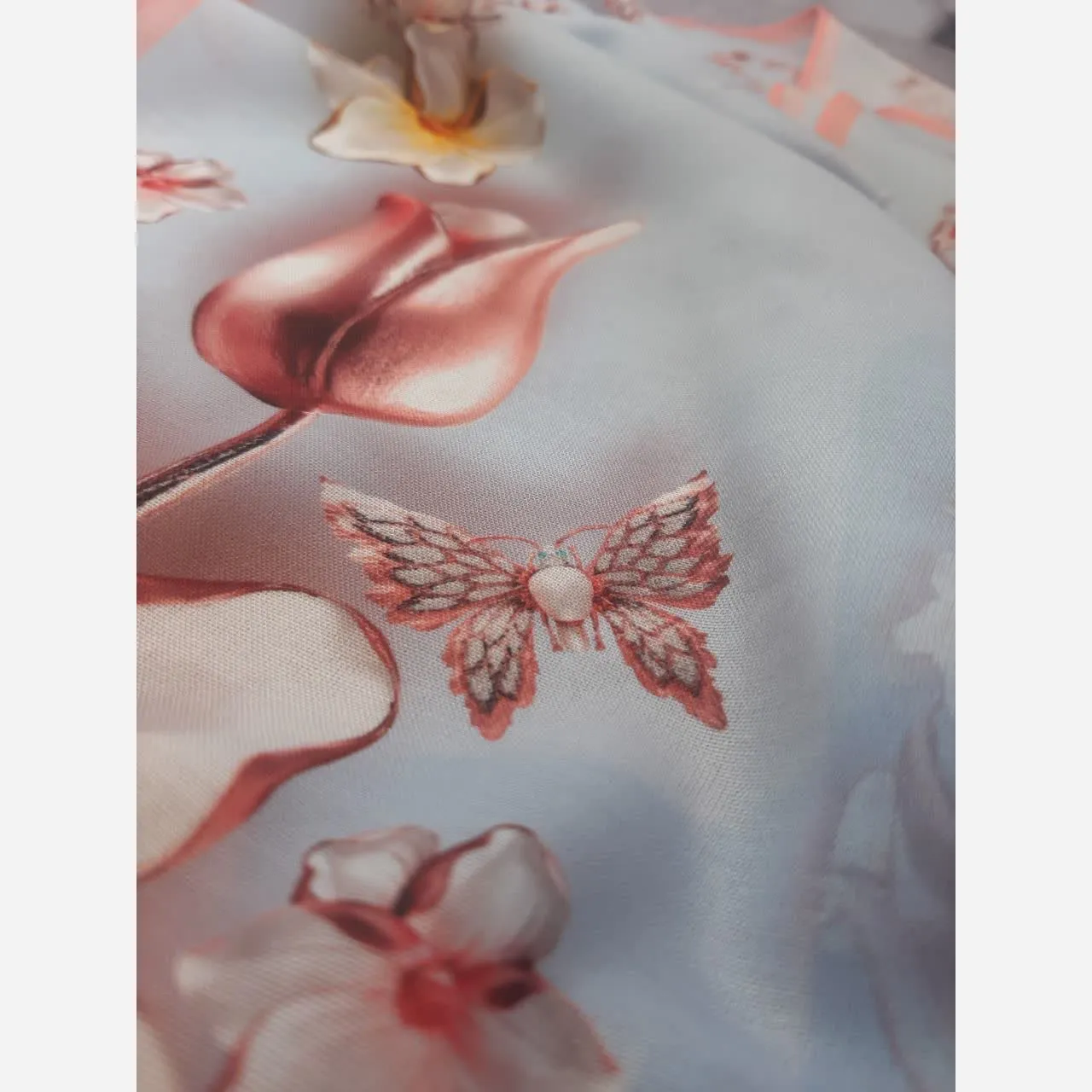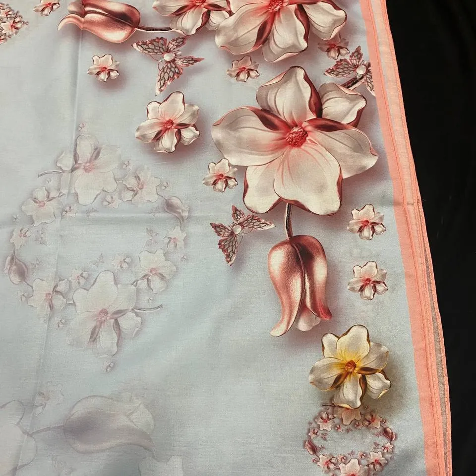شال و روسری نخی زنانه با طرح دلنشین گل و پروانه، انتخابی ایدهآل برای افزودن آرامش و لطافت به استایل شماست. ترکیب رنگ آبی و صورتی این روسری، حس زیبایی و وقار خاصی را به همراه دارد.