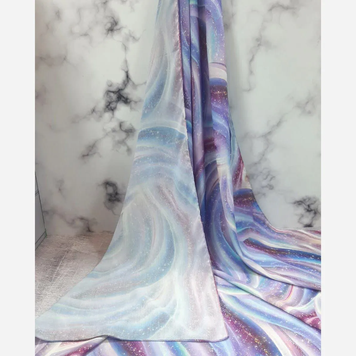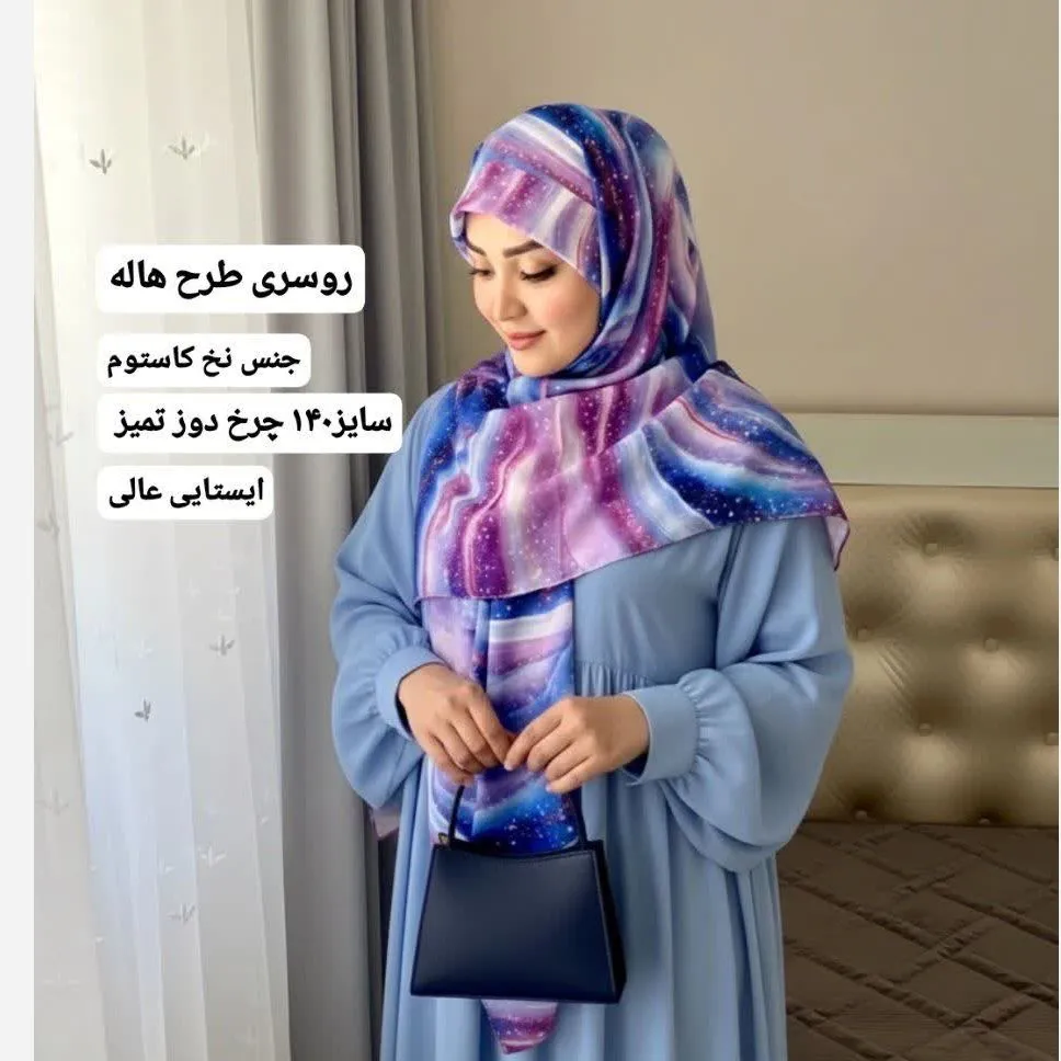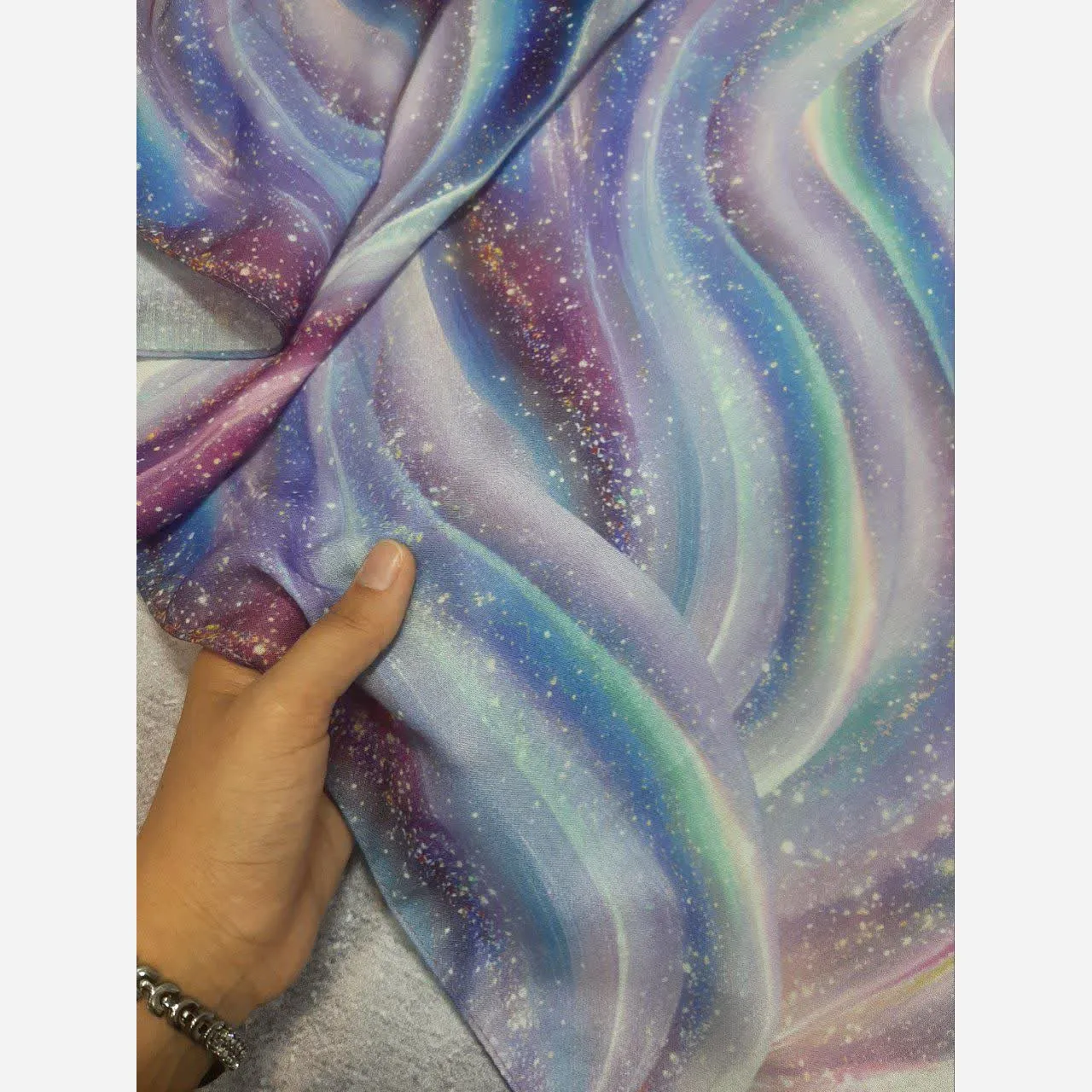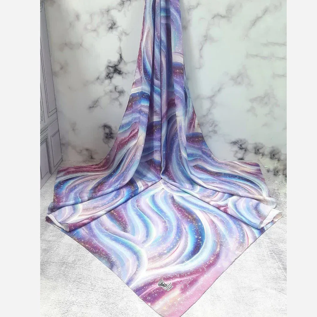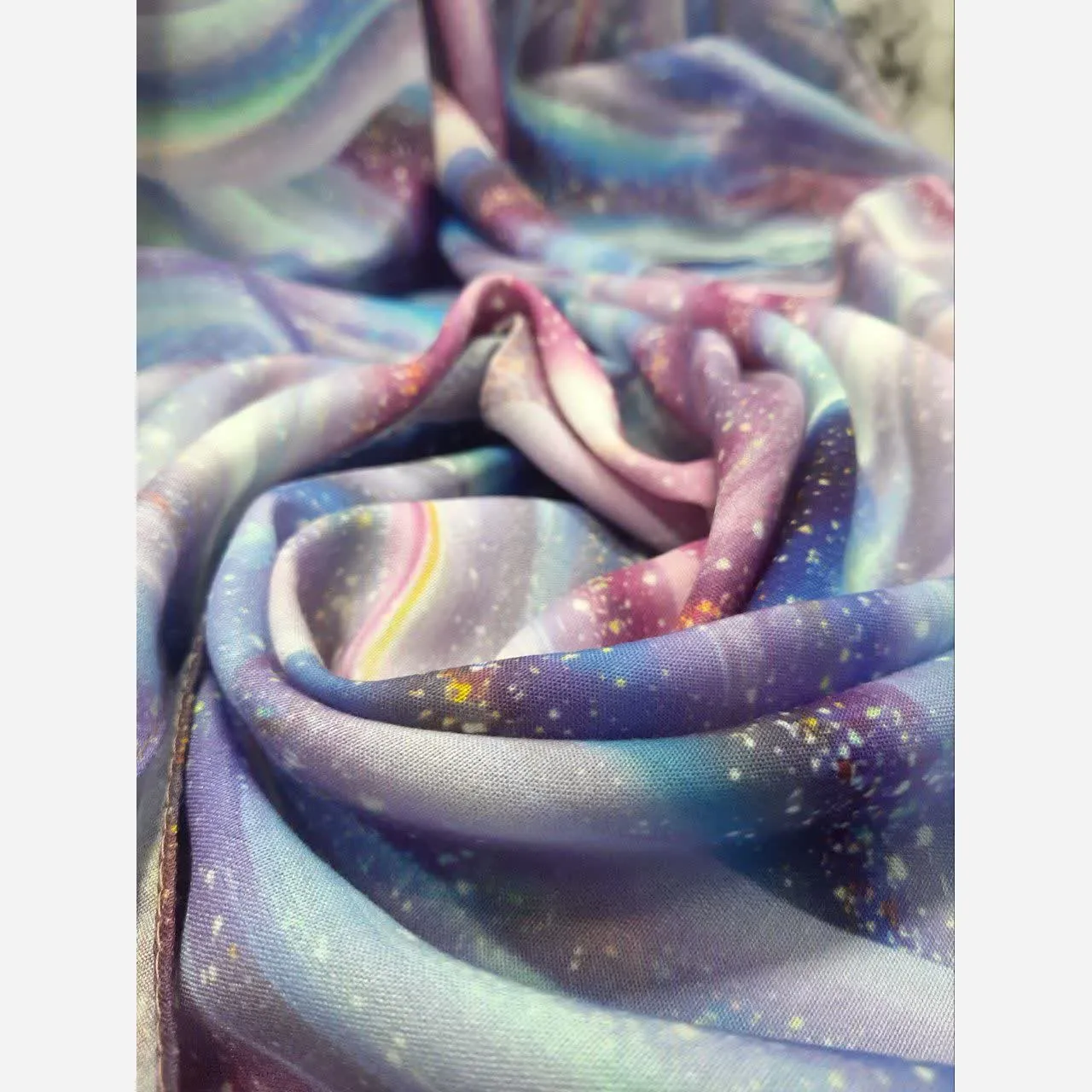 **روسری زنانه طرح کهکشان بنفش و آبی - سایز 140، جنس نخ کاستوم**