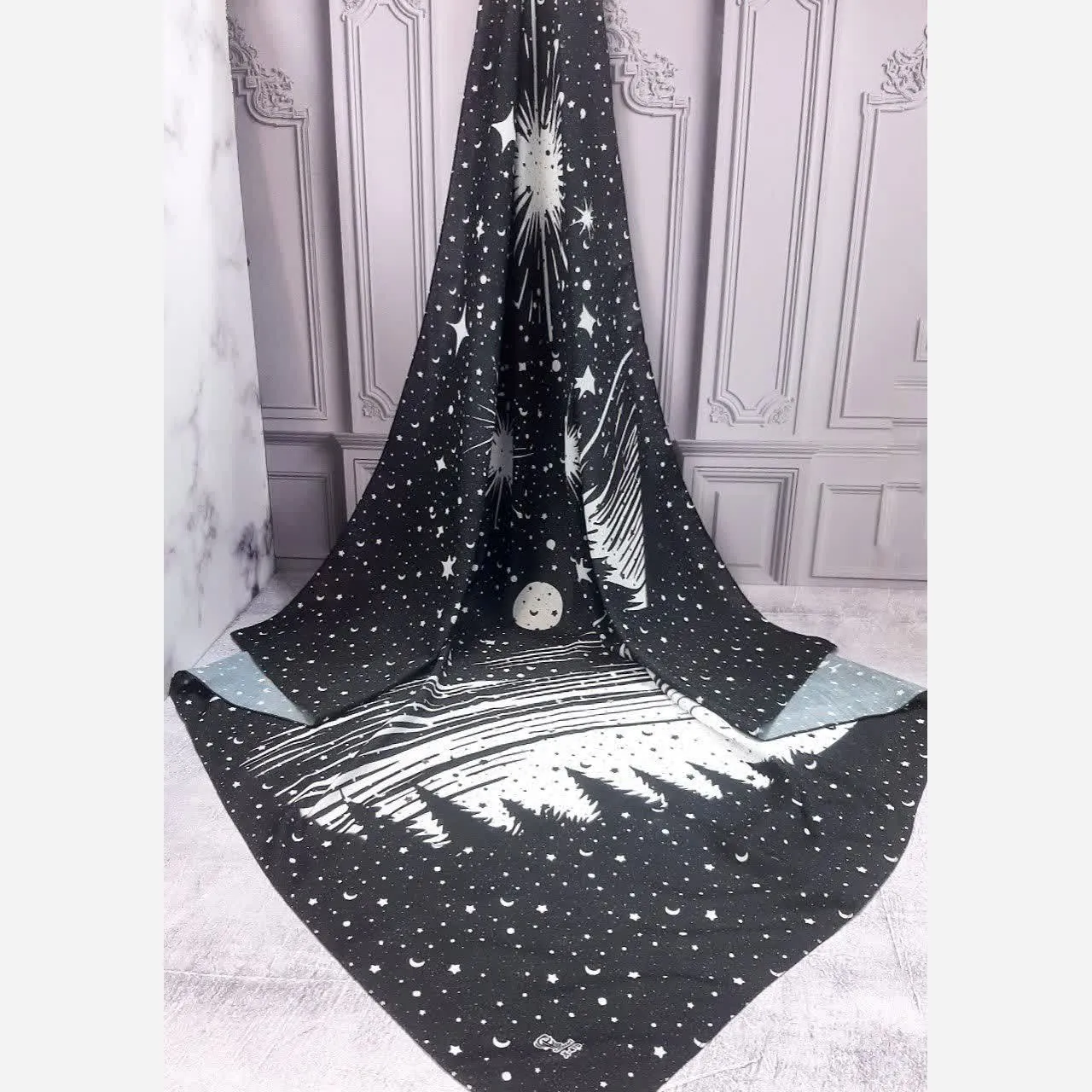 روسری زنانه ماهلین مشکی با طرح ماه و ستاره سفید | روسری شیک