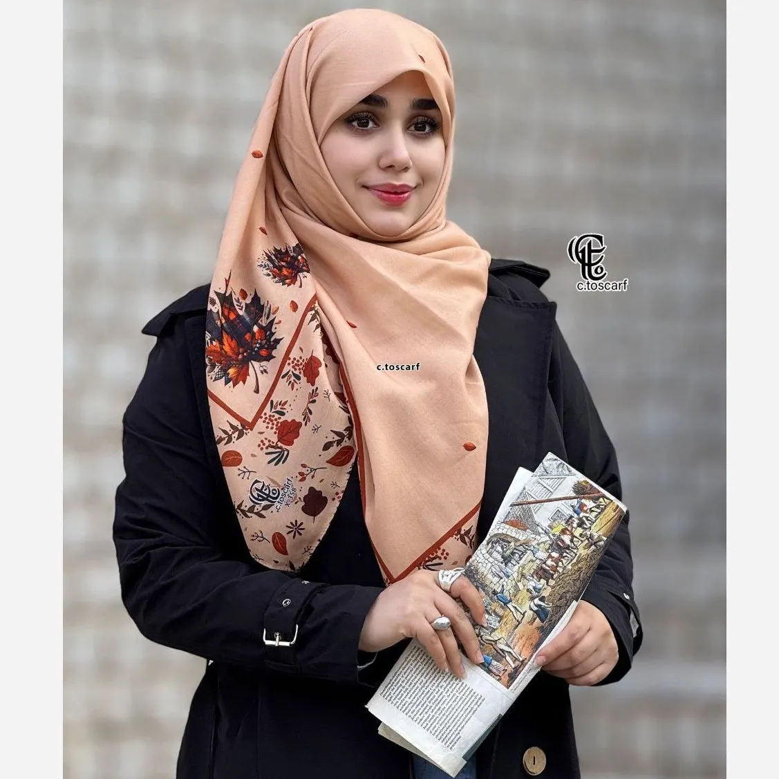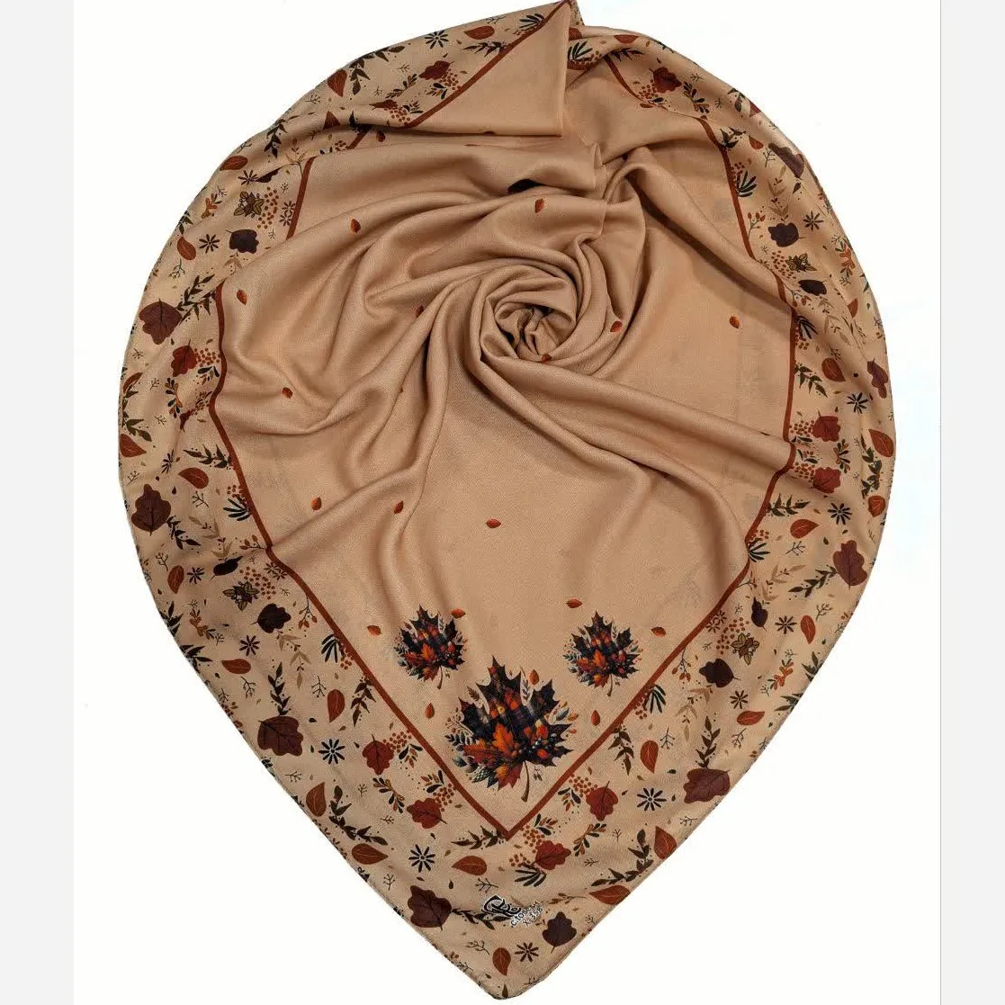 روسری زنانه طرح پانیذ حاشیه ظریف نسکافه ای جنس نخ کاستوم سیتو متوسط