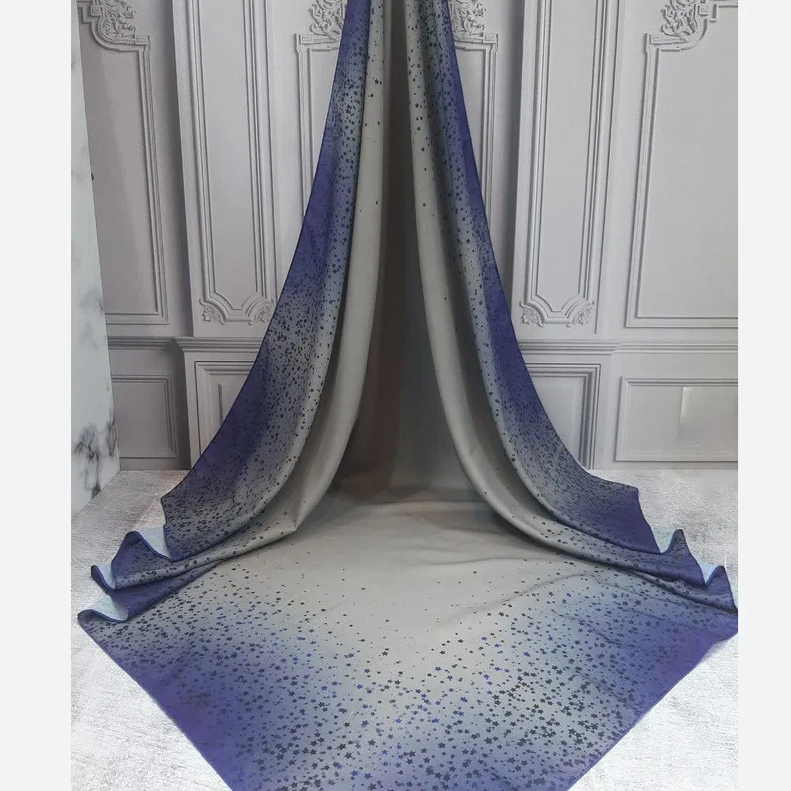 شال و روسری طرح ستاره سرمهای و طوسی، انتخابی ایدهآل برای تکمیل استایلهای مجلسی و شیک شماست. این محصول با ترکیبی زیبا از رنگ سرمهای و طوسی، جلوهای خاص و چشمنواز به استایل شما میبخشد. زمینه روسری به رنگ طوسی ملایم و حاشیه آن به رنگ سرمهای روشن طراحی شده است.