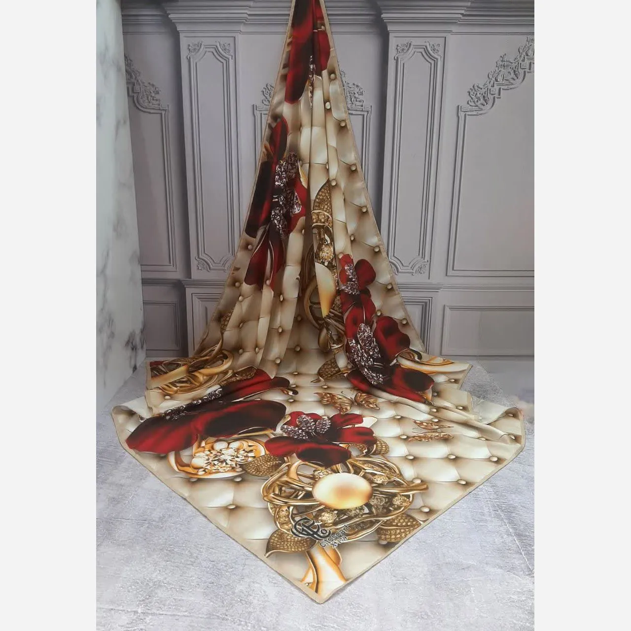 روسری نخی طرح شقایق قواره بزرگ 140 سانتیمتر سه بعدی مجلسی خوش رنگ