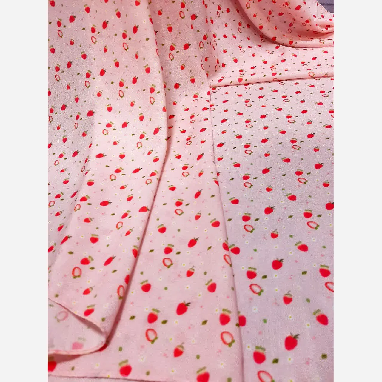 ## روسری نخی زنانه طرح توت فرنگی و بابونه - صورتی قواره بزرگ