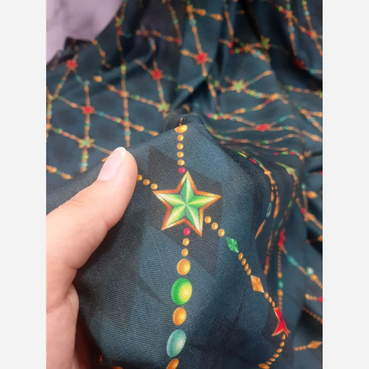 این روسری نخی با طرح الهام گرفته از زیبایی جواهرات، انتخابی ایدهآل برای افزودن جلوهای خاص و درخشان به استایل شماست. قواره بزرگ 140 سانتیمتری این روسری، امکان ایجاد تنوع در بستن و ست کردن با انواع لباسها را فراهم میکند و انعطافپذیری بالایی در ست کردن با لباسهای مجلسی و روزمره به شما میدهد.