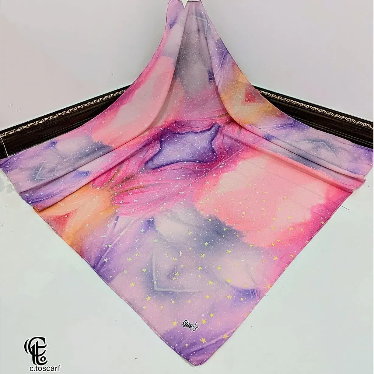 ## روسری نخی طرح ستاره و کهکشان - سایز بزرگ، چرخ دوز، رنگ شاد