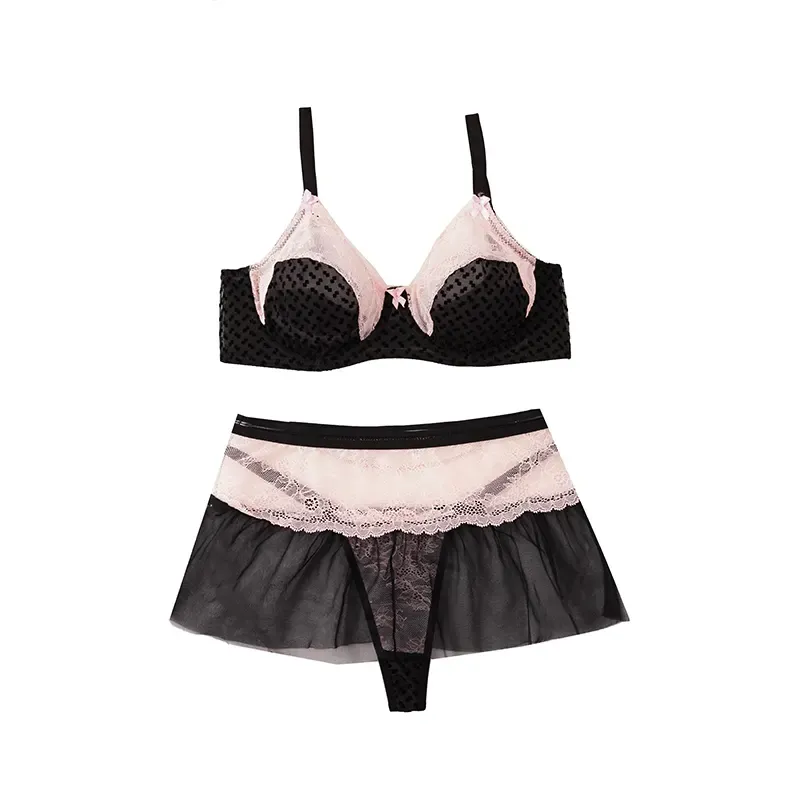 **ست لباس زیر زنانه فانتزی گیپور و تور لامبادا - کاپ B فنردار**