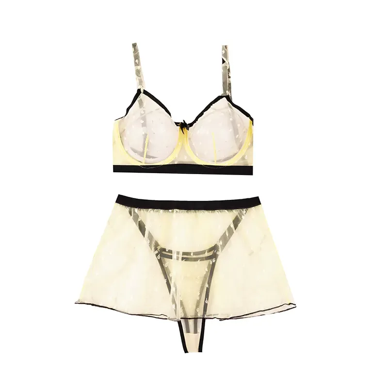 **ست لباس زیر فانتزی زنانه طرحدار تور و حریر کاپ B لامبادا**