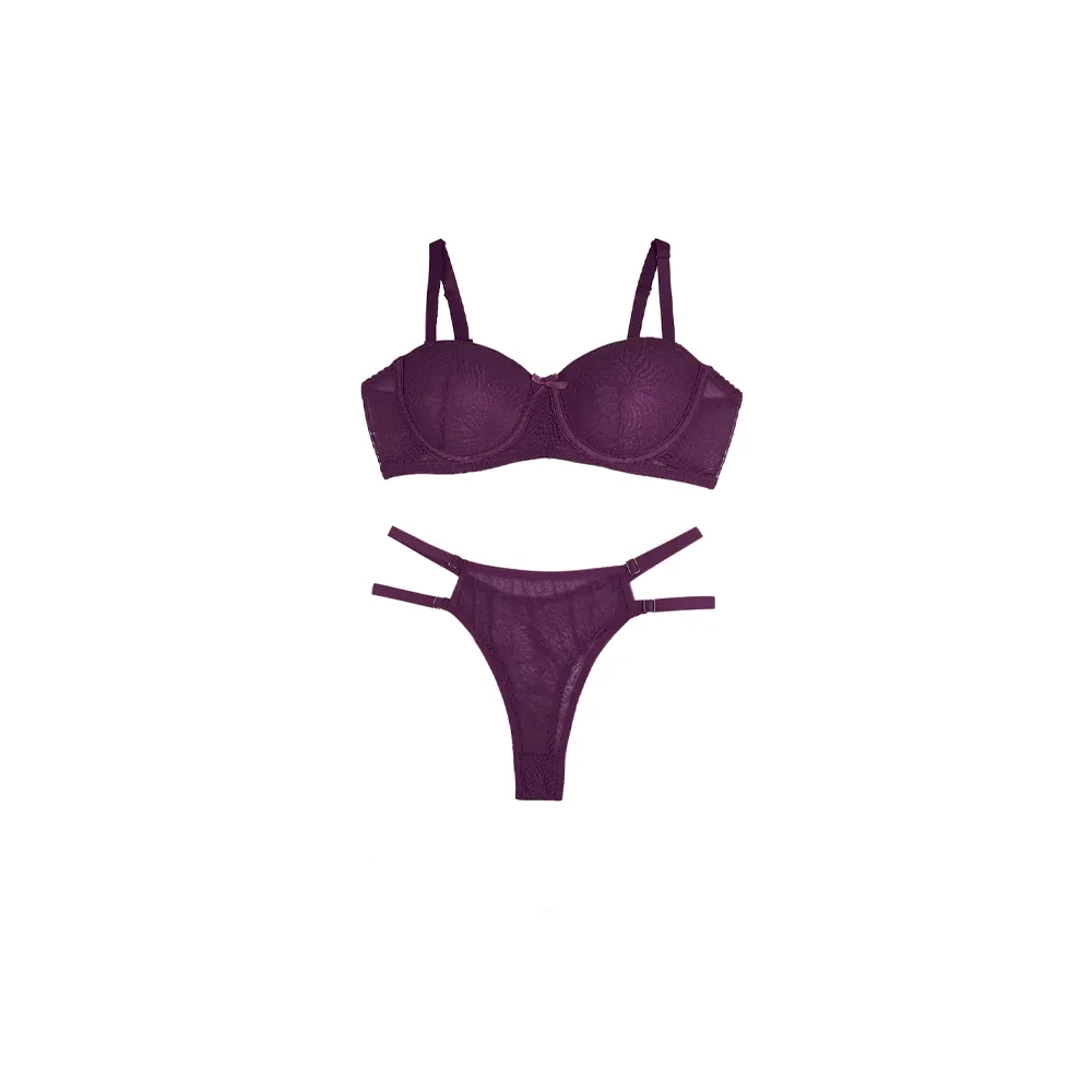 ## ست لباس زیر زنانه دانتل نیم جک اسفنجی فری سایز با شورت لامبادا
