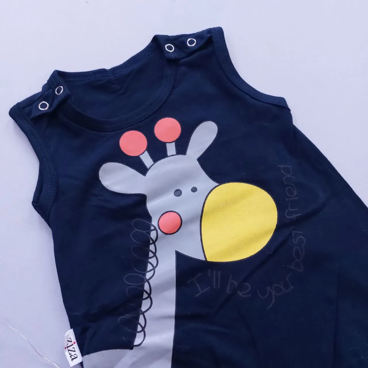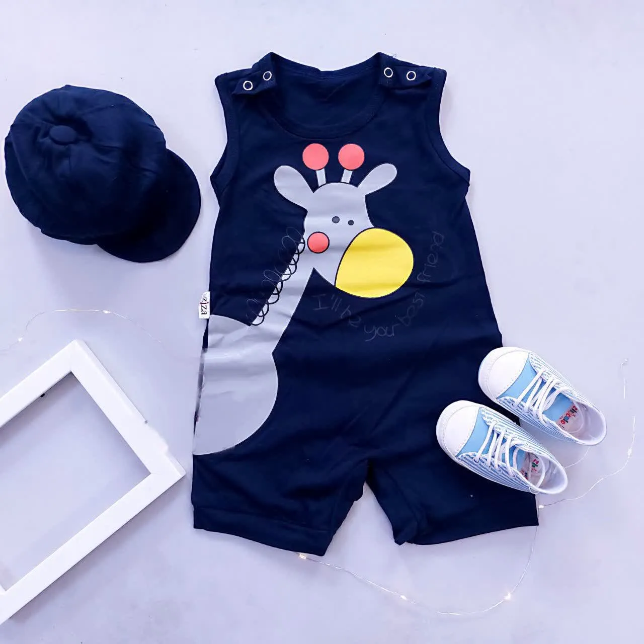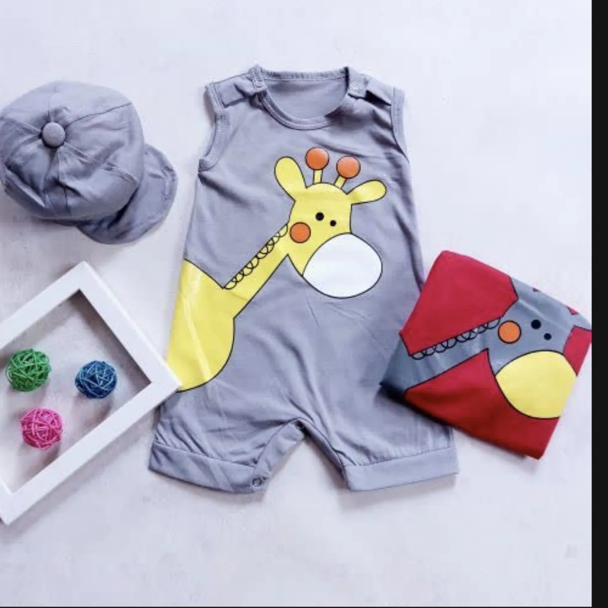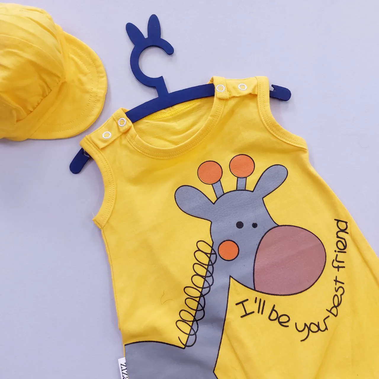 رامپر و کلاه نوزادی طرح زرافه جنس پنبه صد در صد سایز بندی 3 تا 12 ماه