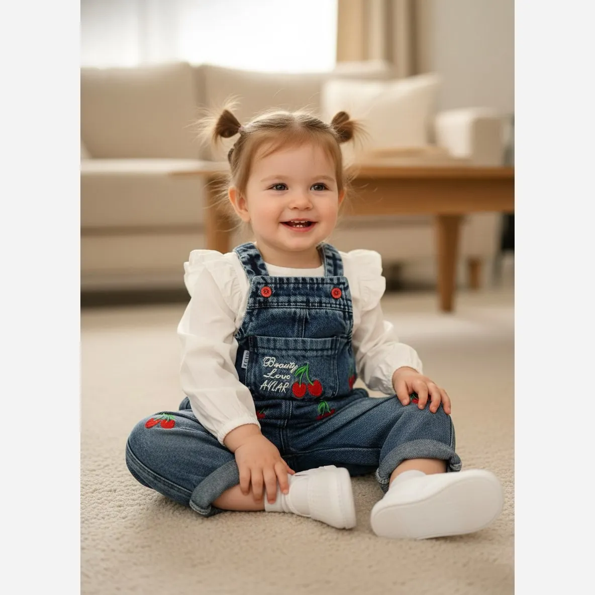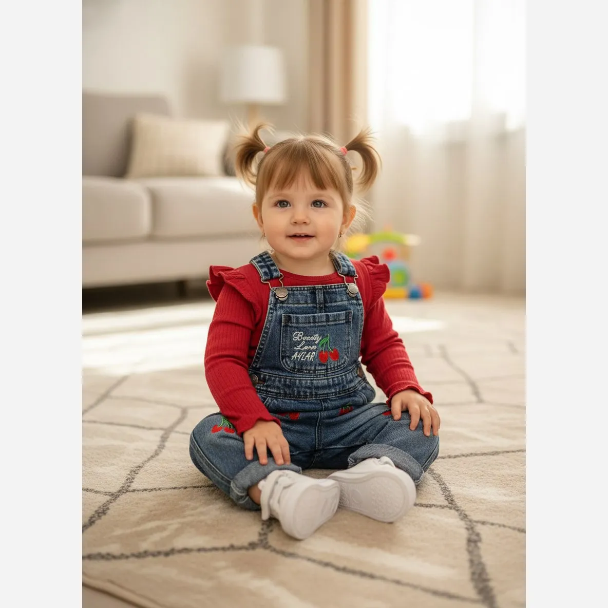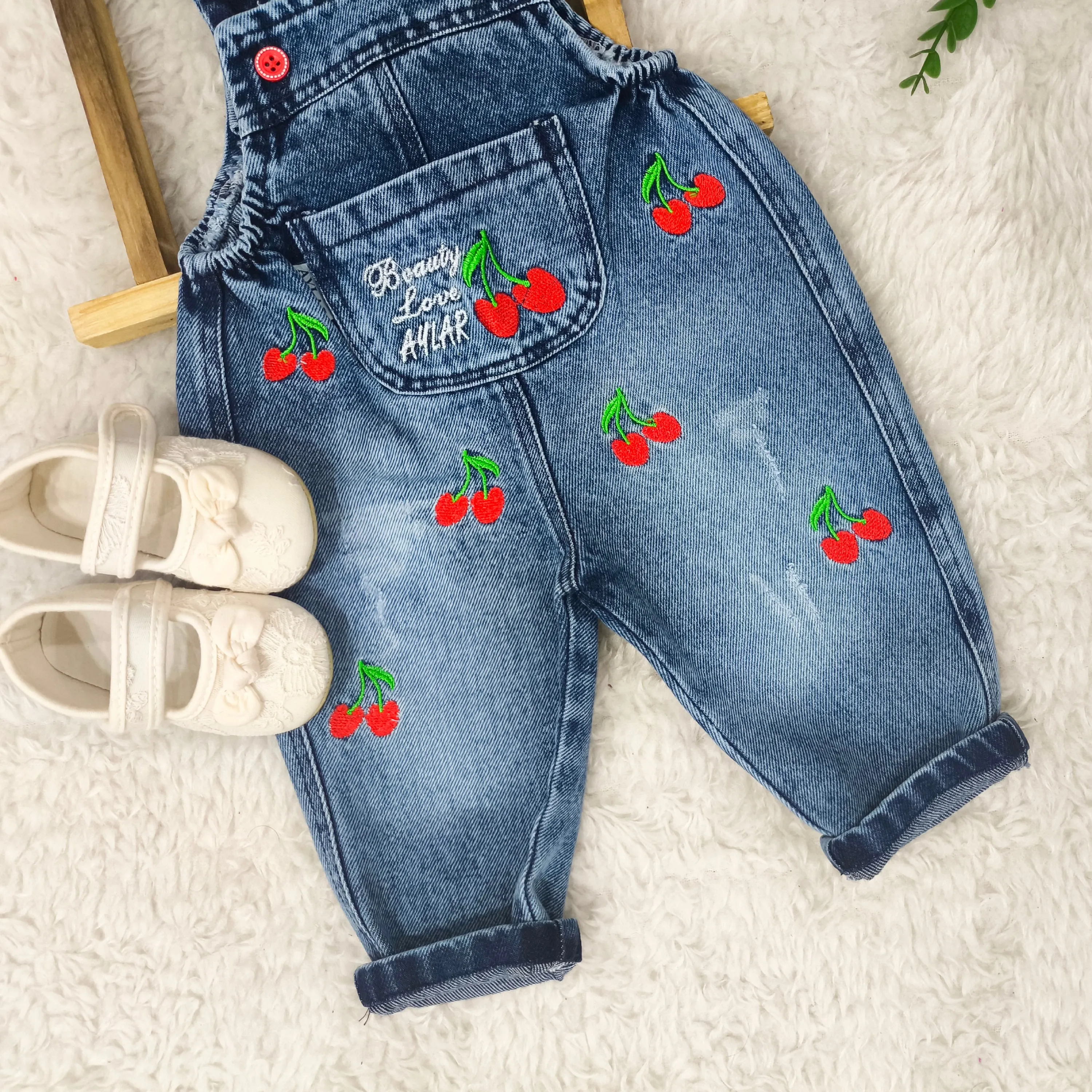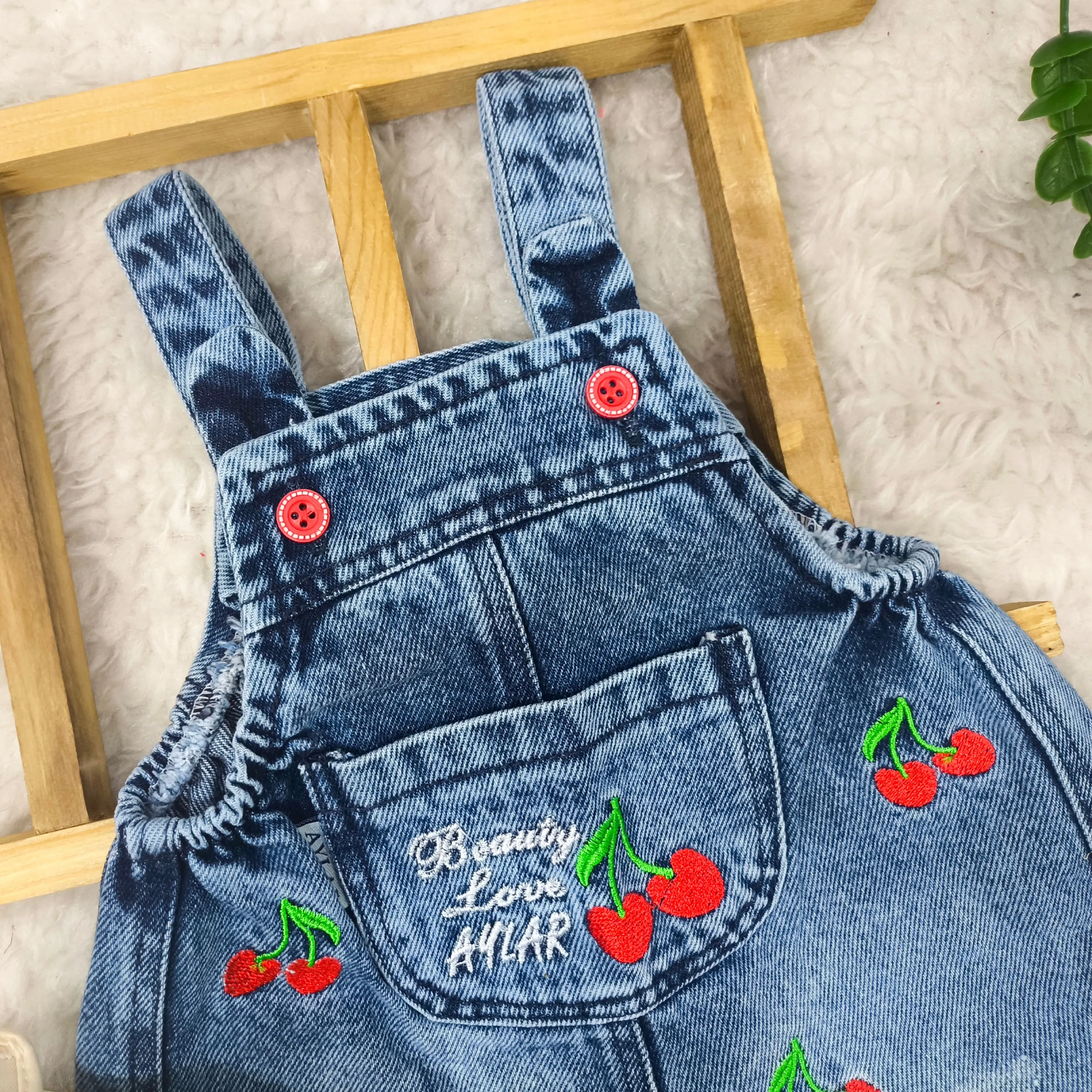 بیلر جین گلدوزی آلبالو نوزادی دخترانه عیدانه پیشبندی لی