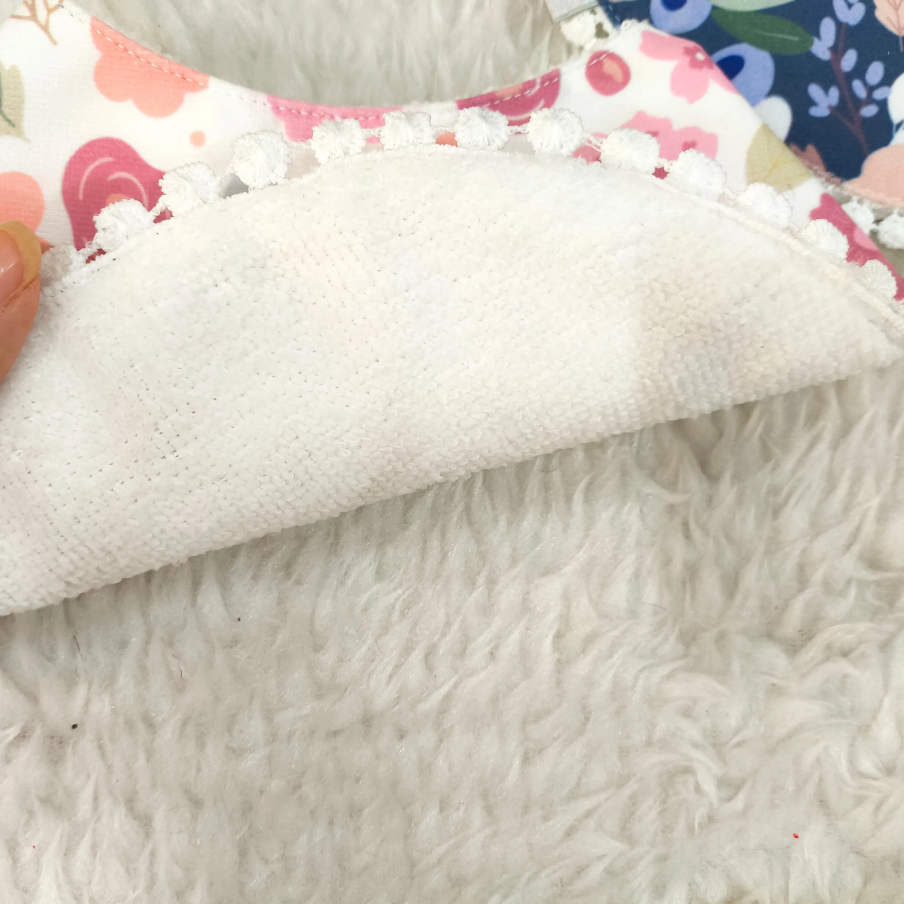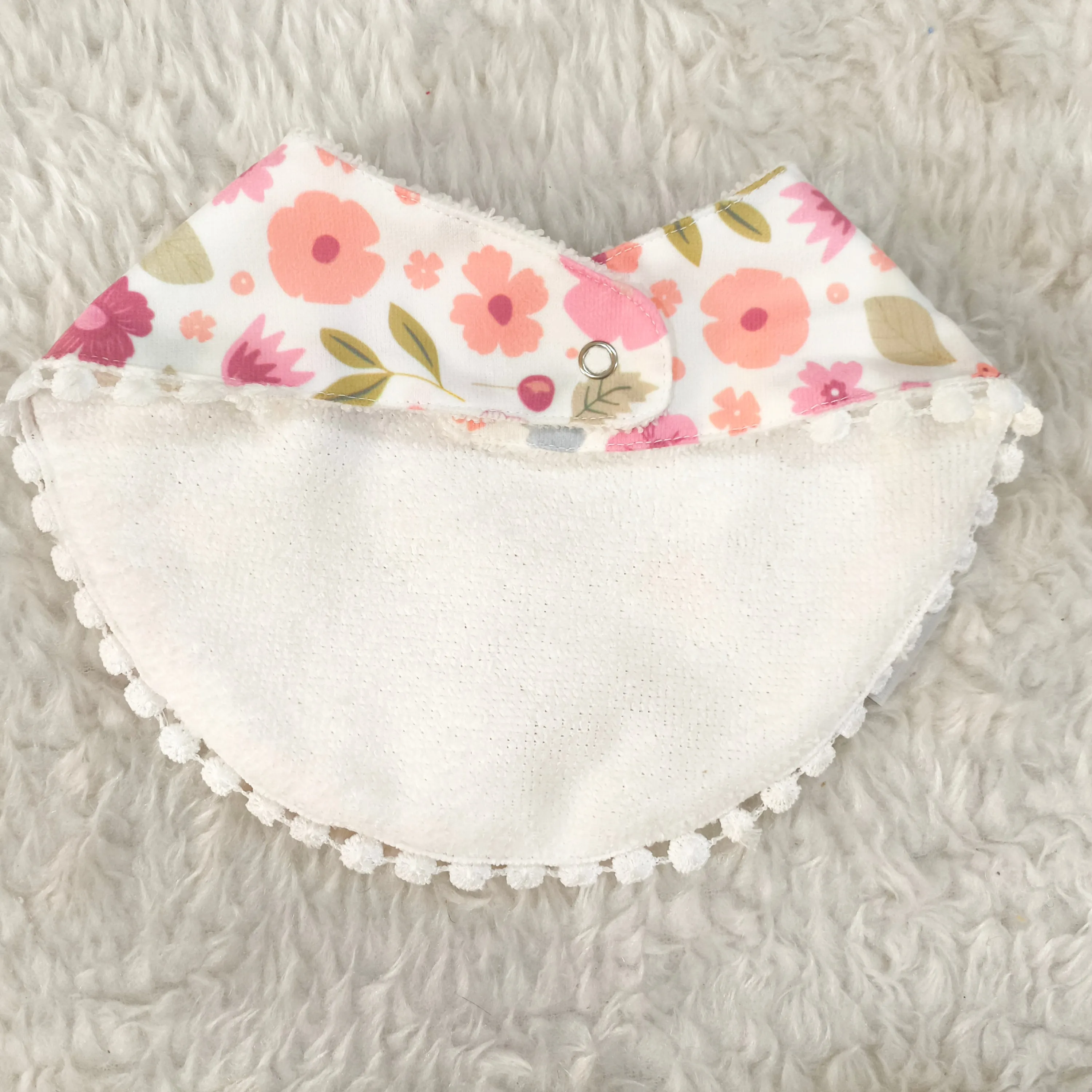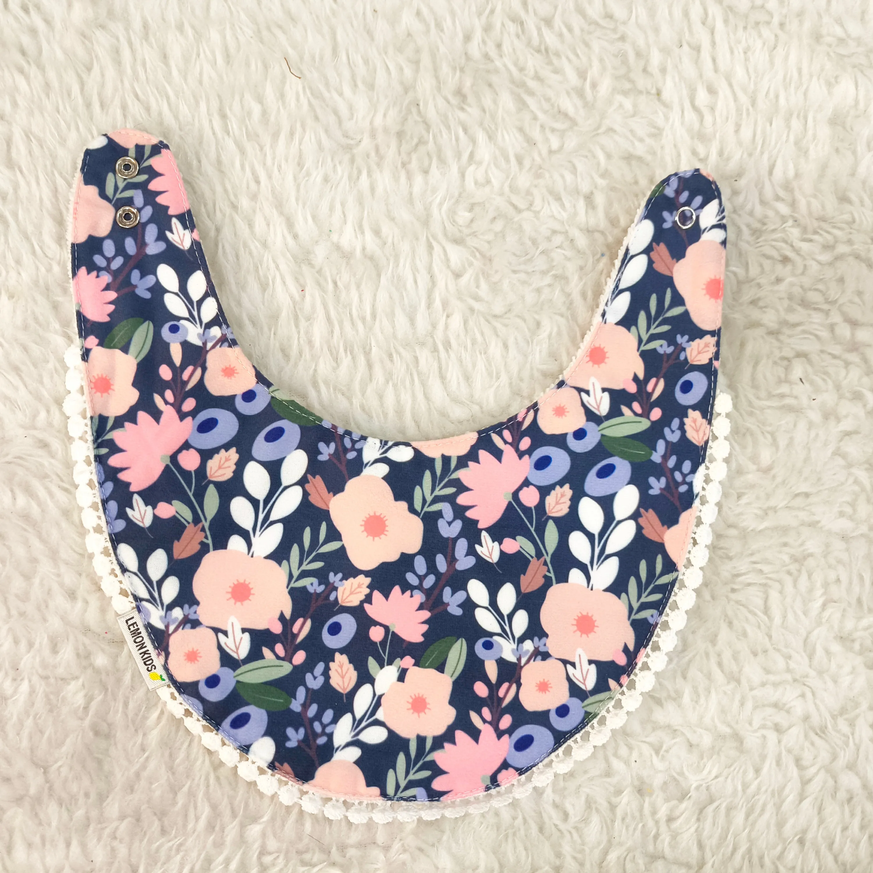 رویه پیشبند از نخ پنبه مرغوب ساخته شده که لطافت و سازگاری بالایی با پوست حساس نوزاد دارد. قسمت پشتی پیشبند از جنس حولهای نرم و جاذب است که به خوبی رطوبت را جذب کرده و از خیس شدن لباس کودک جلوگیری میکند.