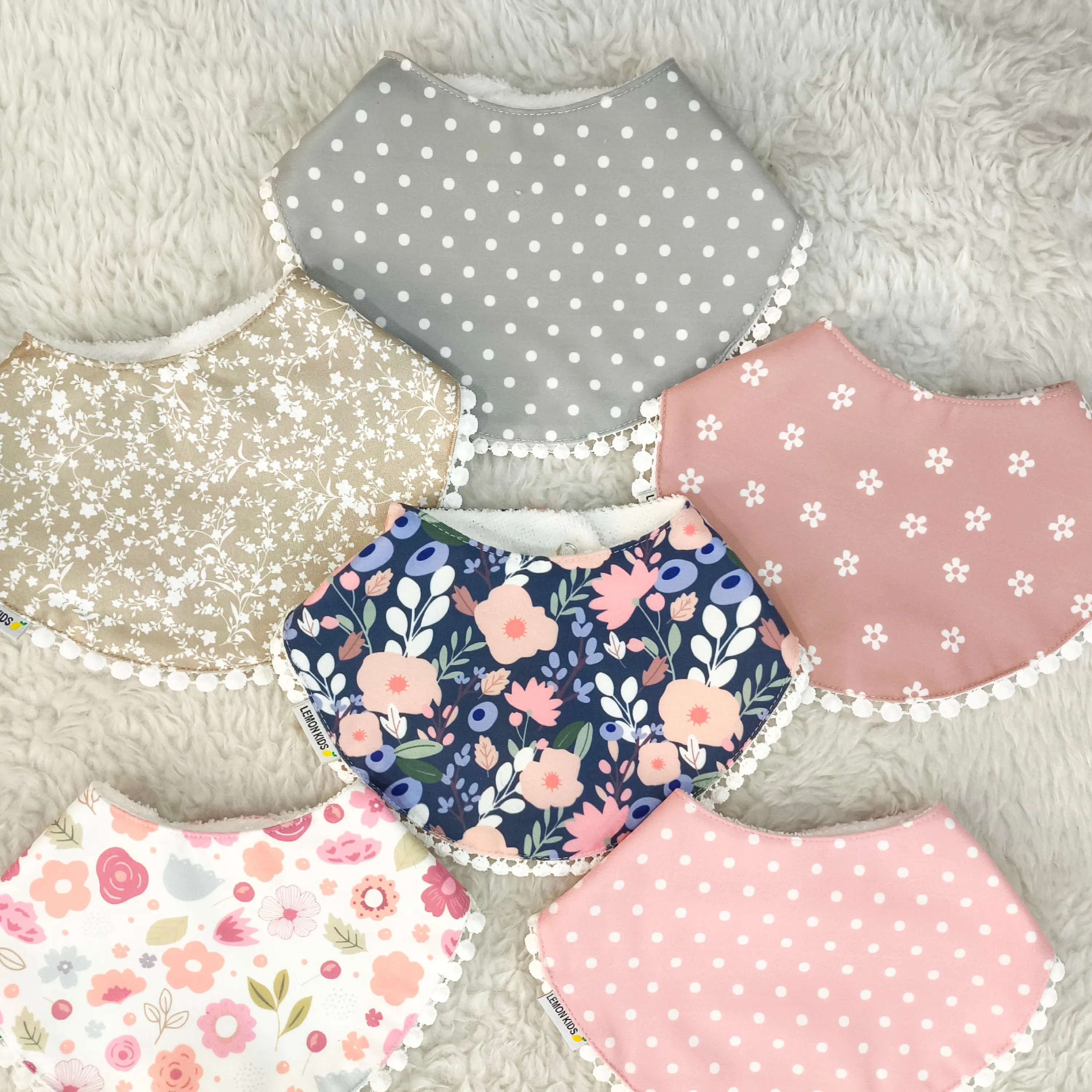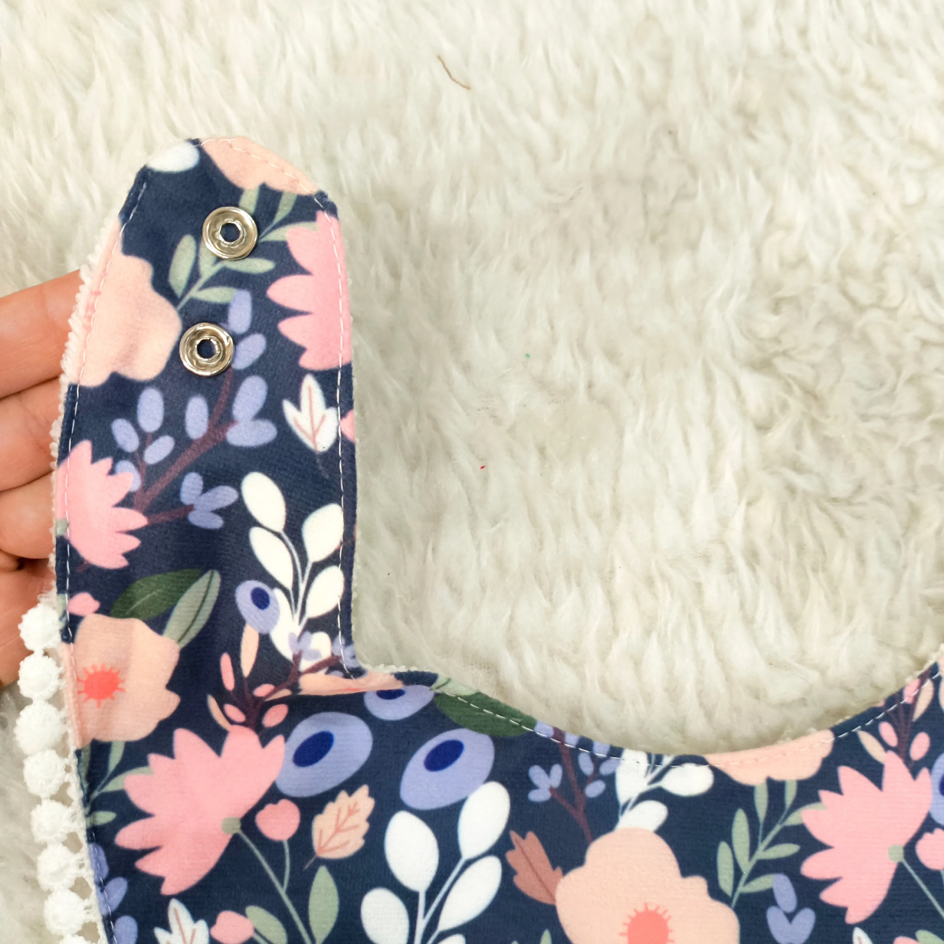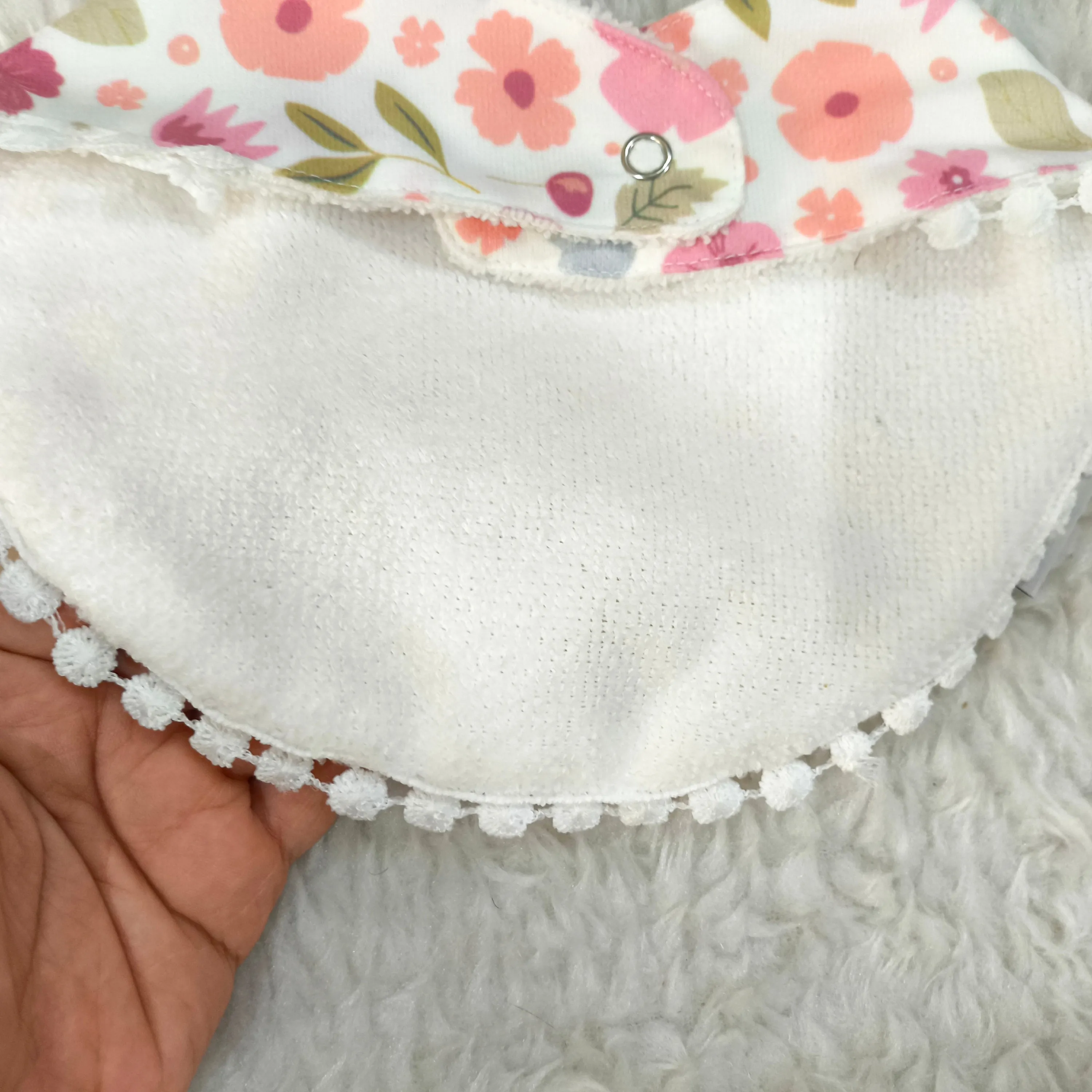 رویه پیشبند از نخ پنبه مرغوب ساخته شده که لطافت و سازگاری بالایی با پوست حساس نوزاد دارد. قسمت پشتی پیشبند از جنس حولهای نرم و جاذب است که به خوبی رطوبت را جذب کرده و از خیس شدن لباس کودک جلوگیری میکند.