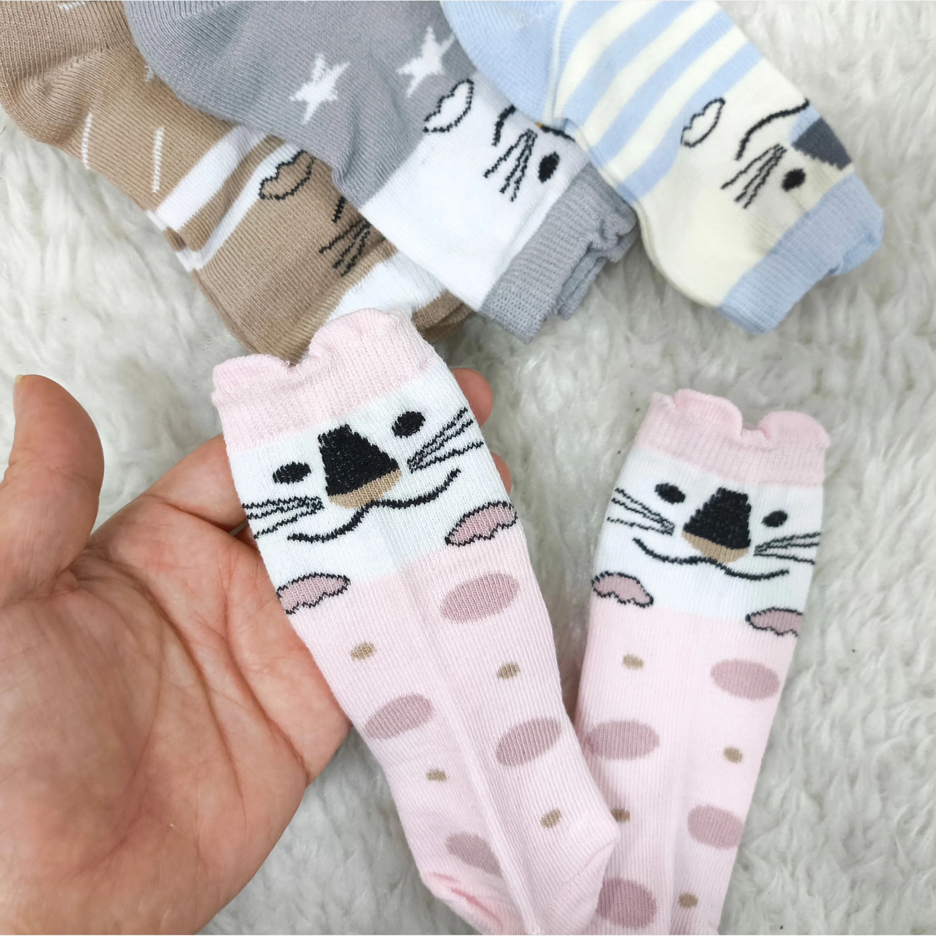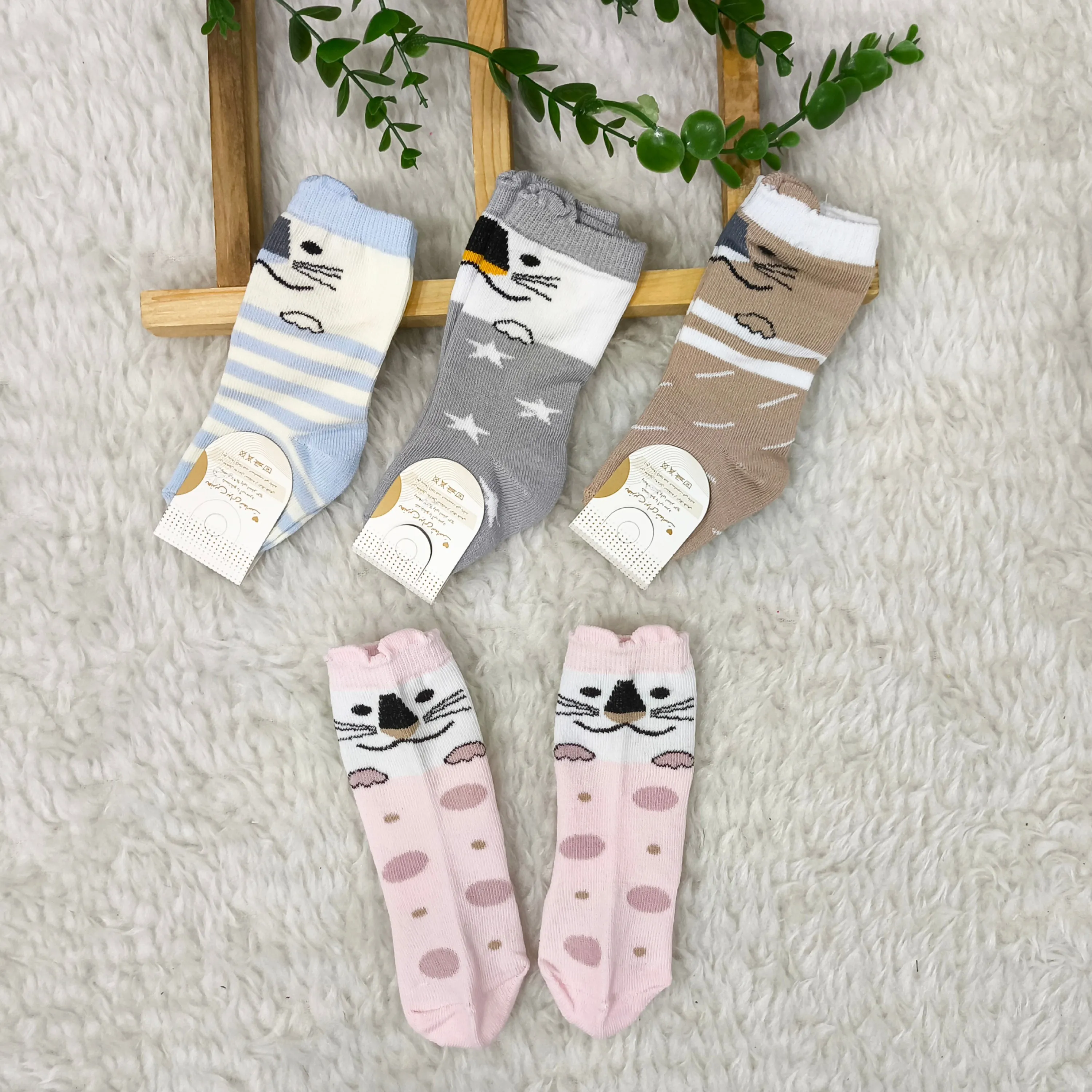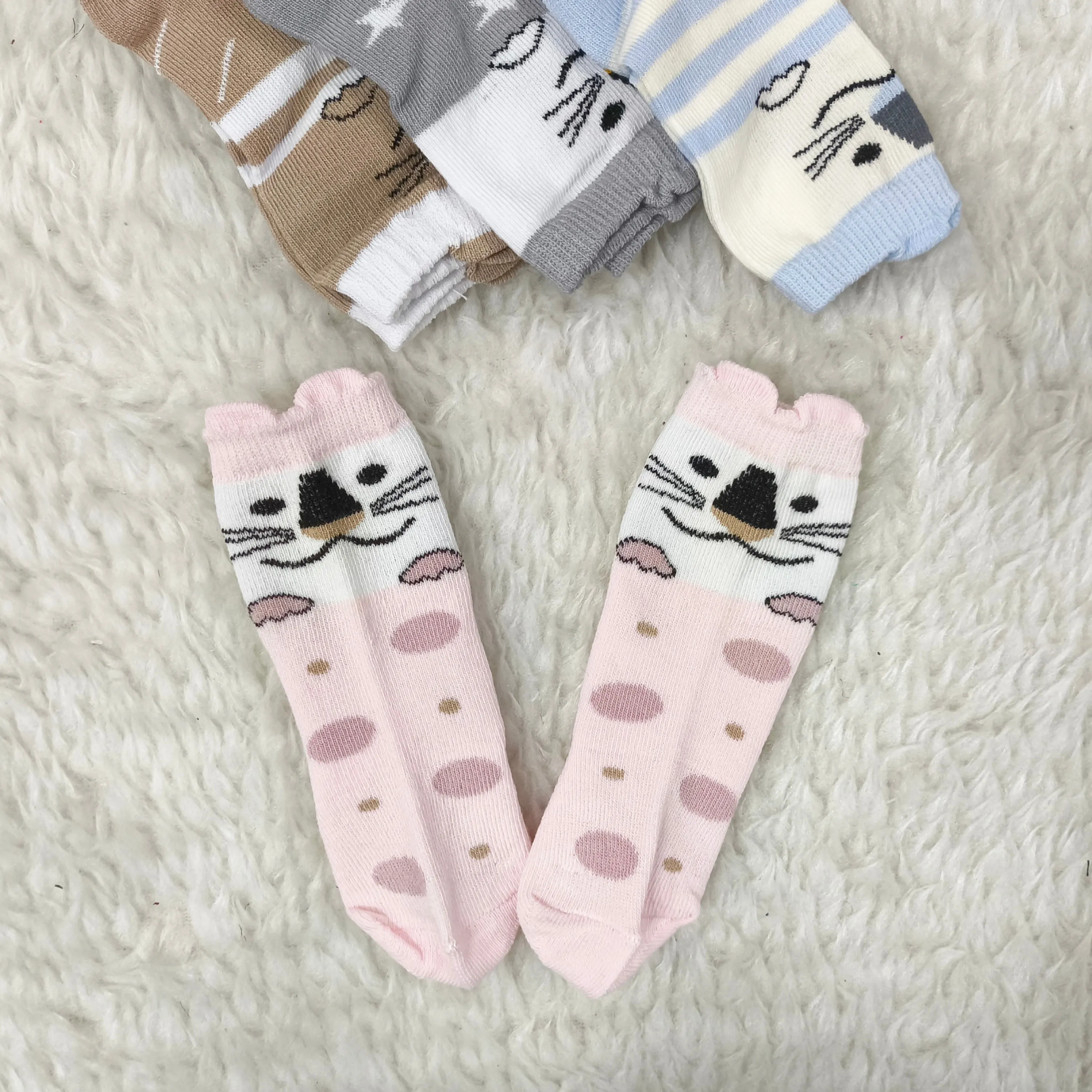 **جوراب ساق بلند گربه نوزادی: نرمی و لطافت پنبه برای پای دلبند شما (0 تا 6 ماه)**