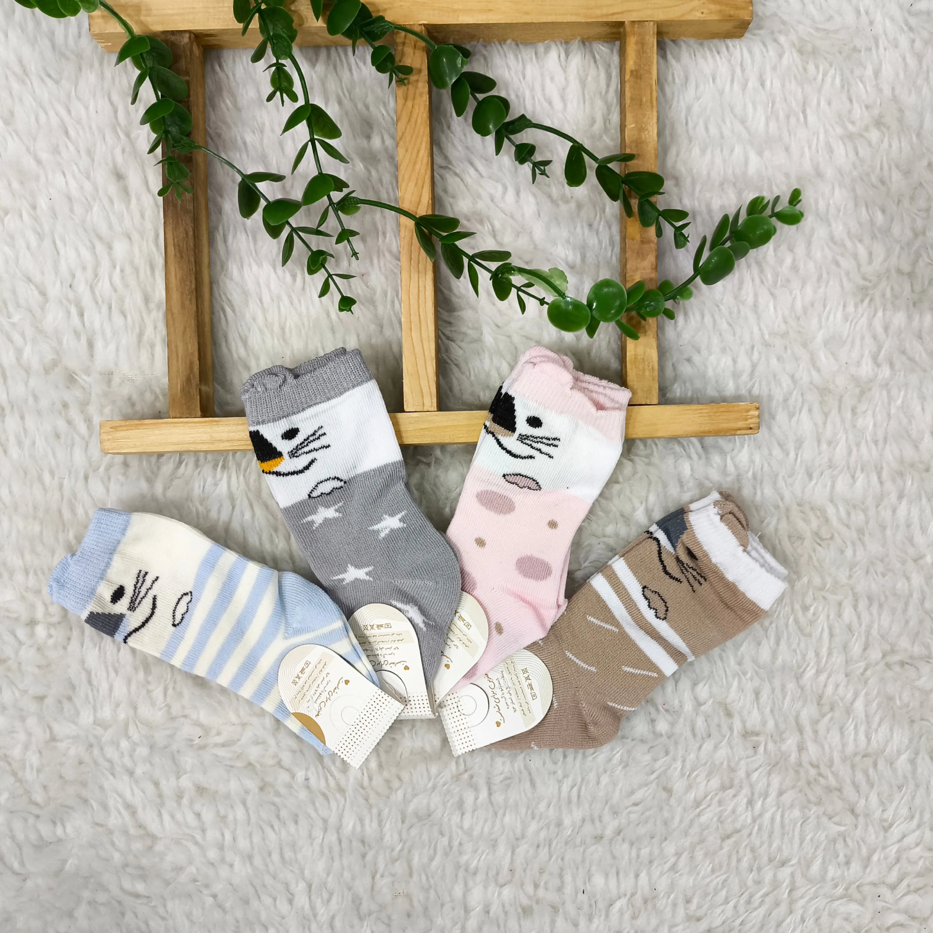 جوراب ساق بلند نوزاد طرح گربه | پنبه صد درصد | سایز 0 تا 6 ماه