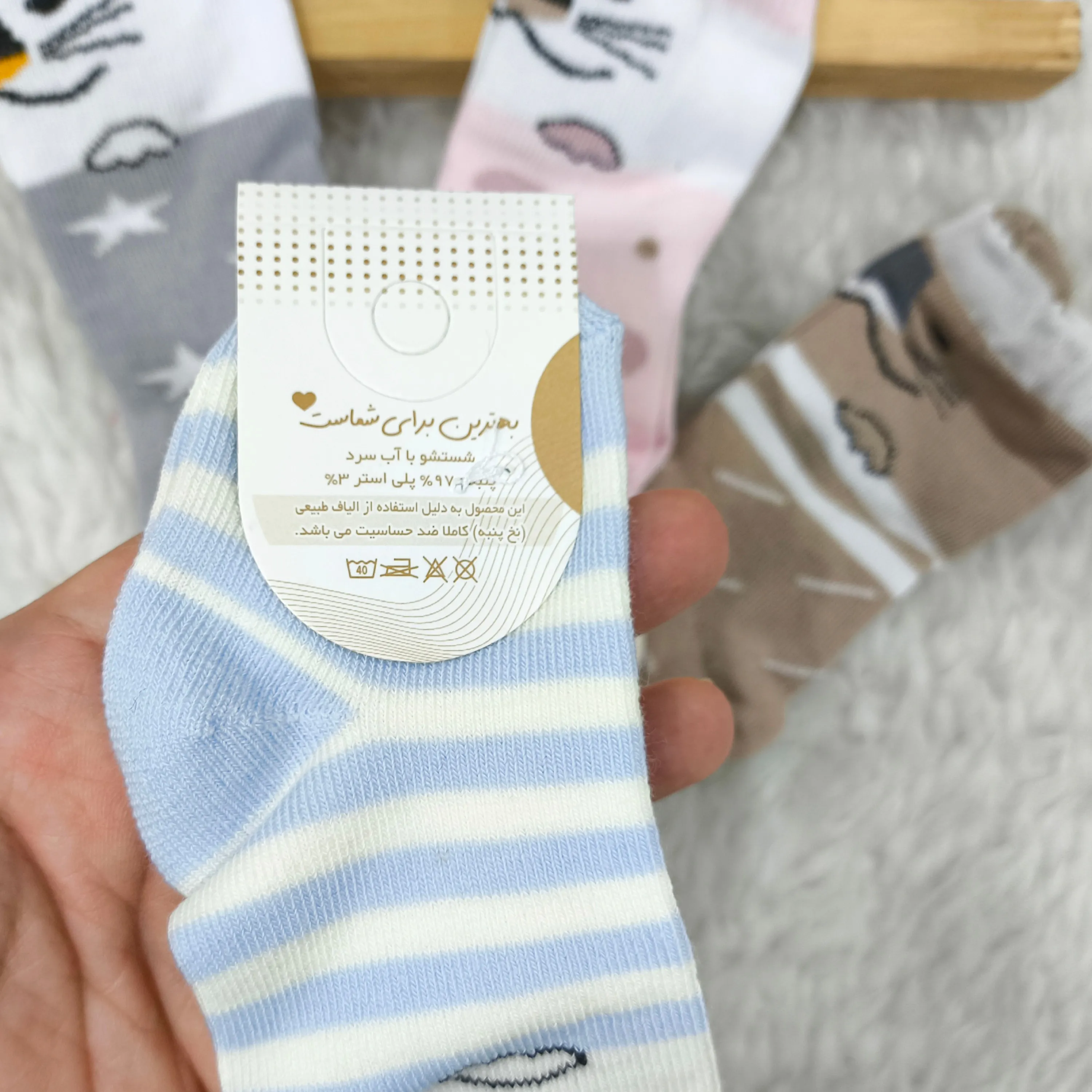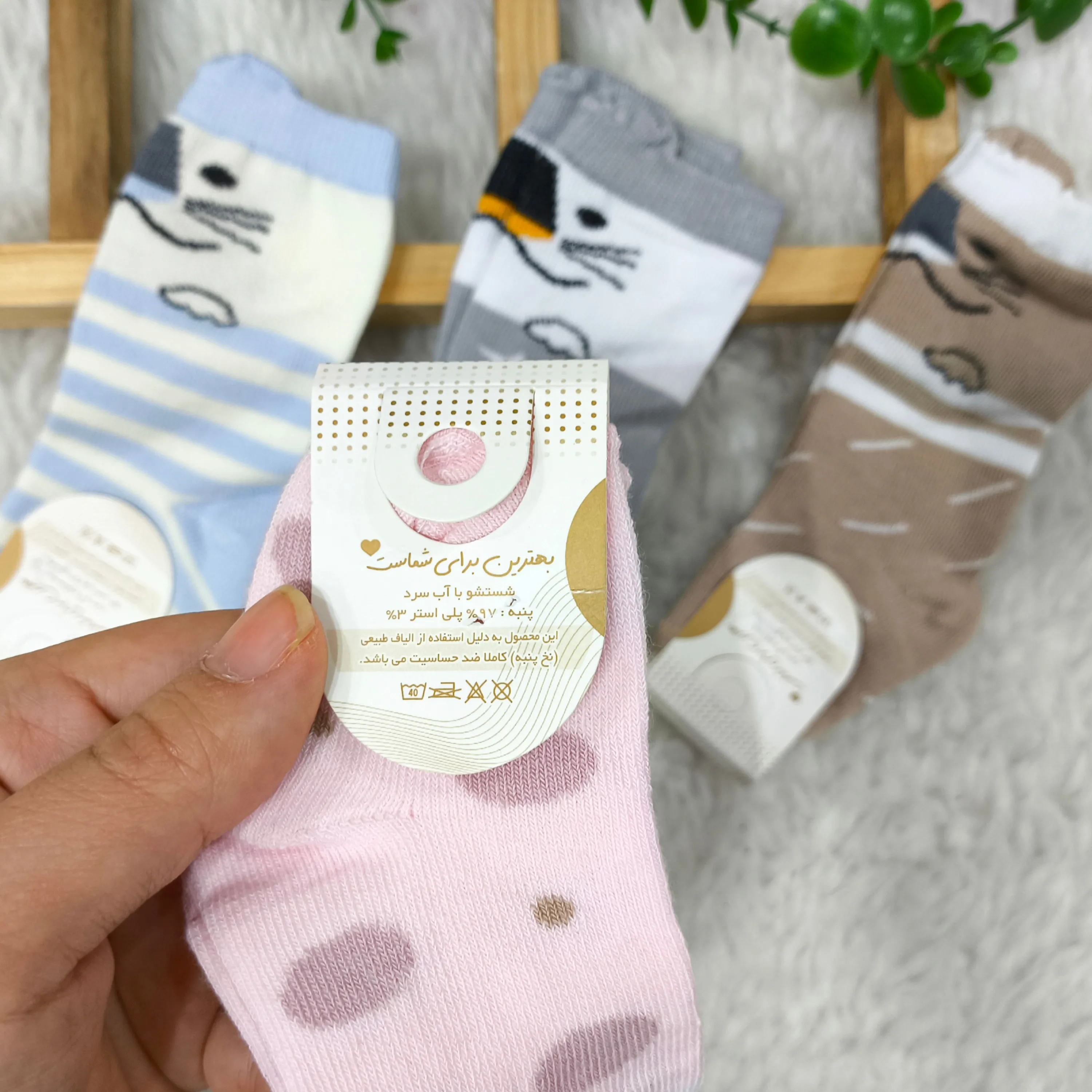 این جوراب ساق بلند نوزادی با طرح دوستداشتنی گربه، انتخابی ایدهآل برای راحتی و زیبایی پای دلبند شماست. جنس این جوراب از پنبه صد در صد خالص تهیه شده است که لطافت و نرمی بینظیری را برای پوست حساس نوزاد شما به ارمغان میآورد و از ایجاد هرگونه حساسیت جلوگیری میکند.