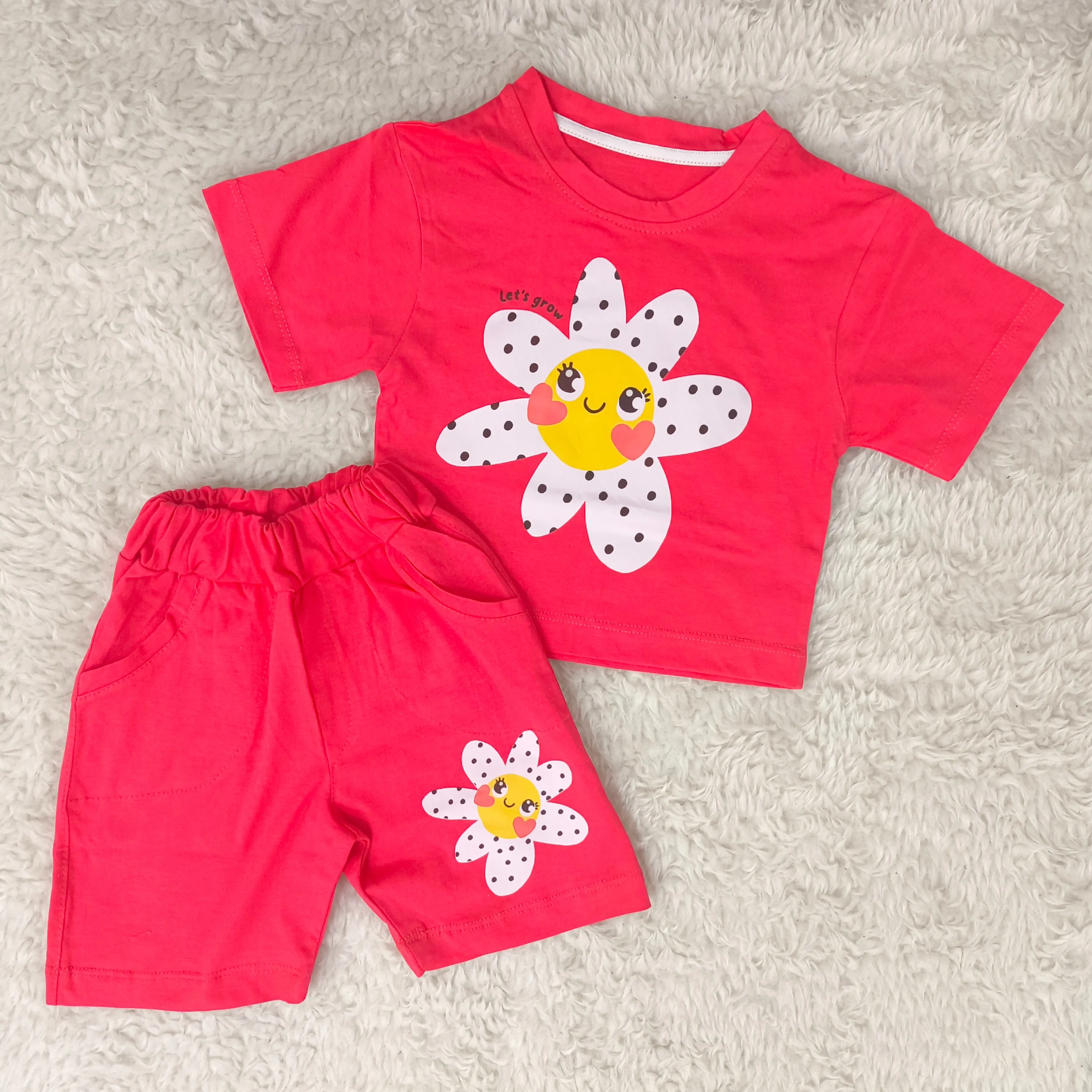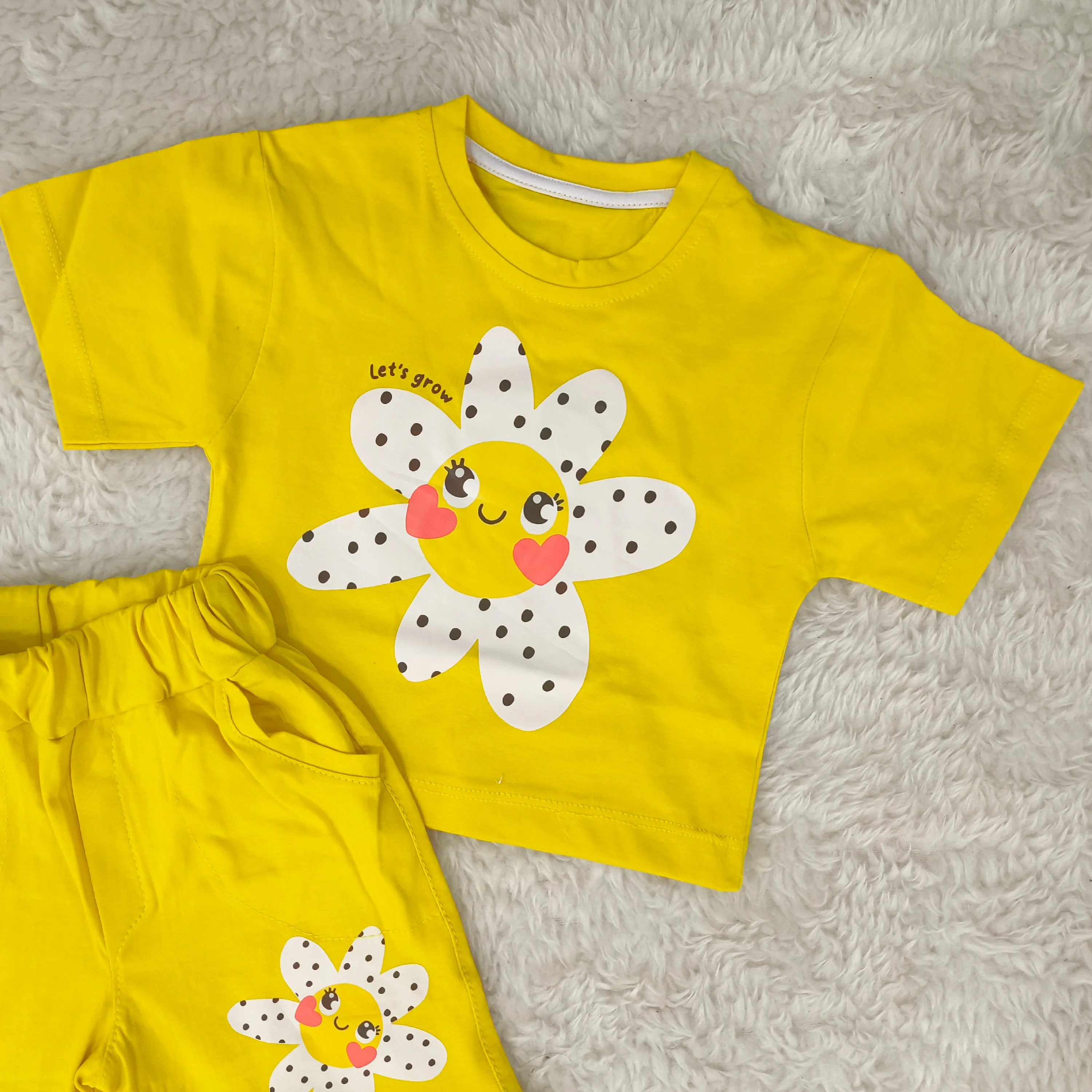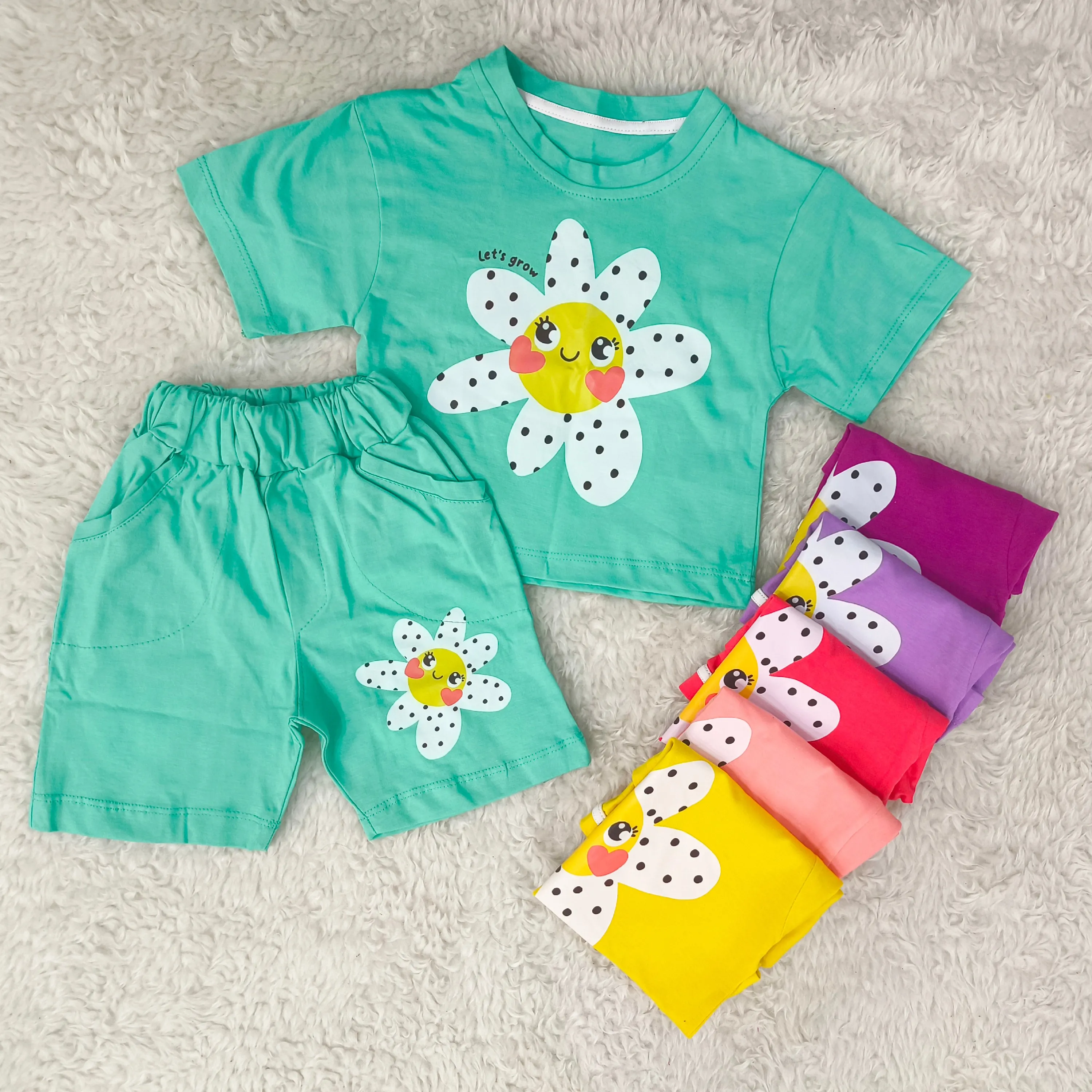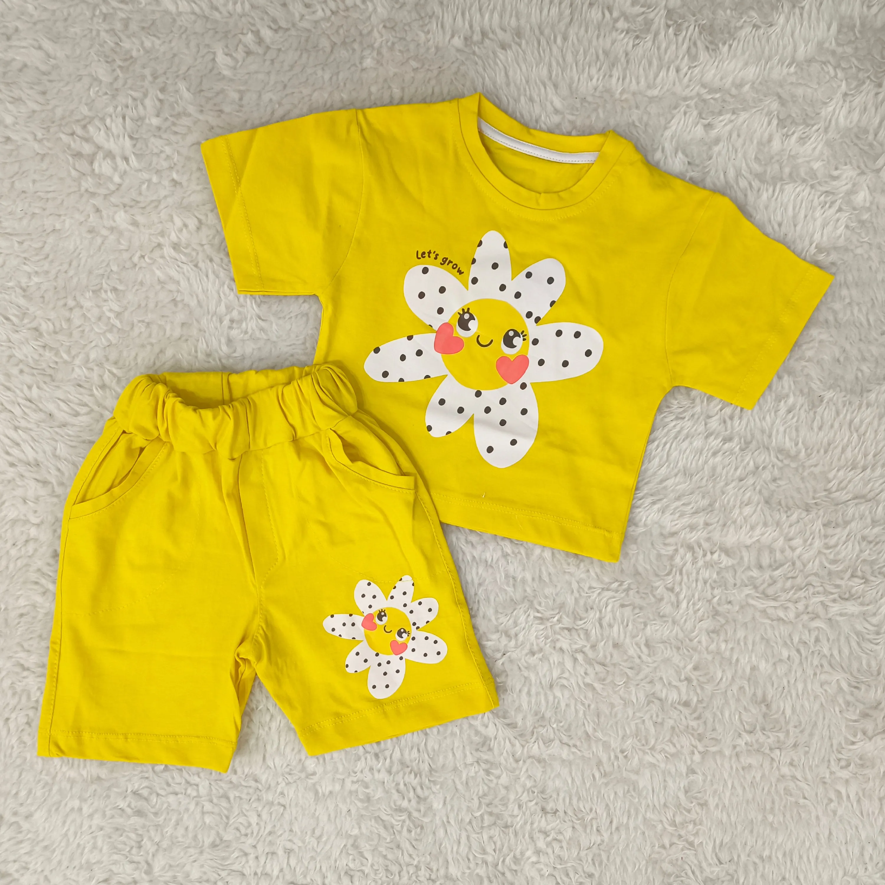 تیشرت و شورتک بچگانه طرح بابونه خندان | جنس پنبه سوپر | سایز بندی 35 و 40