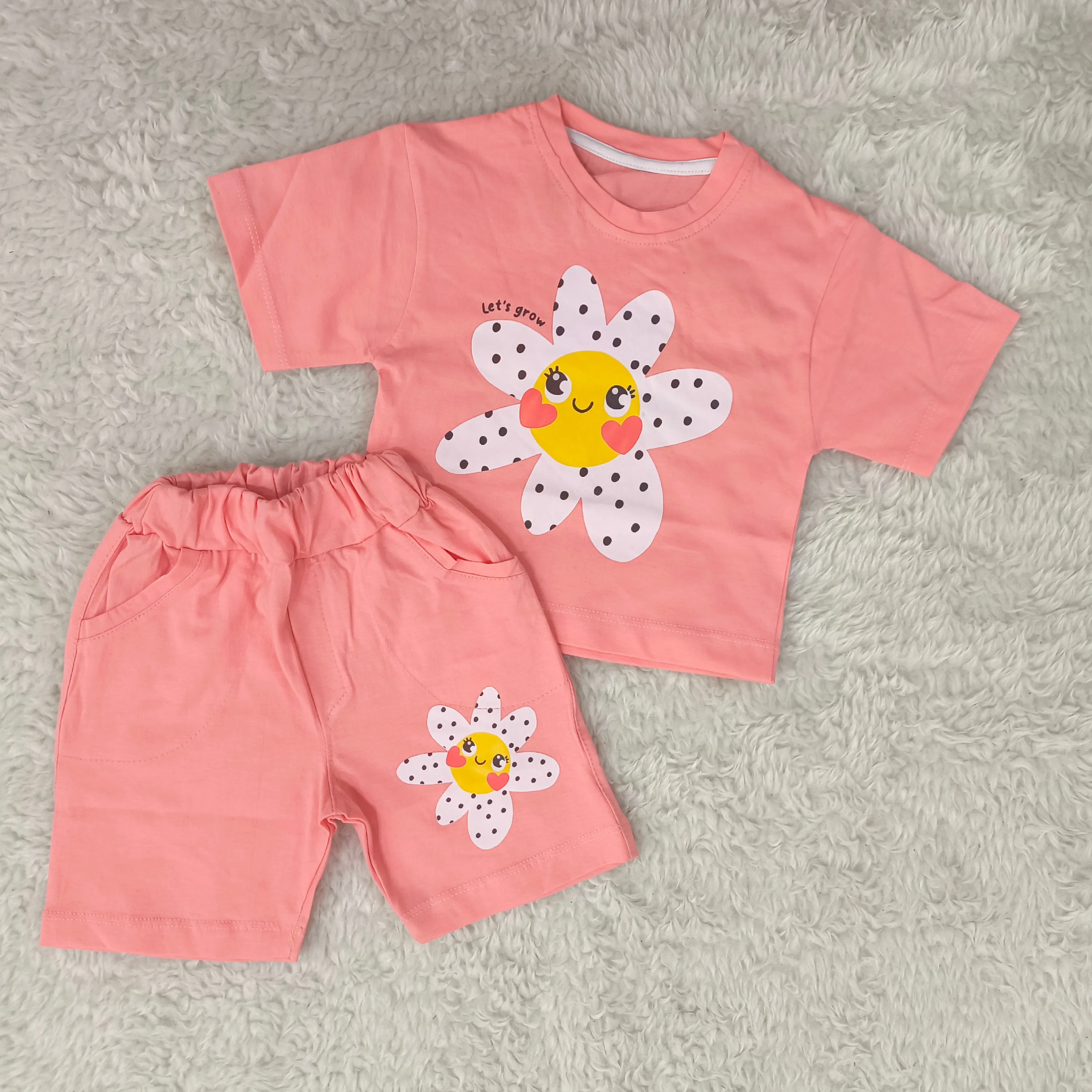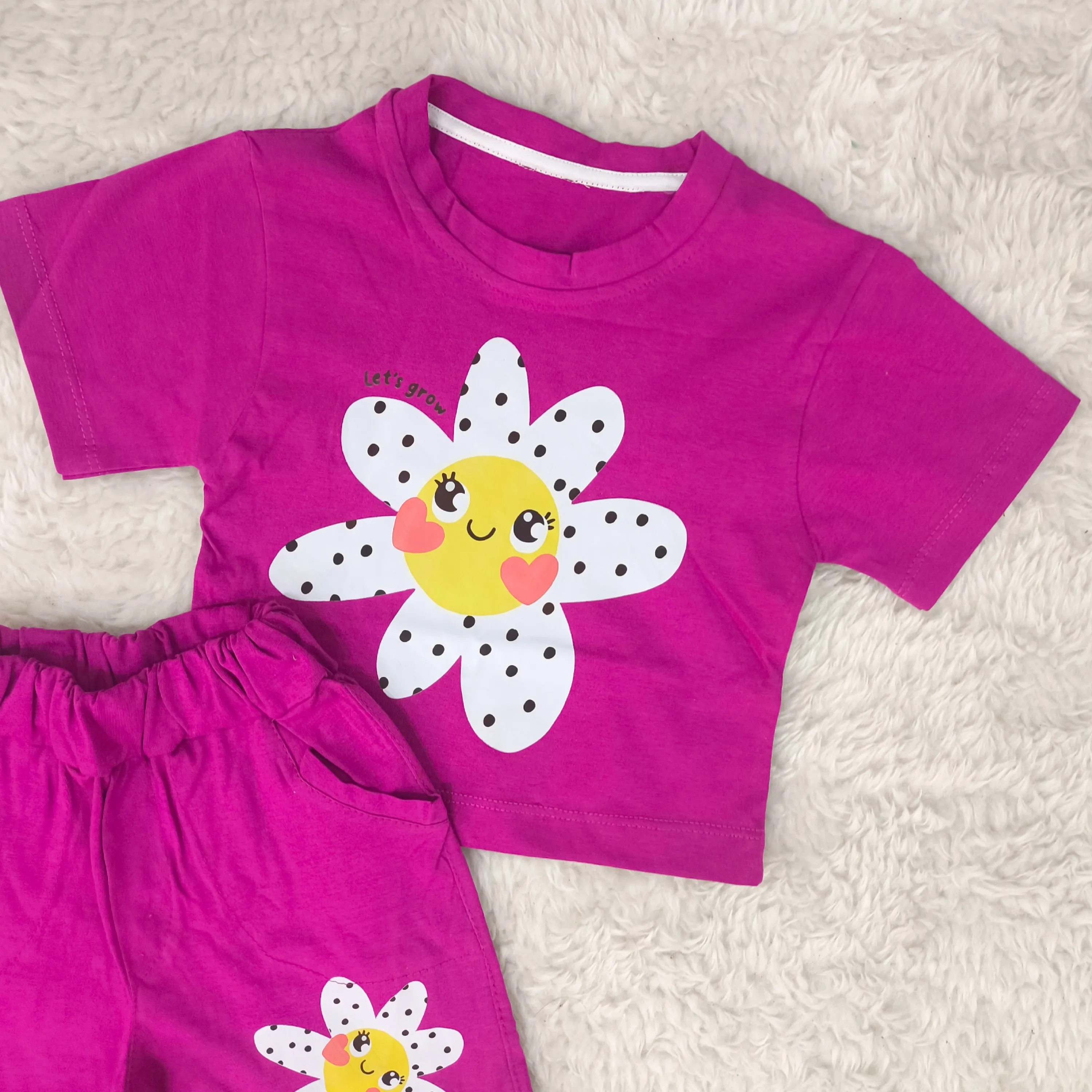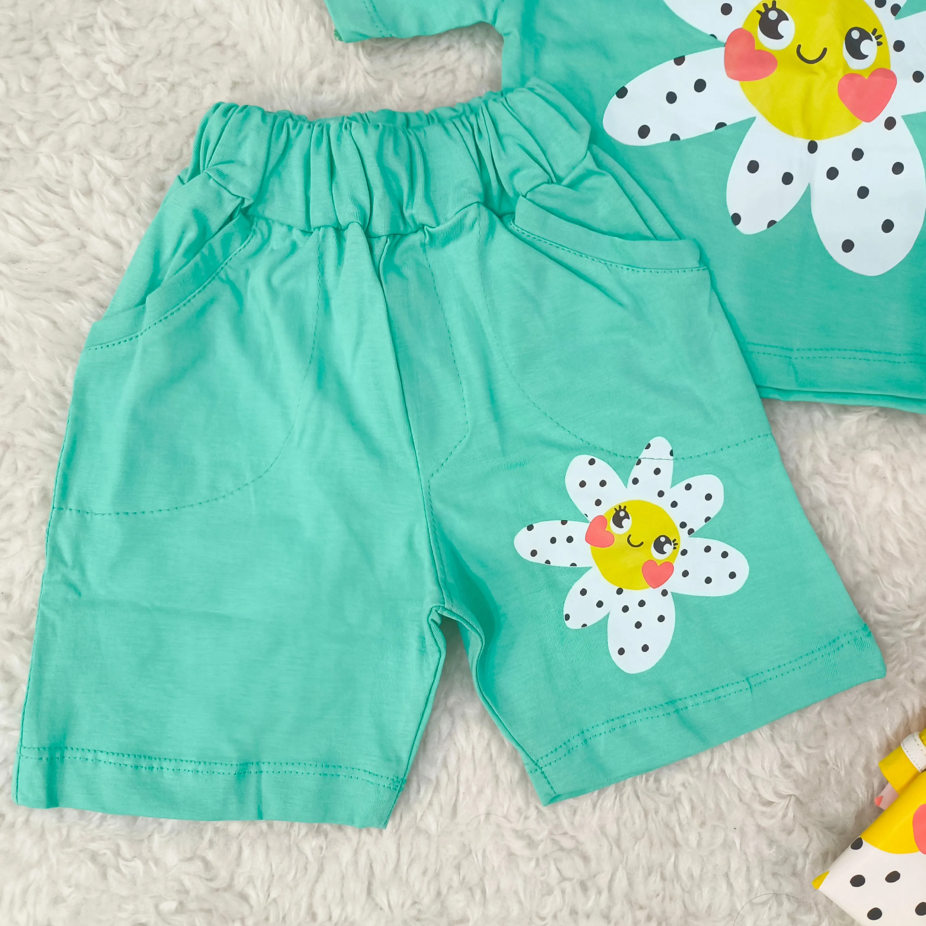 تیشرت و شورتک بچگانه طرح بابونه خندان | جنس پنبه سوپر | سایز بندی 35 و 40