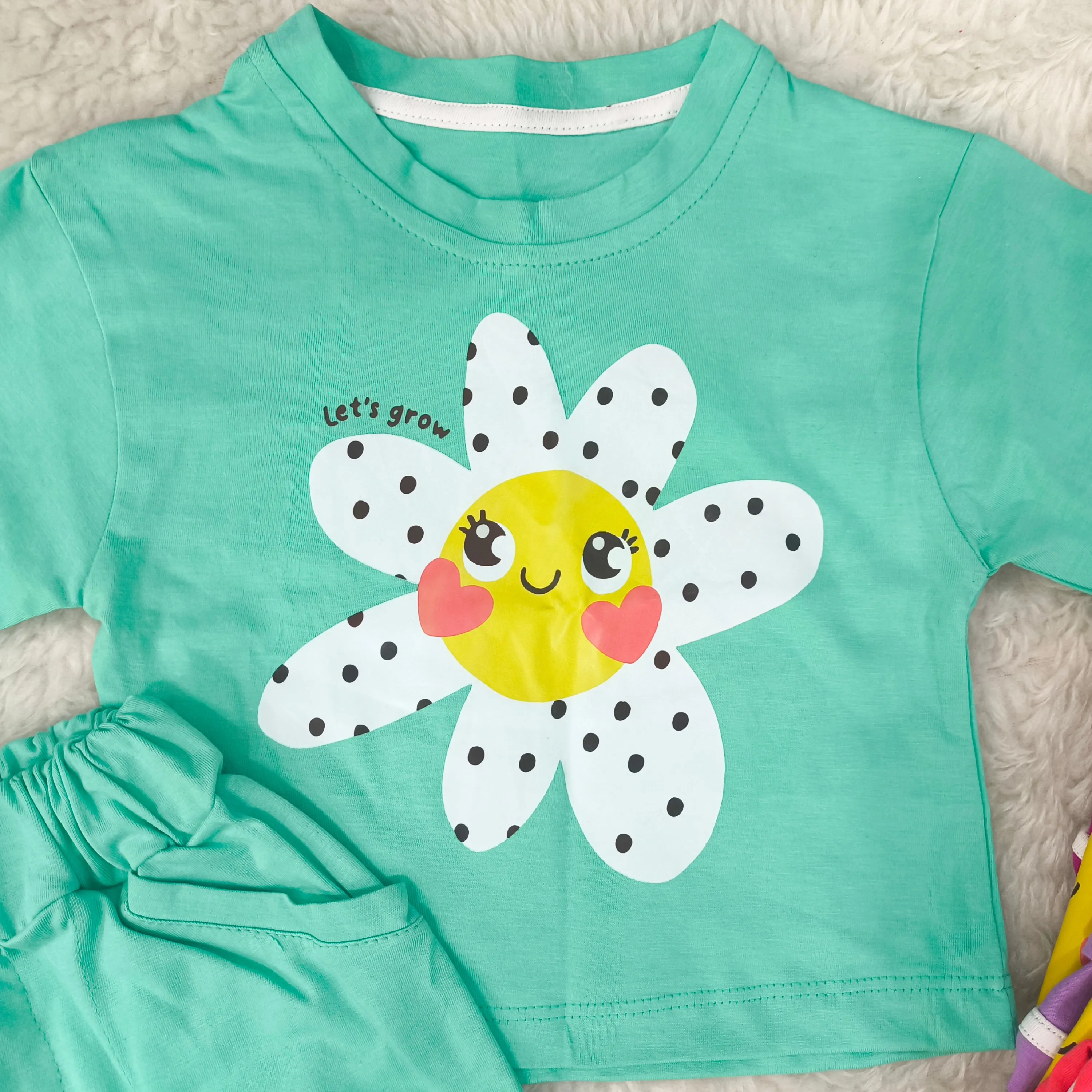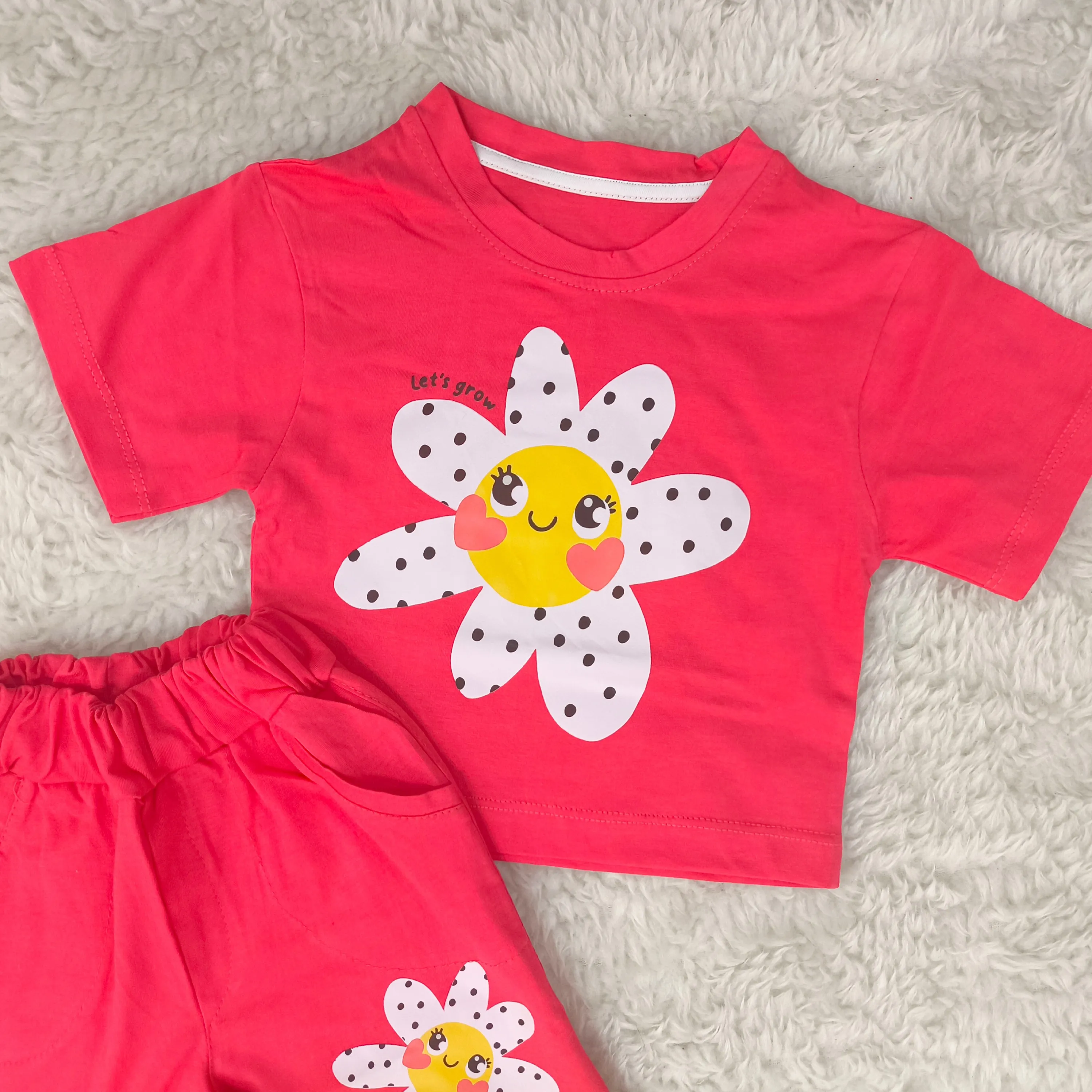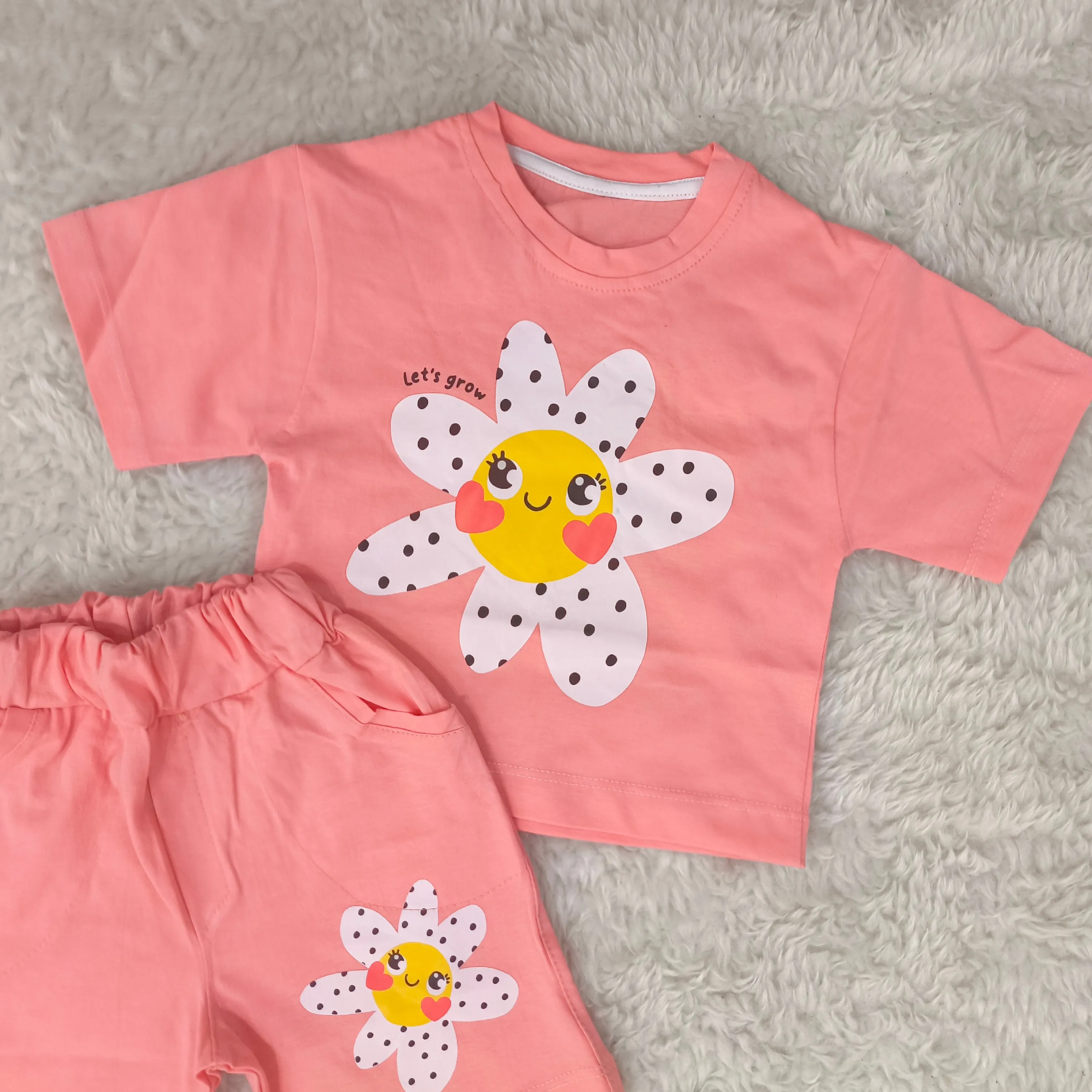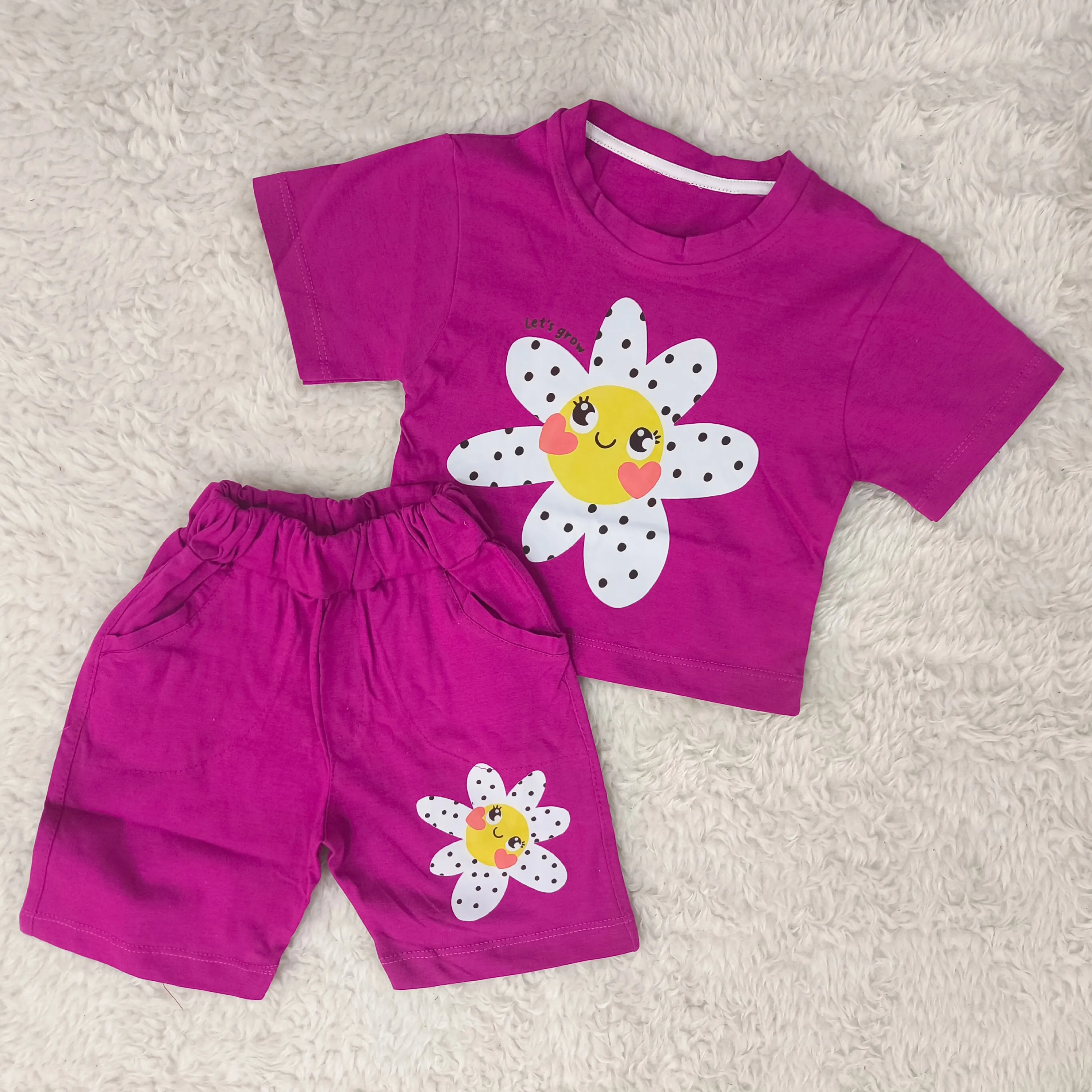 تیشرت و شورتک بچگانه طرح بابونه خندان | جنس پنبه سوپر | سایز بندی 35 و 40