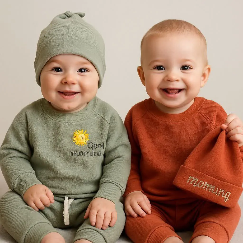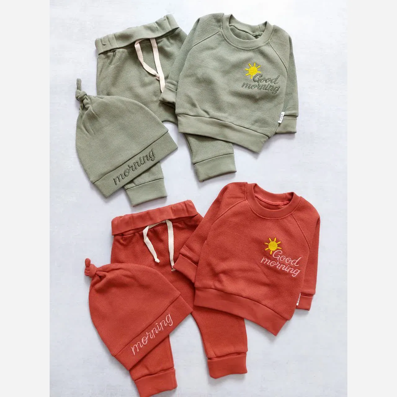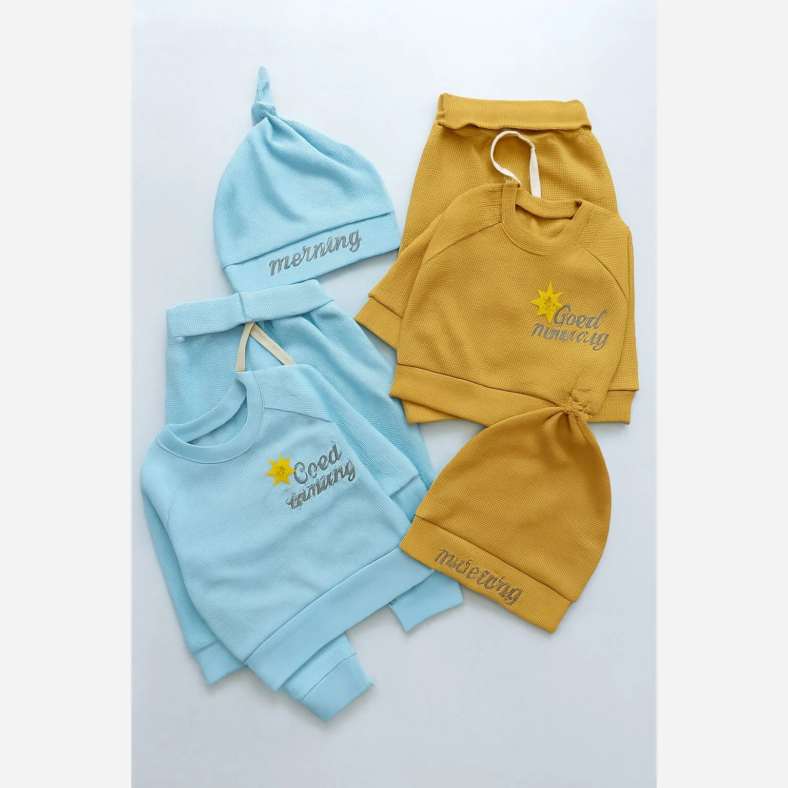**ست بلوز، شلوار و کلاه نوزادی طرح Good Morning: لطافت و زیبایی برای دلبند شما**