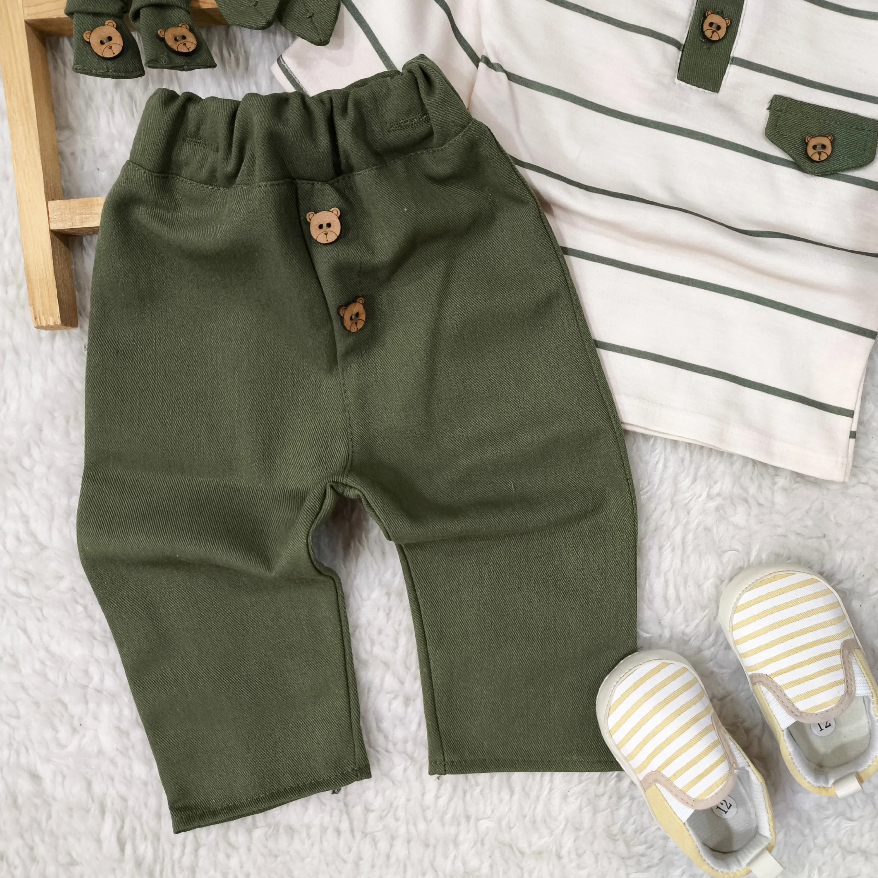 بلوز شلوار مجلسی پسرانه تریکو و کتان پنبه، سایز بدو تولد تا سه سال و نیم