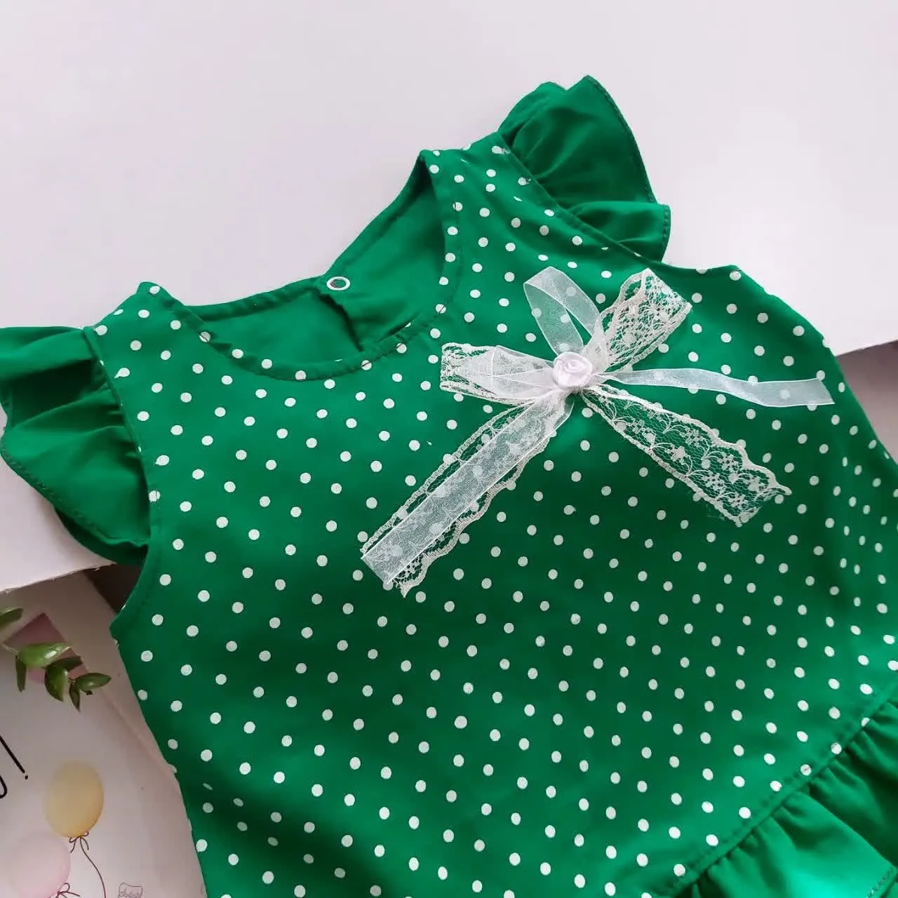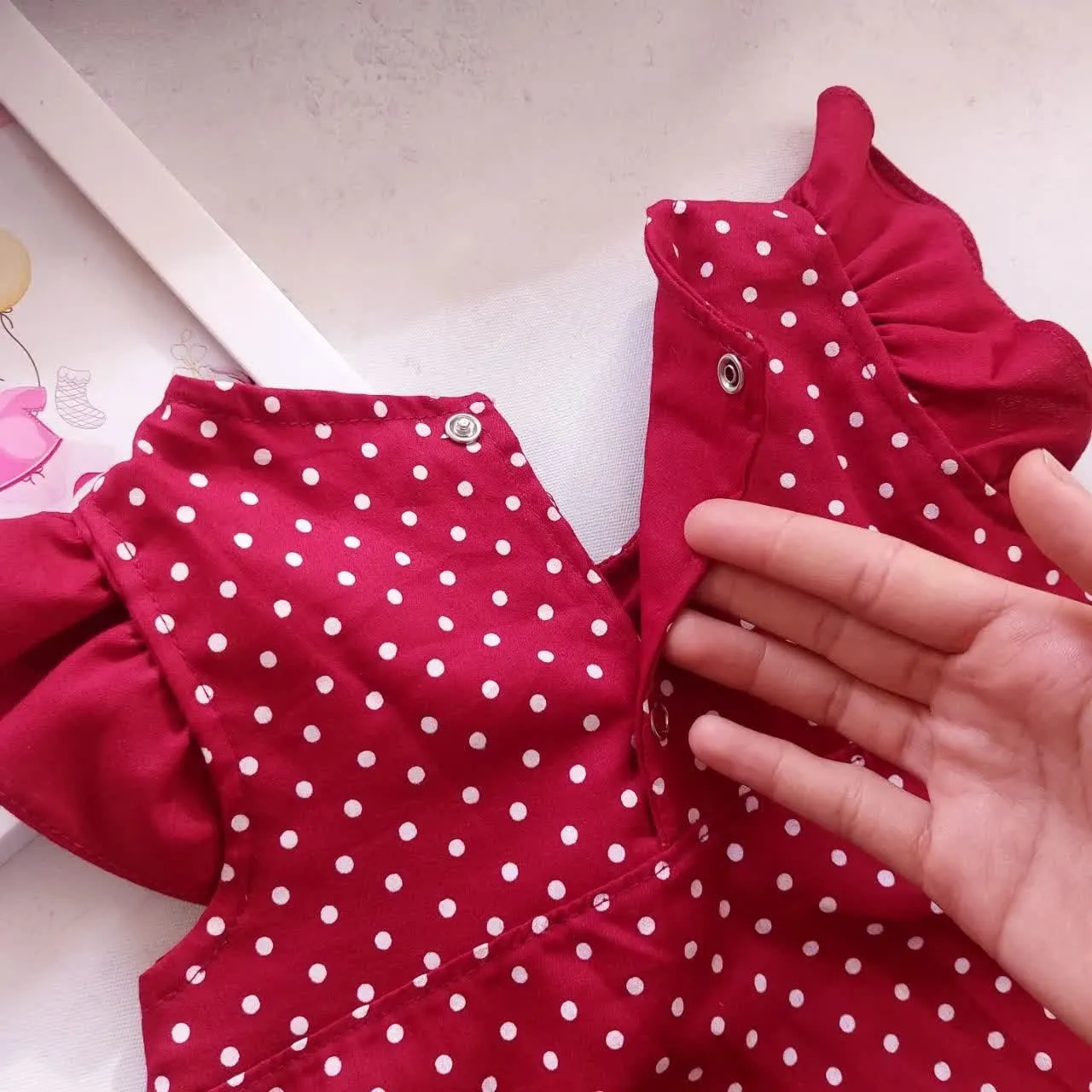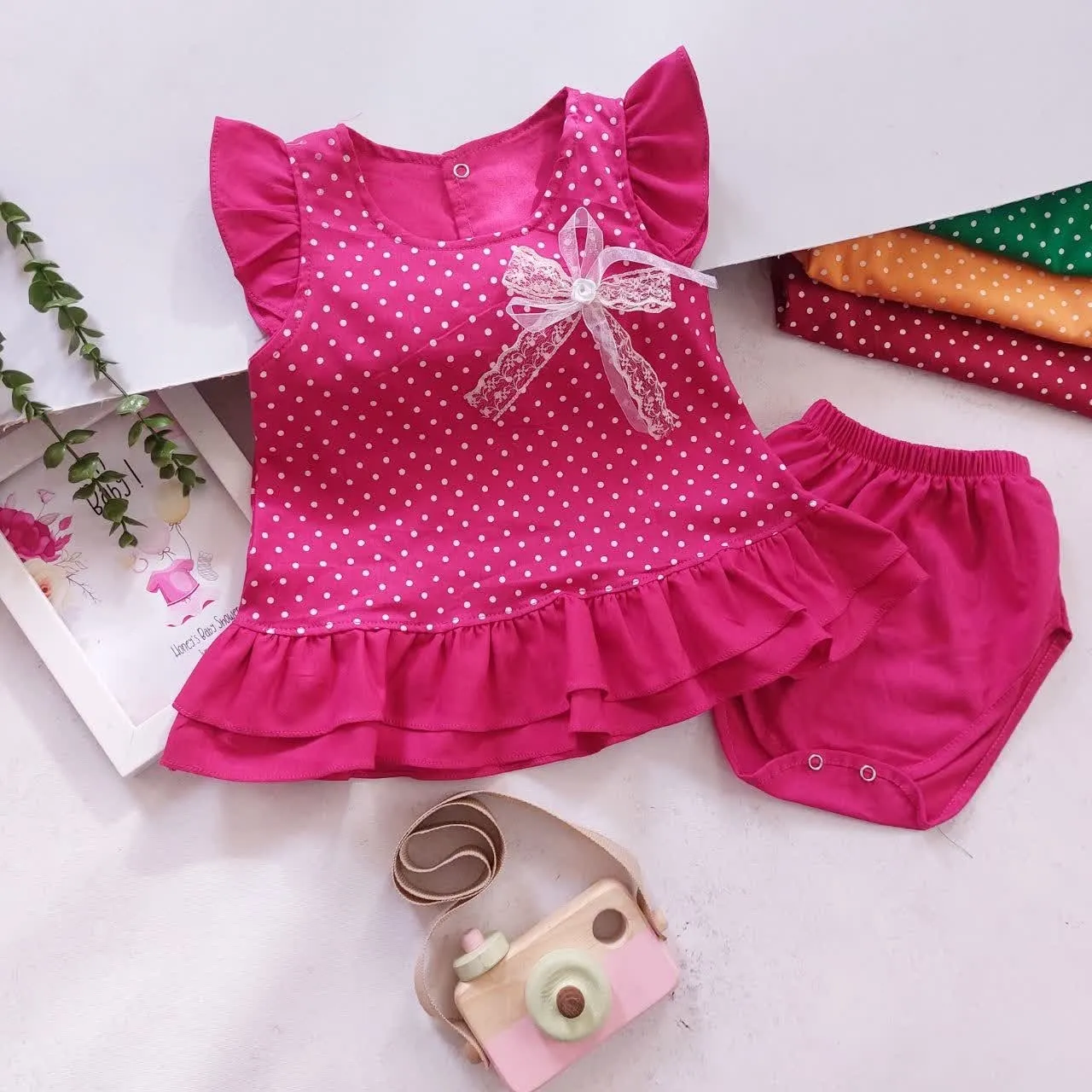 **سارافون و شورت نخی دخترانه طرح خال خالی | مناسب 1 تا 3 سال**